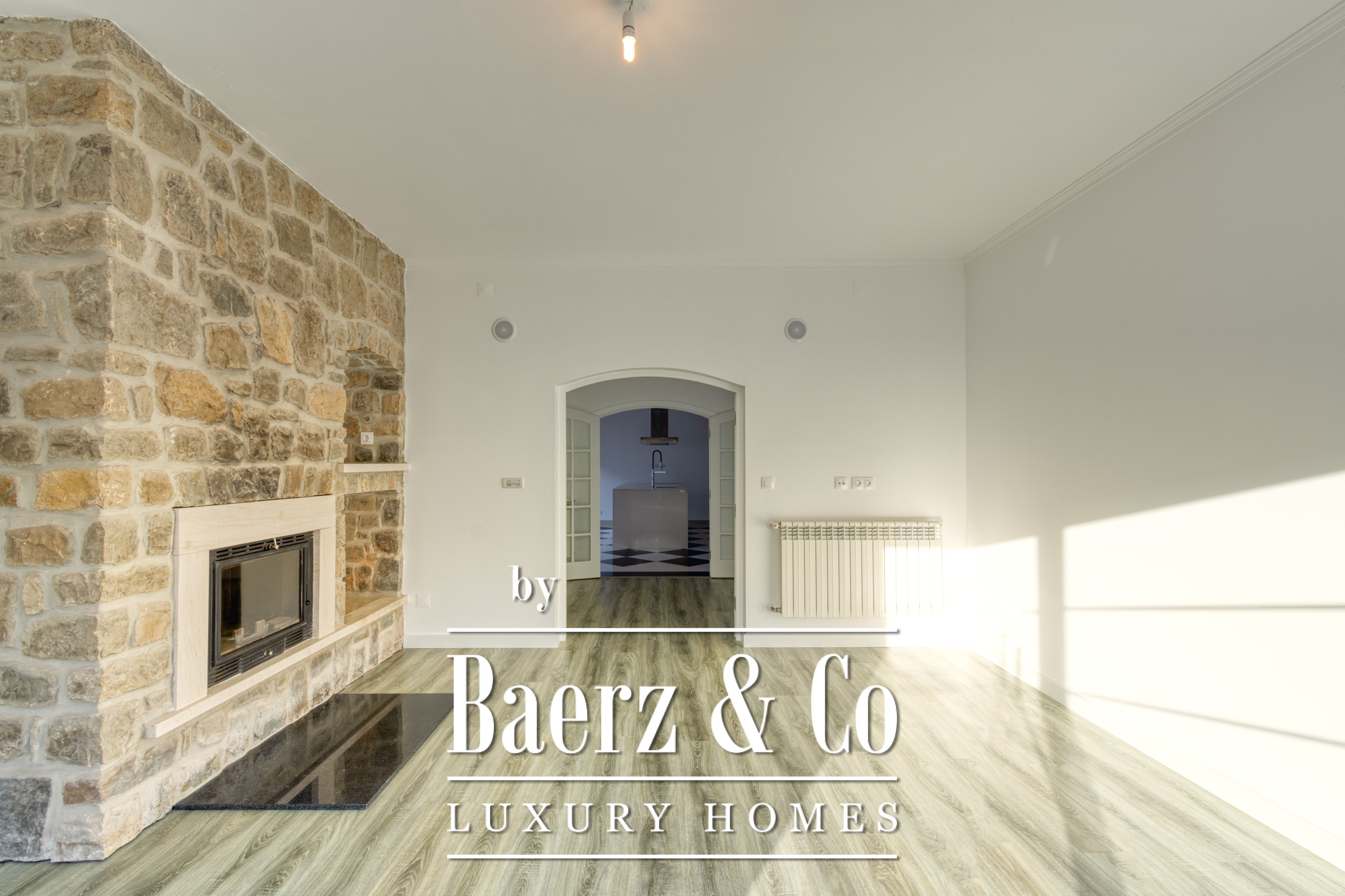 Achter de traditionele gevels schuilen interieurs met moderne afwerkingen en royale ruimtes. De woonkamer op de begane grond, 58 m² groot, heeft een sfeervolle open haard als middelpunt, met aansluitend een eetkamer van 29 m² en een aparte speelkamer van 27 m² die zorgen voor een ontspannen setting voor gezelschappen. De eigentijdse keuken van 26 m² is volledig uitgerust voor kookliefhebbers. Op de begane grond bevinden zich twee ruime suites en een kantoorruimte van 22 m² met eigen open haard, ideaal voor reflectie of thuiswerken. Boven zijn nog twee suites, elk met een privébalkon en uitzicht over zee, die een sereen perspectief bieden op de Atlantische Oceaan.