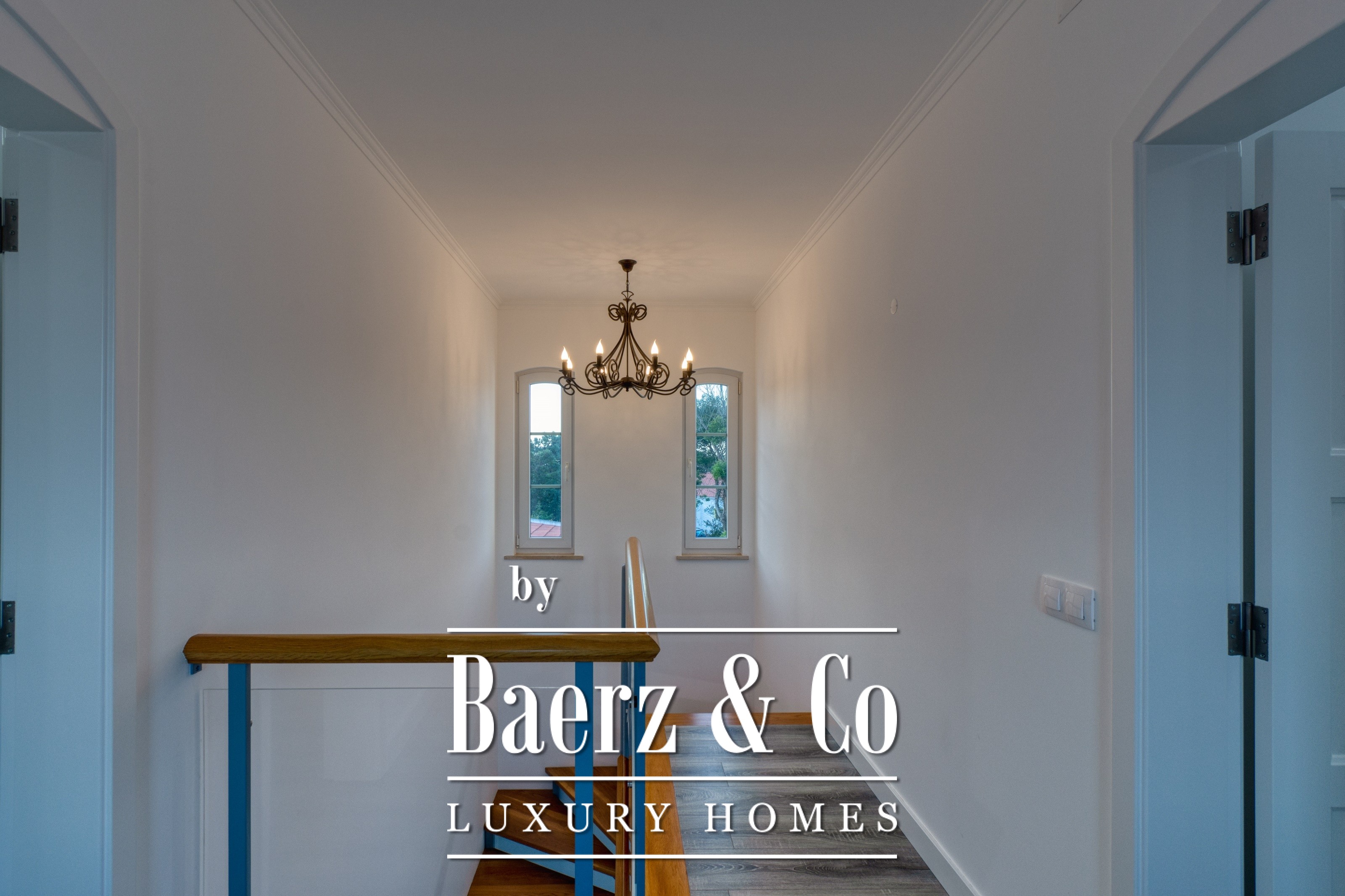 Buiten wordt het huis omringd door aangelegde tuinen, aangevuld met een zwembad van 54 m², een barbecuepaviljoen en een garage van 70 m² die voorbereid is op toekomstige wellnessvoorzieningen. Zonnepanelen, centrale verwarming en een eigen waterbron onderstrepen de doordachte duurzaamheid. Met het strand op slechts tien minuten wandelen en de luchthaven van Lissabon minder dan een uur rijden, biedt deze villa een zeldzame combinatie van privacy, ruimte en bevoorrechte ligging aan de Portugese westkust. Wie op zoek is naar een luxe villa te koop in Praia D'El Rey Golf & Beach Resort, vindt hier elke dag van nature bijzonder.