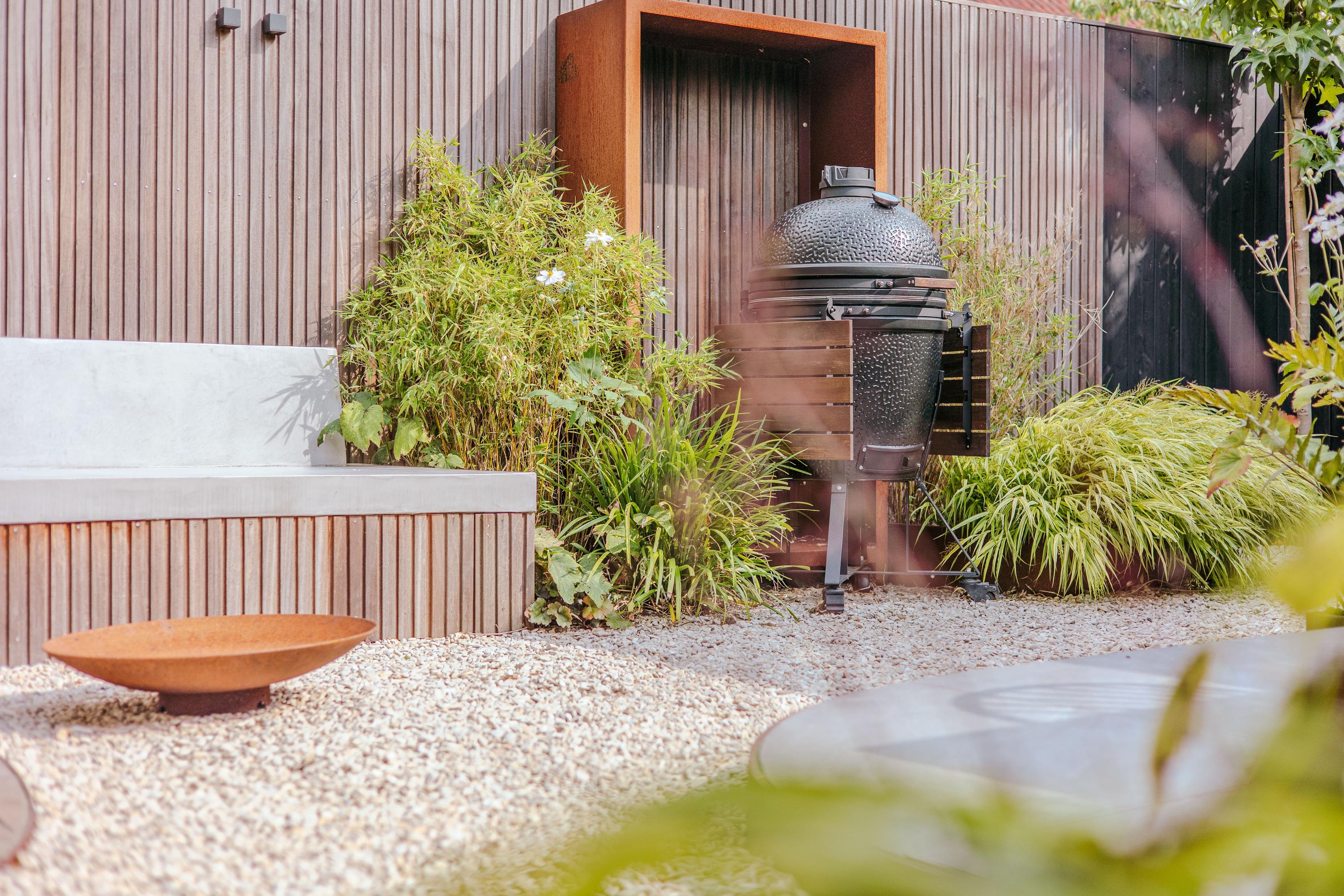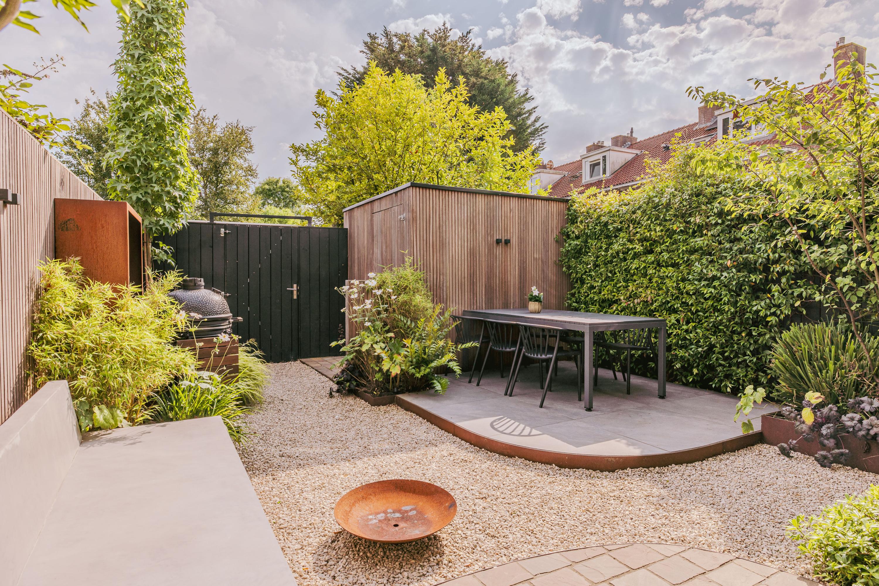 Middels de verzorgde voortuin bereikt u de entree van de woning. De hal beschikt over een praktische trapkast en een apart toilet met fontein. Vanuit hier heeft u toegang tot de lichte woonkamer en de royale leefkeuken aan de achterzijde. De woning is in 2021 volledig gerenoveerd en voorzien van een eikenhouten visgraatvloer met vloerverwarming. De luxe keuken is uitgevoerd met een centraal kookeiland en hoogwaardige inbouwapparatuur, waaronder een Bora inductiekookplaat met afzuiging, Quooker, spoelbak, klimaatkast, twee combi-ovens(waarvan een met stoomfunctie), koelkast, vriezer en vaatwasser. Het natuurstenen werkblad van Taj Mahal kwartsiet geeft de keuken een hoogwaardige uitstraling. Dankzij de grote raampartijen en de glazen deur naar de tuin profiteert deze verdieping van veel daglicht. De achtertuin (41m² op het zuiden) is in 2022 ontworpen en aangelegd door een professionele tuinarchitect, voorzien van verlichting en irrigatie, en beschikt over een vrijstaande berging (ca. 6 m²) met elektra.