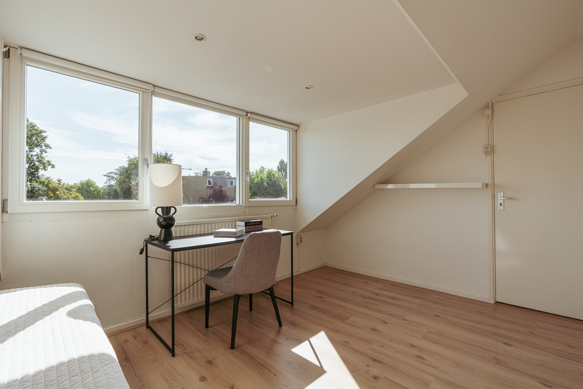 Overloop met toegang tot de vliering. De vierde slaapkamer is gelegen aan de achterzijde en voorzien van een inbouwkasten. Nog een vijfde slaapkamer gelegen aan de voorzijde, thans voorzien van een handige inbouwkasten. Badkamer v.v. bad, toilet en wastafel. Kast met C.V.-ketel, en wasmachine aansluiting. Op de gehele tweede verdieping ligt een laminaat vloer.