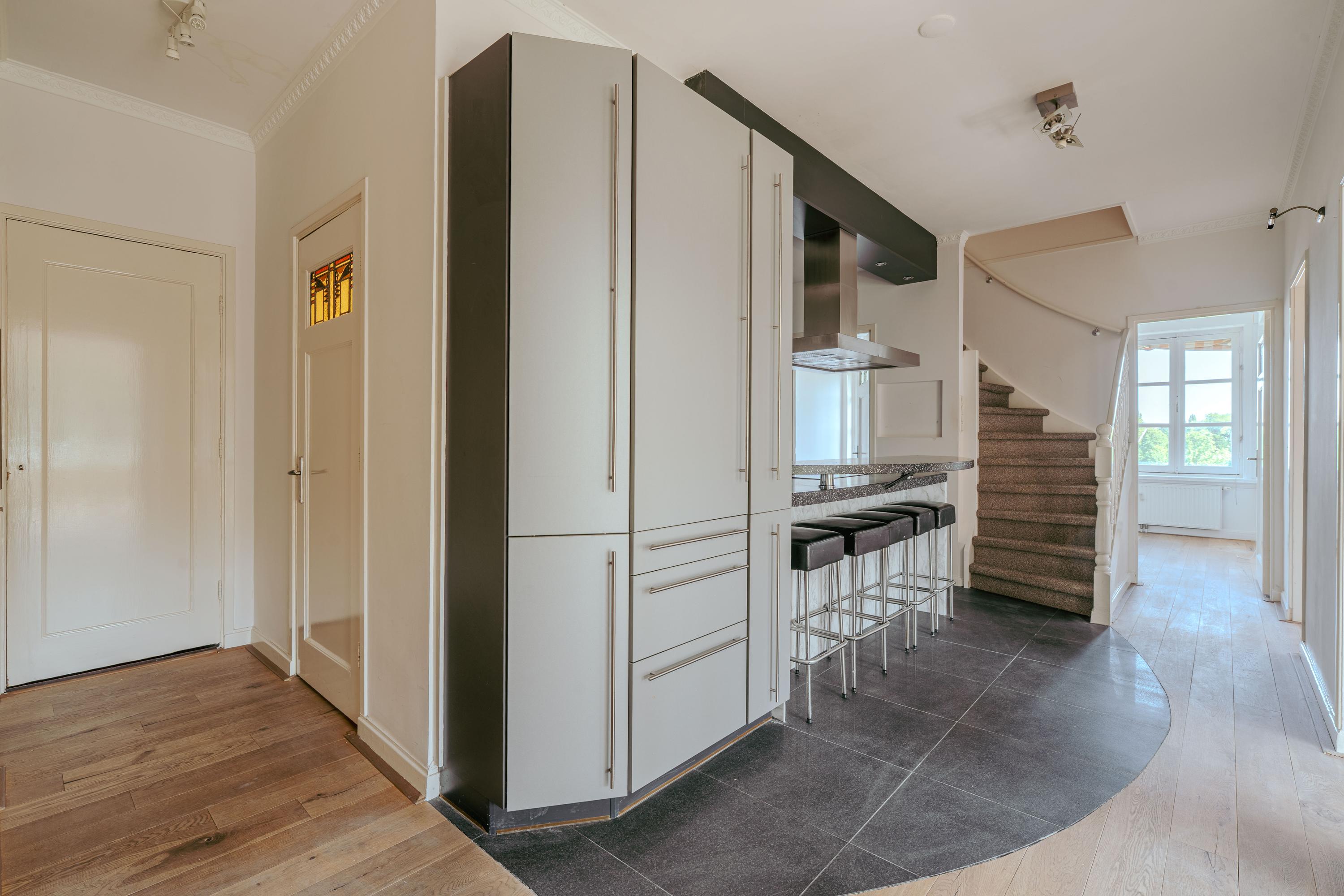 Middels de gemeenschappelijke entree bereikt u de voordeur van het appartement op de derde verdieping. Vanuit de royale hal loopt u direct door naar de centraal gelegen open keuken. Deze is uitgerust met een inductiekookplaat, afzuigkap spoelbak, Quooker, is voorzien van meer dan genoeg bergruimte en beschikt over een gezellige bar welke daarmee het hart vormt van de leefverdieping. Aansluitend de riante woonkamer, een sfeervolle ruimte met grote raampartijen en een karakteristieke erker, waardoor er veel daglicht binnenvalt en u een prachtig uitzicht geniet over het water en het Beatrixpark. Twee schouwen geven de ruimte extra allure, terwijl de handige inbouwkasten zorgen voor praktische bergruimte. De originele glas-in-lood details in de deuren benadrukken de authentieke charme van het appartement. Aan de voor en achterzijde bevinden zich twee ruime slaapkamers, waarvan één uitstekend dienst kan doen als masterbedroom en de andere als logeer- of werkkamer. De badkamer is functioneel ingericht met een ligbad, douche en dubbele wastafel. In de hal is een separaat toilet aanwezig.
