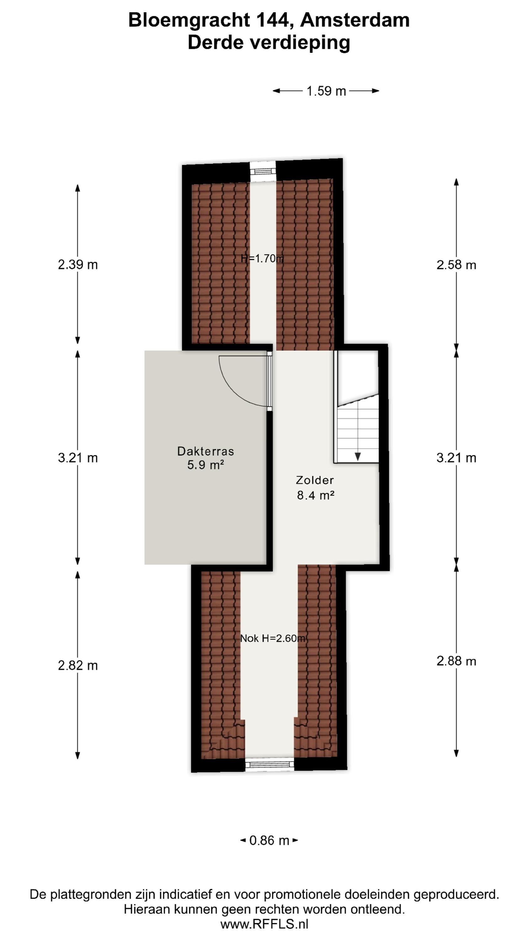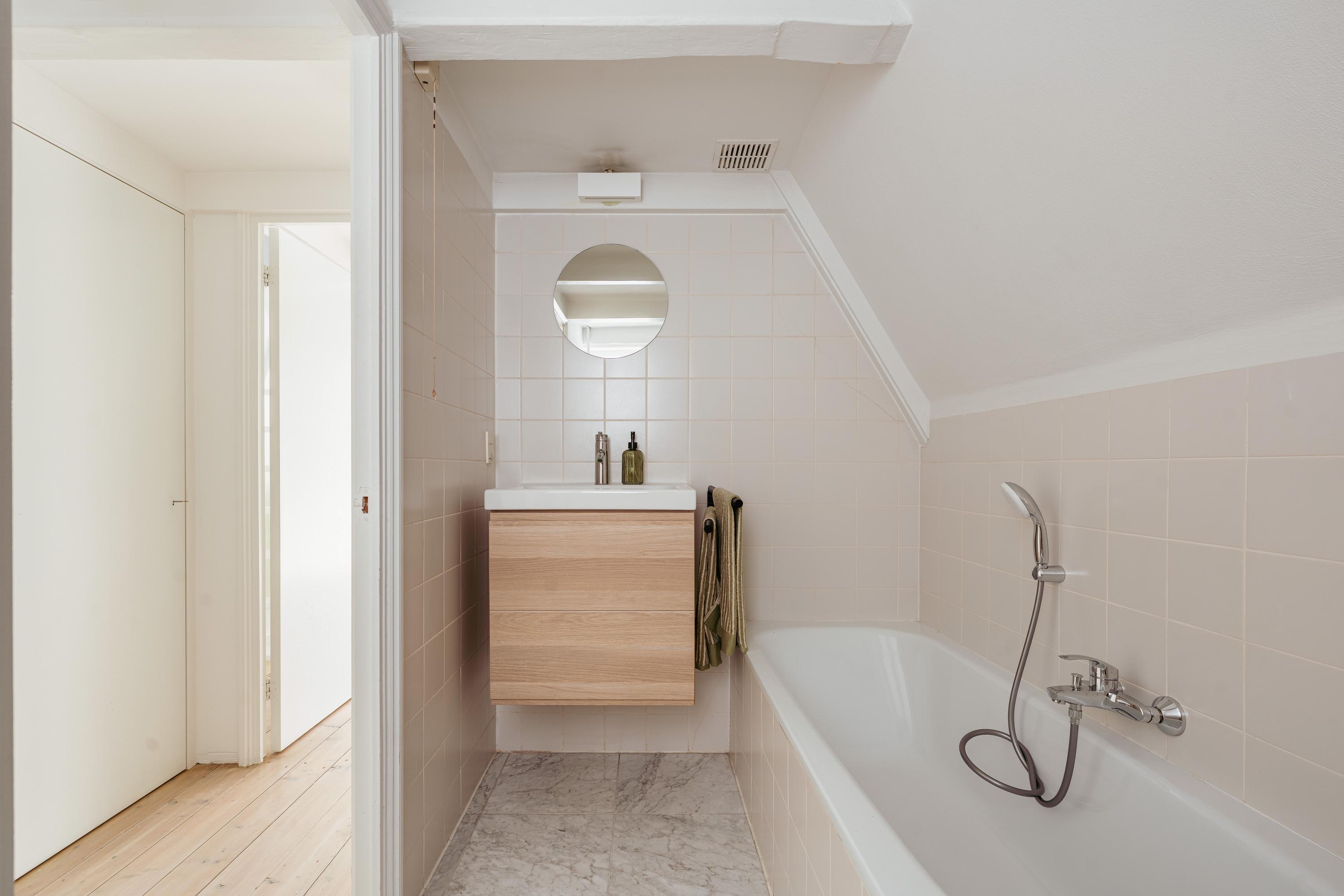 Op de derde verdieping tref je de tweede ruime slaapkamer, eveneens met prachtig uitzicht aan de voorzijde. Deze verdieping heeft een eigen badkamer, voorzien van ligbad met douche, toilet en wastafel. Ook hier zijn meerdere inbouwkasten aanwezig. Een open trap geeft toegang tot de zolderverdieping.