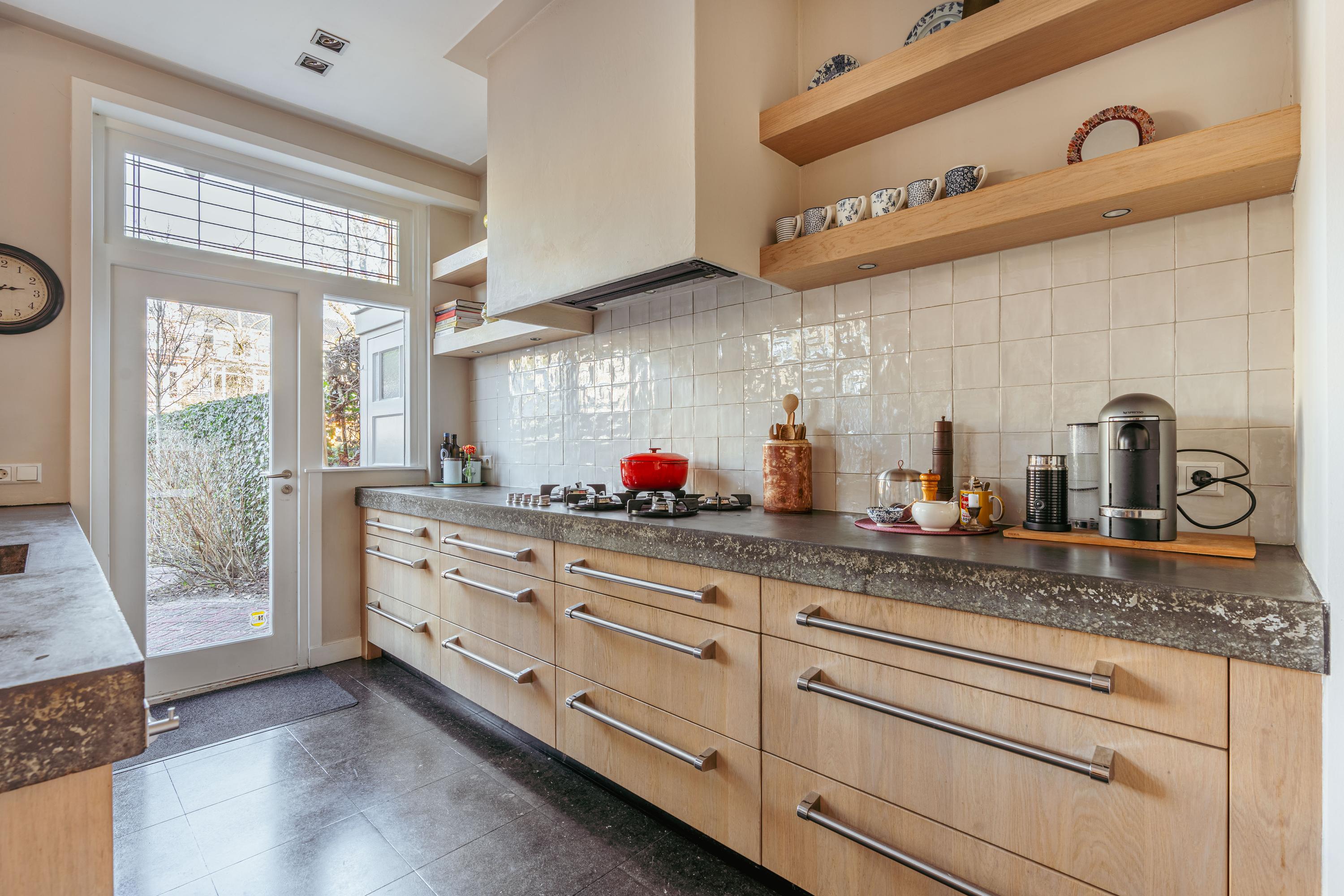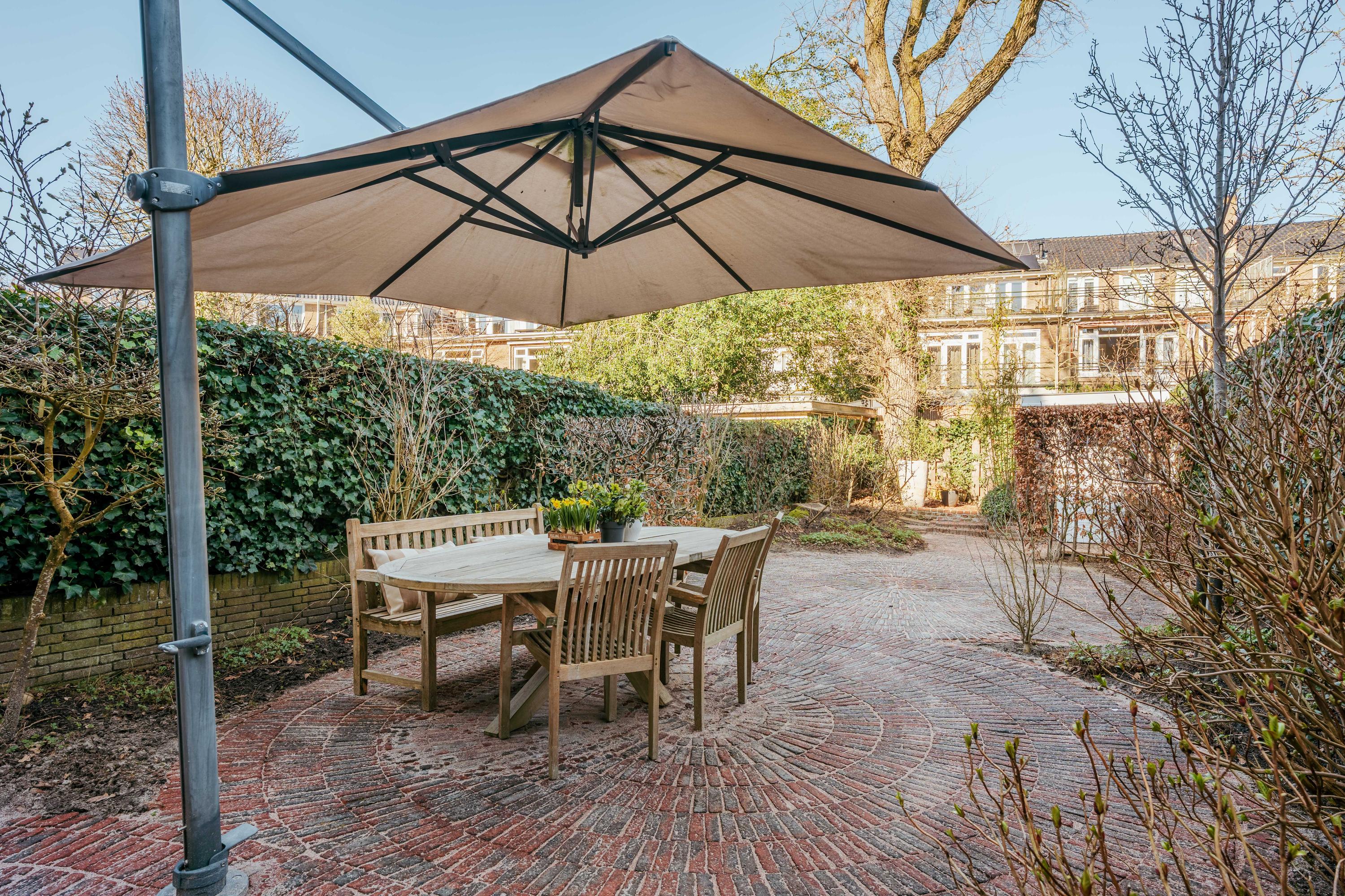 Via openslaande deuren heeft u toegang tot de diepe en zonnige achtertuin, die veel privacy biedt en beschikt over een vrijstaande berging, ideaal voor fietsen en tuingereedschap. Bovendien beschikt deze woning, als één van de weinige in de Diepenbrockstraat, over een achterom, afgesloten met een houten hek voorzien van een codeslot.