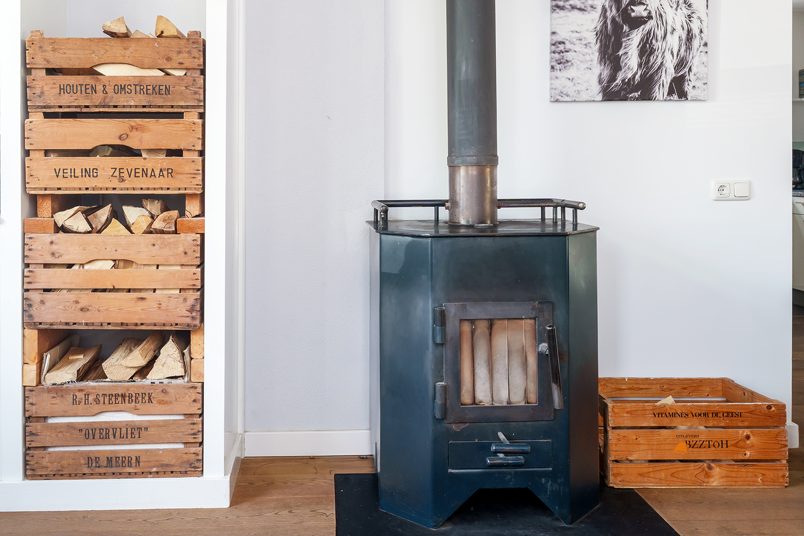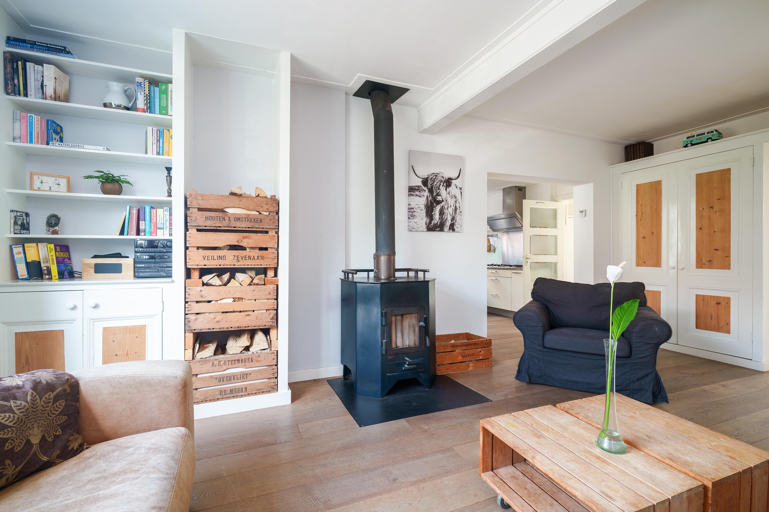 - Robuuste houtkachel met warmtewisselaar, cascade geschakeld met de CV-ketel