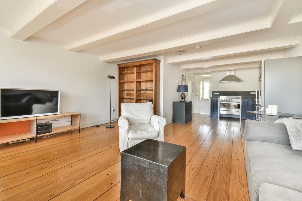 Entree in de ruime en lichte woonkamer met open keuken, voorzien van een koelkast, vriezer, vaatwasser, gasfornuis met oven en spoelbak. De grote raampartijen bieden veel natuurlijk licht en een prachtig uitzicht over de Herengracht. Aan de achterzijde ligt de ruime slaapkamer, eveneens met grote ramen en uitzicht op de groene binnentuinen.