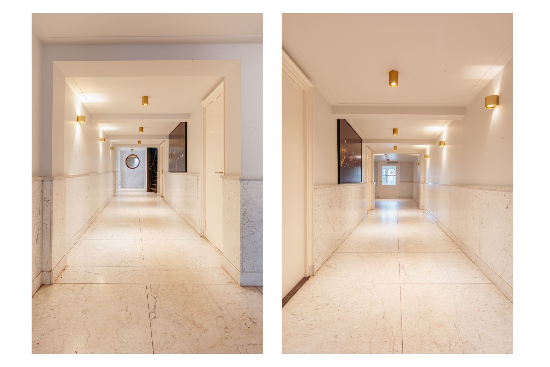 Bij binnenkomst van het grachtenpand komt u via een statige entree de marmeren hal binnen. Het pand en de gemeenschappelijke voorzieningen worden zeer goed onderhouden door een professioneel beheerde VvE. Middels een statige trap of de lift bereikt u de tweede verdieping waar het appartement zich aan de rustige achterzijde van het pand bevindt.