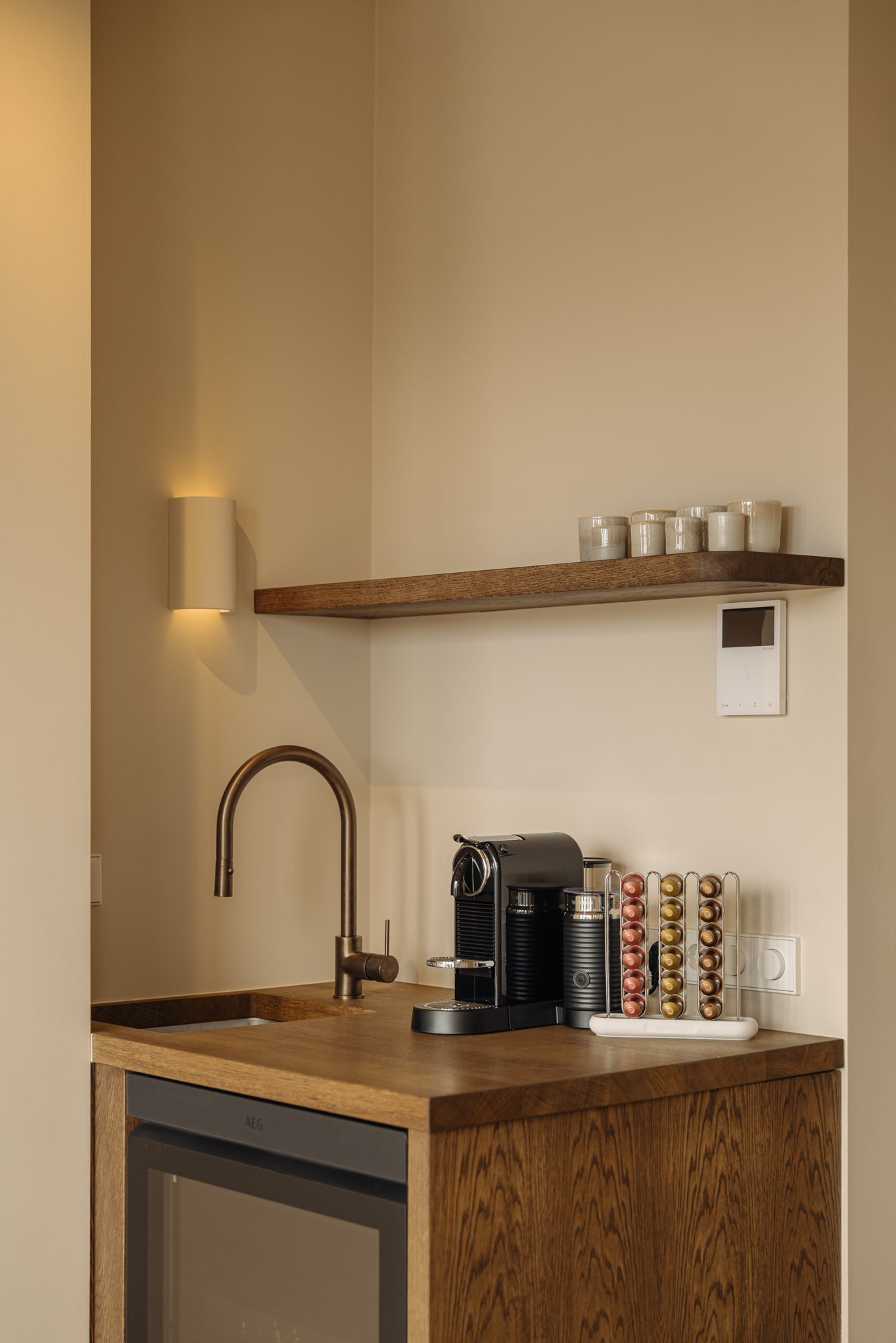 Het appartement is volledig gerenoveerd volgens de hoogste standaarden en voorzien van zeldzame, hoogwaardige materialen zoals natuursteen. De praktische indeling omvat een ruime woonkamer met plafonds van 3,44 meter hoog, een moderne open keuken met geïntegreerde apparatuur en een privé-slaapkamer met en-suite badkamer op de benedenverdieping. Grote ramen laten overvloedig daglicht binnenstromen, waardoor het zorgvuldig ontworpen interieur prachtig tot zijn recht komt en de historische omgeving extra wordt benadrukt. Op de bovenverdieping bevinden zich twee royale slaapkamers, waarvan één met toegang tot het balkon, een tweede luxe badkamer en een aparte wasruimte. Een separaat toilet op beide verdiepingen zorgt voor extra gemak. Het zuidwestelijk gelegen terras en balkon bieden een sereen uitzicht op de iconische bezienswaardigheden van de stad en creëren een harmonieuze verbinding tussen binnen- en buitenleven.