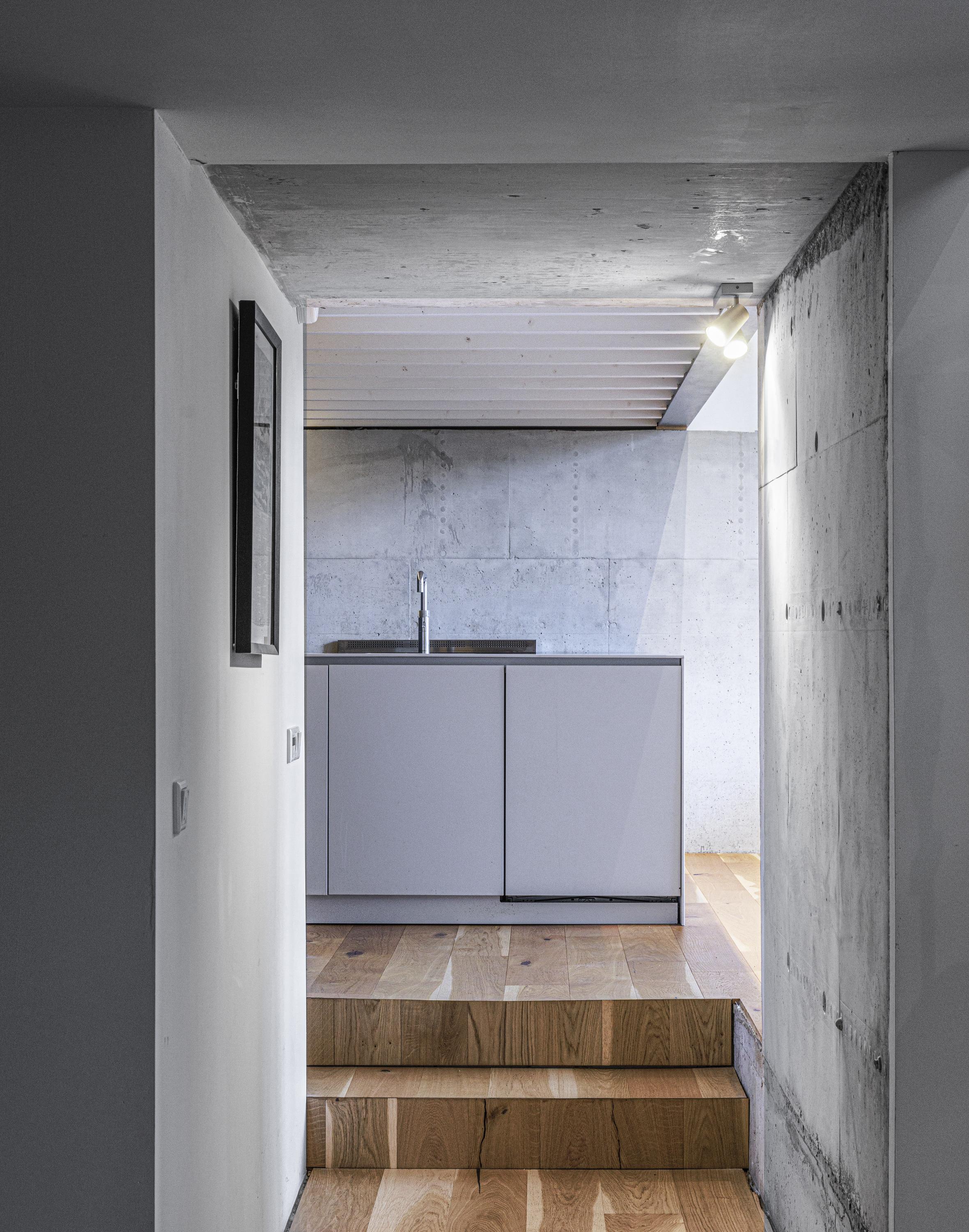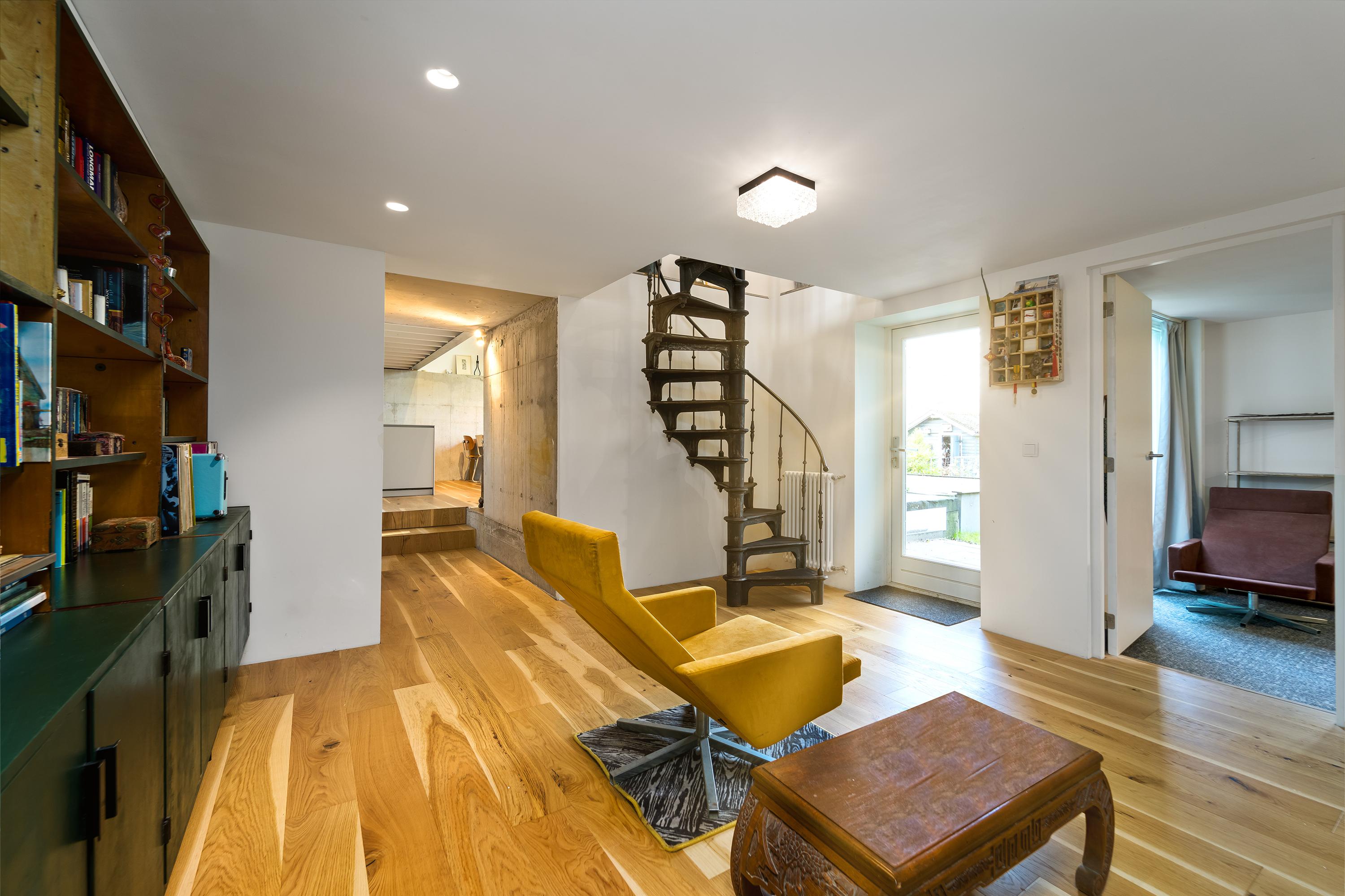 Zaans huis: entree, ruim kantoor (vide), trap naar de living.