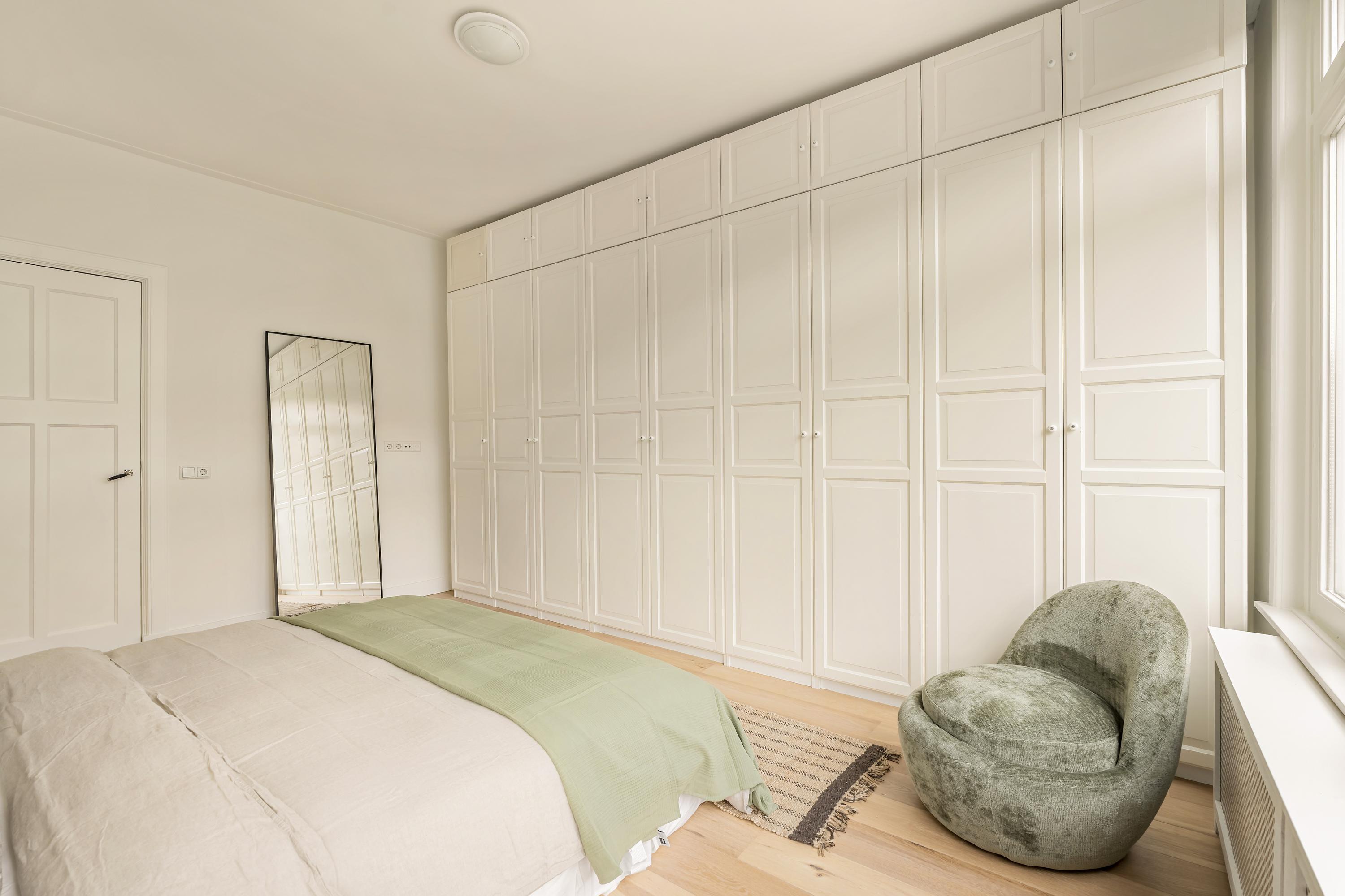 Aan de voorzijde bevinden zich twee slaapkamers, waarvan één met erker. De derde slaapkamer ligt aan de achterzijde en is ingericht als hoofdslaapkamer. Deze kamer beschikt over maatwerk kasten en biedt eveneens toegang tot het balkon.