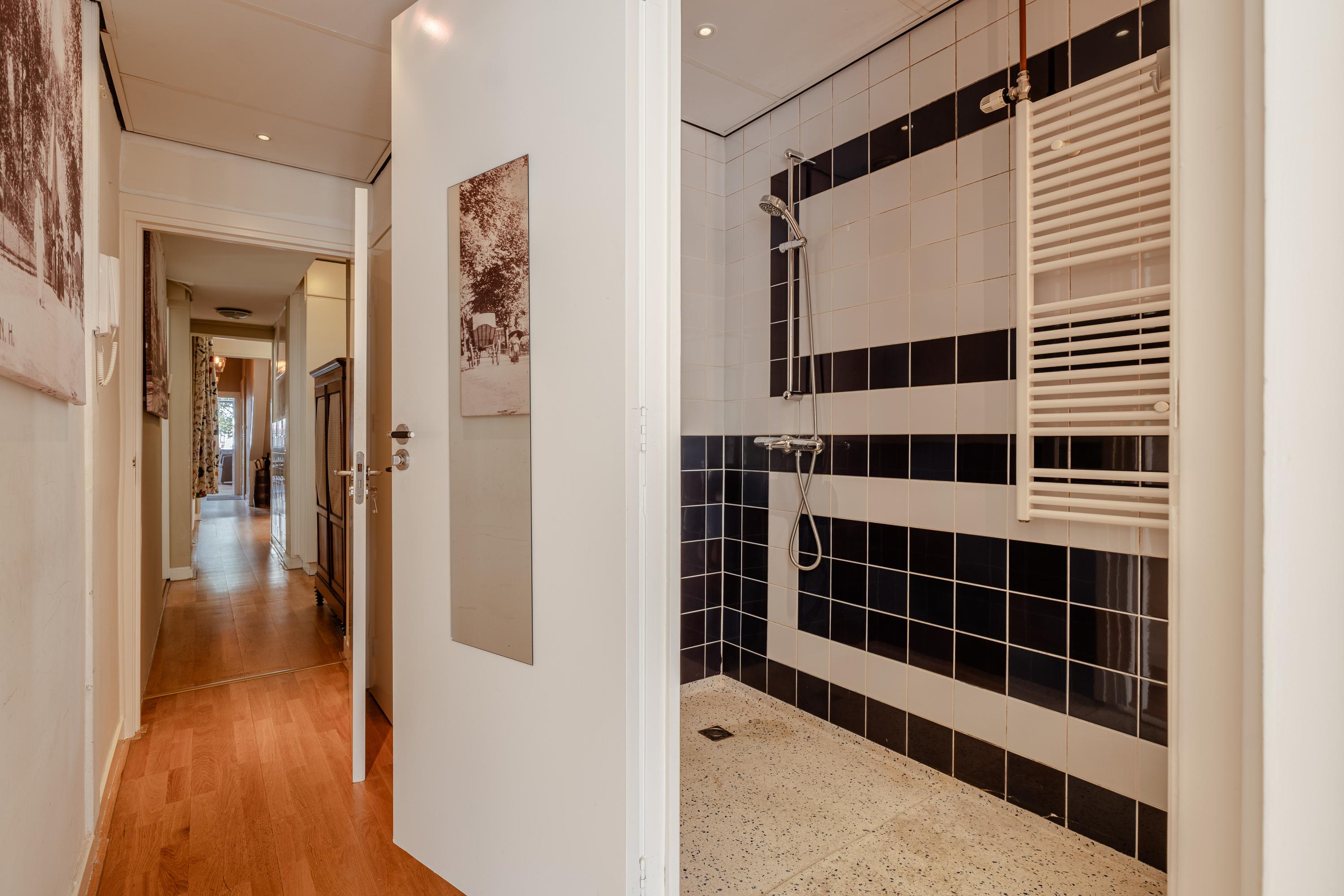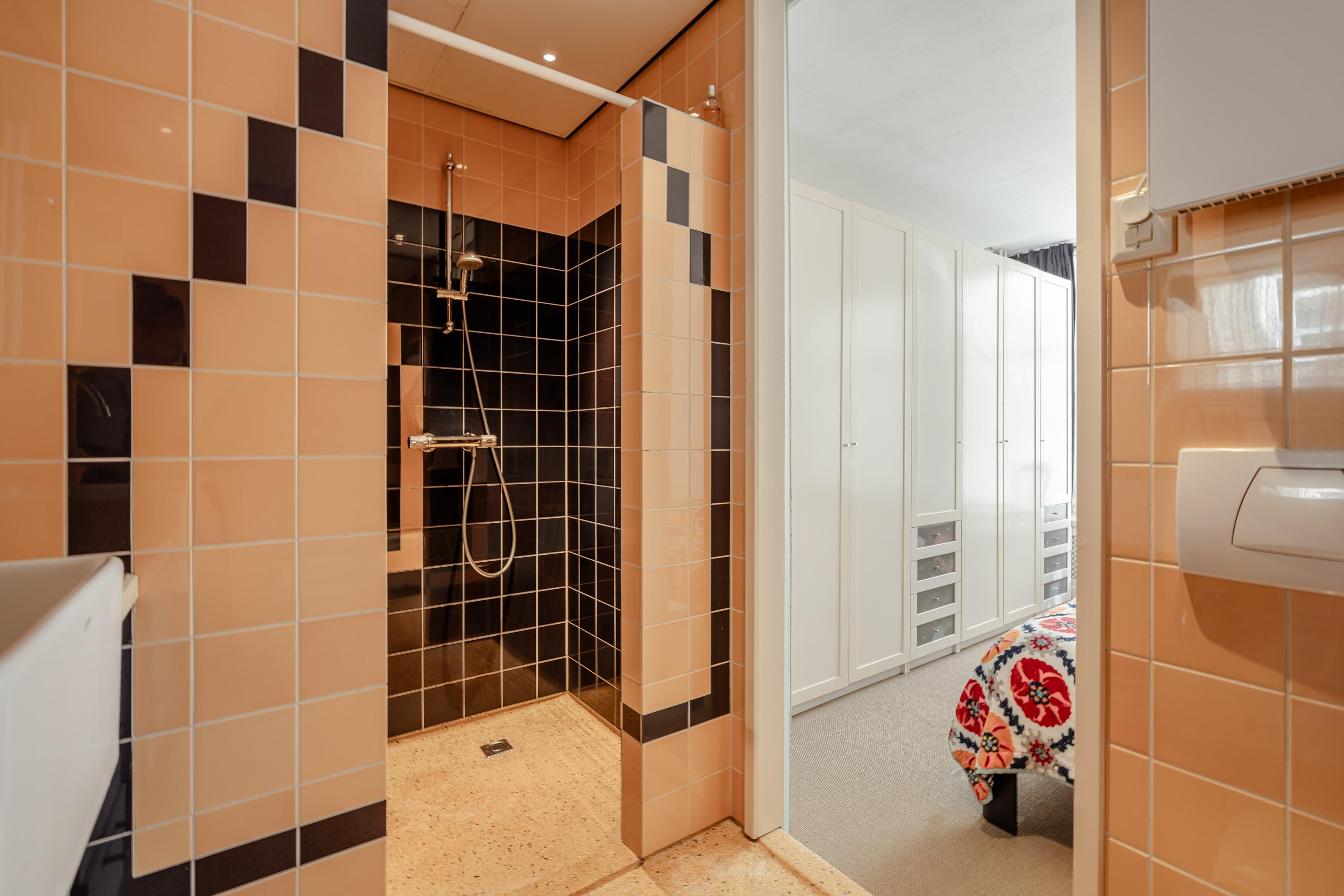 Verder beschikt deze verdieping over een badkamer, uitgerust met een douche, wastafel en toilet.