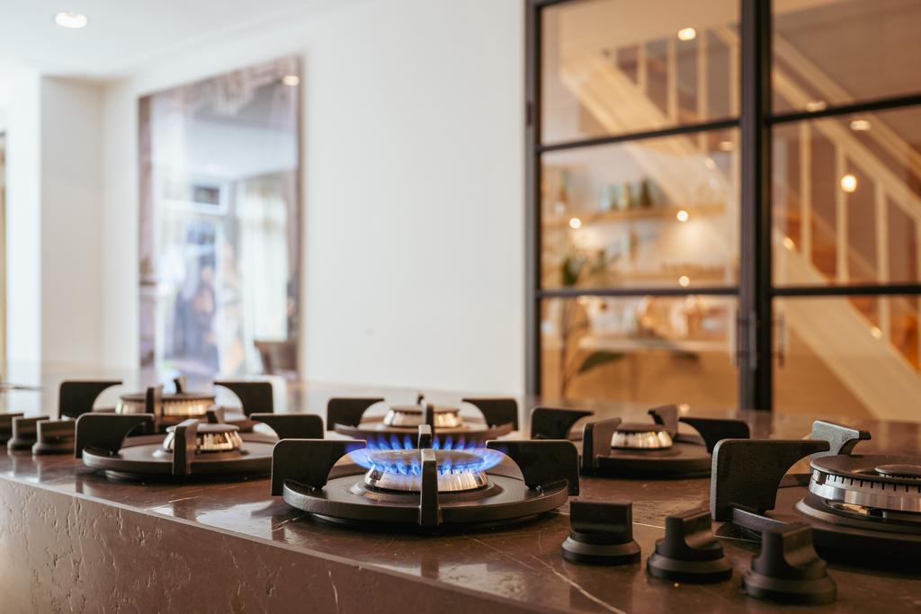 De woning is toegankelijk zowel vanaf de bel-etage als vanuit het souterrain, dat bereikbaar is via de trap of lift vanuit de hal of direct vanuit de bovengelegen eetkamer. Bij binnenkomst op deze verdieping treedt u de hal binnen, waar zich een separaat toilet bevindt. Aan de voorzijde ligt een slaapkamer met een en-suite badkamer, voorzien van een wastafel en douche. Deze multifunctionele ruimte wordt momenteel gebruikt als gym, maar is flexibel inzetbaar. De luxe uitgevoerde open woonkeuken bevindt zich aan de achterzijde en vormt het kloppend hart van deze verdieping. De keuken is uitgerust met hoogwaardige inbouwapparatuur van het merk Gaggenau, waaronder een koelkast, vriezer, Quooker, vijfpits gasfornuis geïntegreerd in het aanrecht, oven, stoomoven, vaatwasser en wijnklimaatkast. Het massief natuurstenen aanrechtblad in combinatie met het houten bargedeelte zorgt voor een warme, stijlvolle uitstraling. De keuken beschikt bovendien over bijzonder veel opbergruimte en is toegankelijk vanuit de eetkamer op de bel-etage of via openslaande deuren vanuit de hal. Een sfeervolle gashaard maakt de ruimte helemaal af. Aangrenzend aan de keuken bevindt zich een slaapkamer – momenteel in gebruik als werkkamer – die, net als de keuken, via openslaande deuren directe toegang biedt tot het ruime terras. Dit terras leidt via een trap naar de fraai aangelegde, op het zuiden gelegen achtertuin, die ook bereikbaar is via een achterom aan het Schapenburgerpad. Deze toegang biedt de zeldzame mogelijkheid om de achtertuin te betreden en bijvoorbeeld fietsen direct in de tuin te plaatsen, uniek in het centrum van Amsterdam. De tuin, onder architectuur aangelegd door Erik van Gelder, beschikt over een complete buitenkeuken, ideaal voor lange zomeravonden, en is ook voorzien van een vrijstaande berging. Hier geniet u in alle rust van zon en privacy, tot in de late uurtjes.