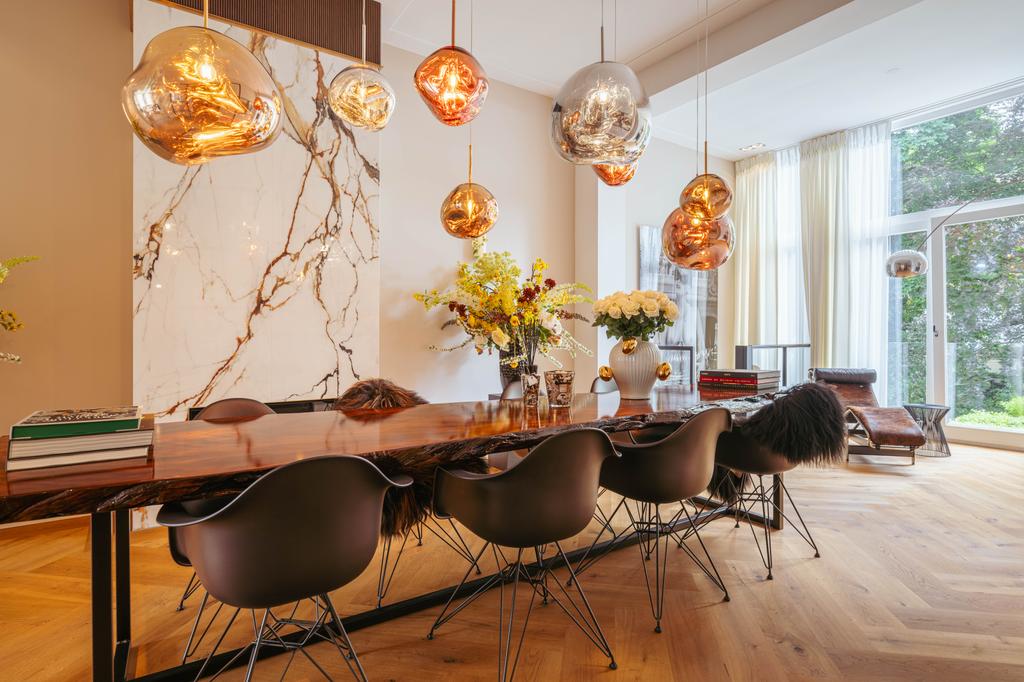 Aan de prachtige Vossiusstraat bevindt zich deze uitzonderlijk stijlvolle en royale woning van 323 m² verdeeld over drie verdiepingen en gelegen op eigen grond. Dit huis combineert klassieke elegantie met hedendaags comfort en is afgewerkt met hoogwaardige materialen, waaronder een visgraat houten vloer, stalen taatsdeuren, marmeren details en diverse gashaarden. Met zes slaapkamers, drie luxe badkamers, een riante woonkeuken, een fraai aangelegde zonnige tuin (157m²) en uitzicht over het park biedt deze woning een zeldzame combinatie van ruimte, rust en stedelijke allure – midden in het hart van Amsterdam Oud-Zuid.