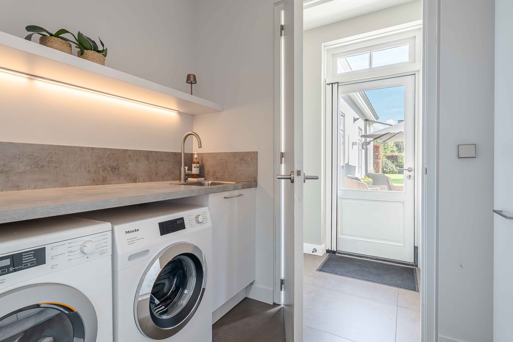 Het kloppende hart van deze woning is uiteraard de prachtige leefkeuken. Vanwege het open karakter van deze ruimte is dit de plek waar u als gezin samen kunt komen. Het grote eiland in het midden is een plek om zowel te koken als te zitten.