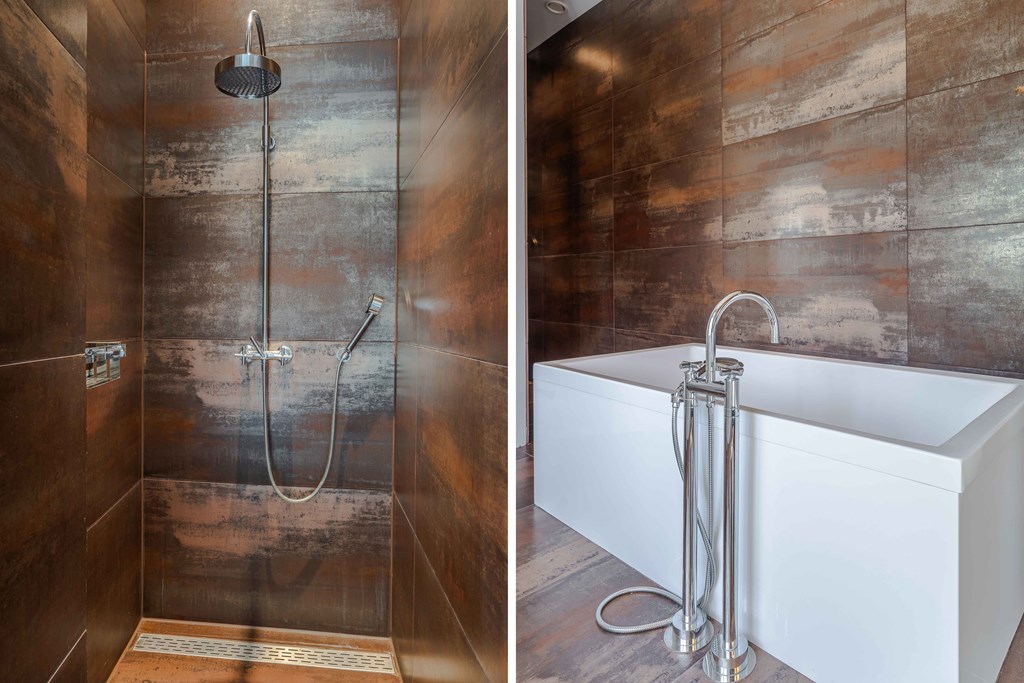 De tweede badkamer is voorzien van een wandcloset, een douche en een brede wastafel met meubel. Op de overloop bevindt zich een extra separate toiletruimte.