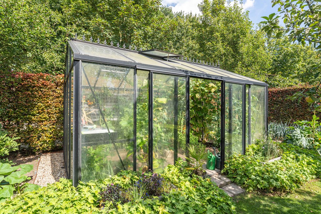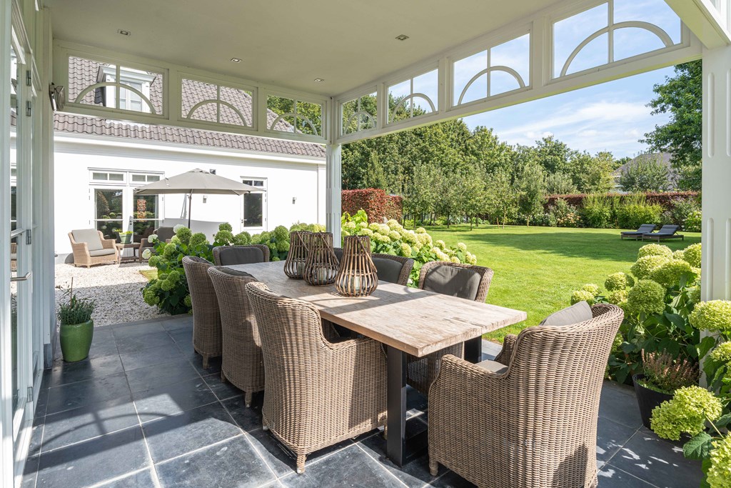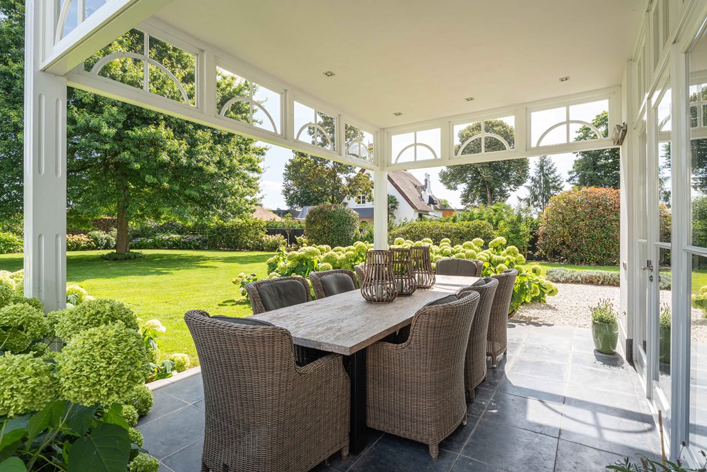 De fraai aangelegde tuin ligt rondom de woning en is een fijne plek voor mensen die van het buitenleven houden. De tuin is voorzien van een groot gazon, groenborders met volwassen beplanting, fruitbomen, verlichting, een terras met veranda, een beregeningsinstallatie en diverse gezellige hoekjes. Voor de liefhebbers is er ook ruimte om een groente kas te plaatsen. Ook is er een oprit met plaats voor diverse voertuigen, is er een laadpaalvoorbereiding en een garage met openslaande deuren.