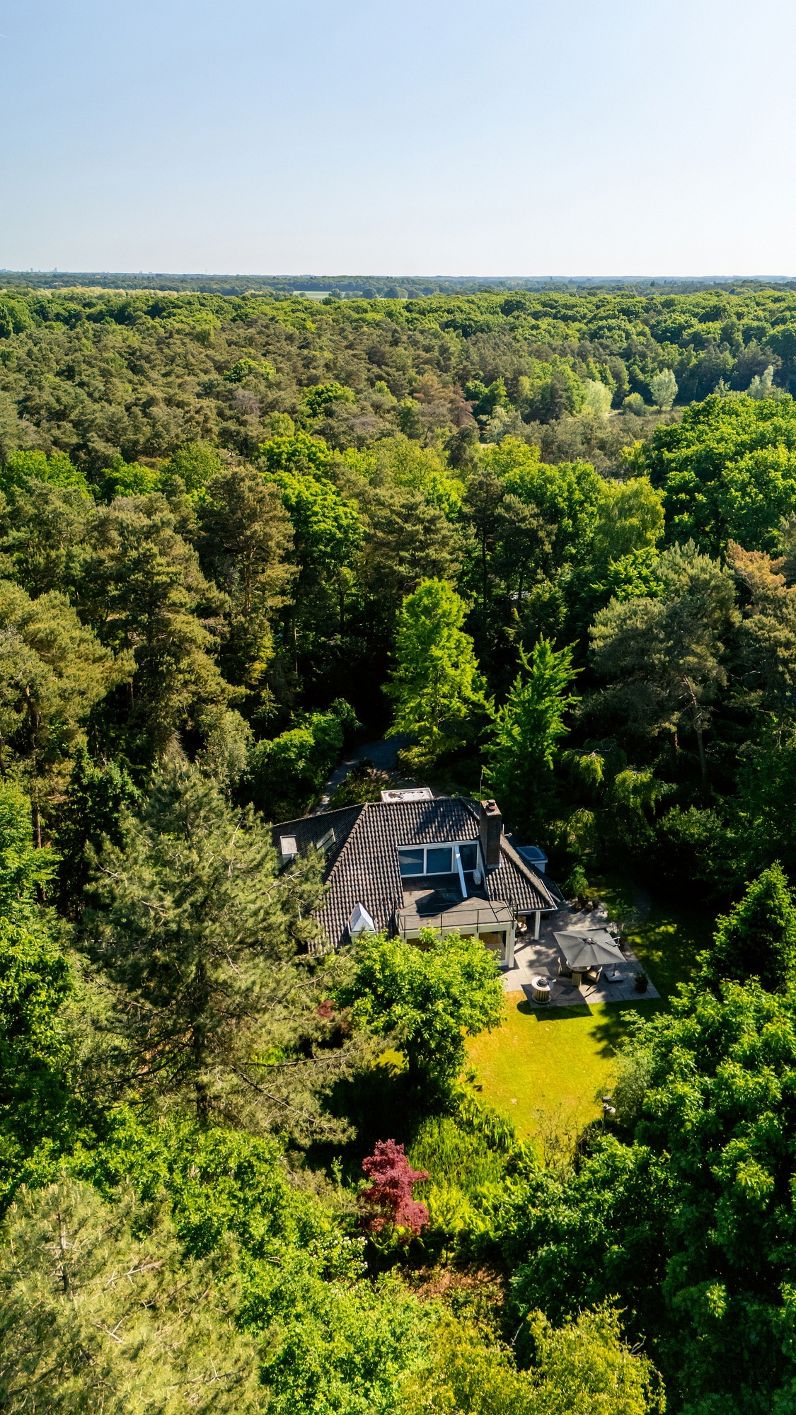 Op een uniek en uitgestrekt bosperceel, aan de rand van Baarle-Nassau, bevindt zich dit karaktervolle en multifunctionele woonhuis, omgeven door een weelderige, parkachtige bostuin met meerdere hoogwaardige bijgebouwen.