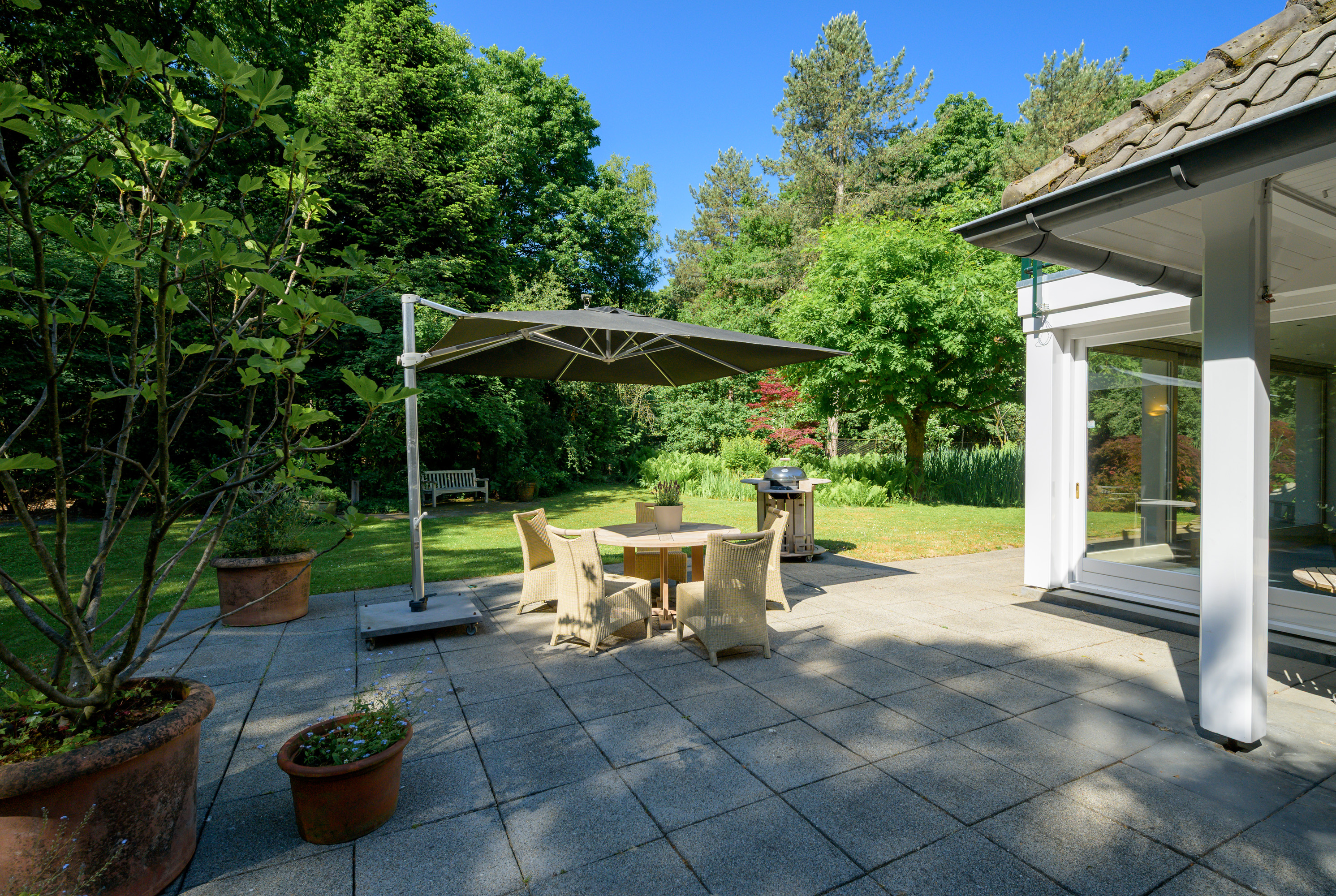 • Zowel de tuin als de woning zijn onder architectuur gebouwd/aangelegd.