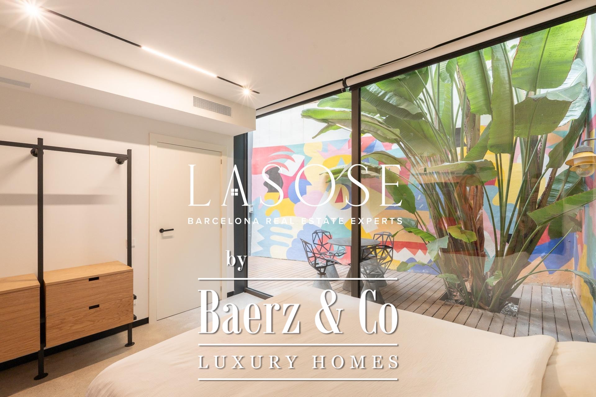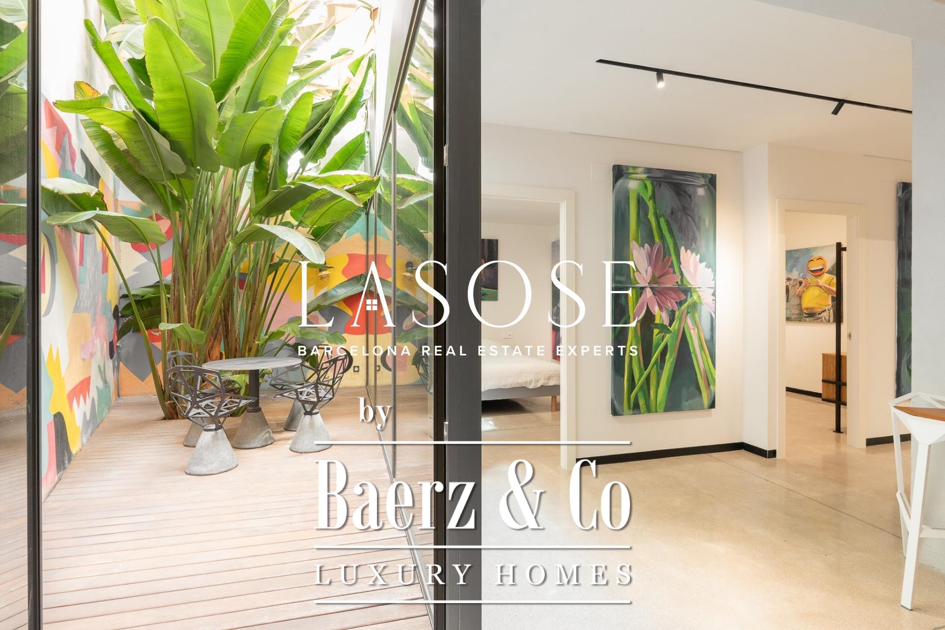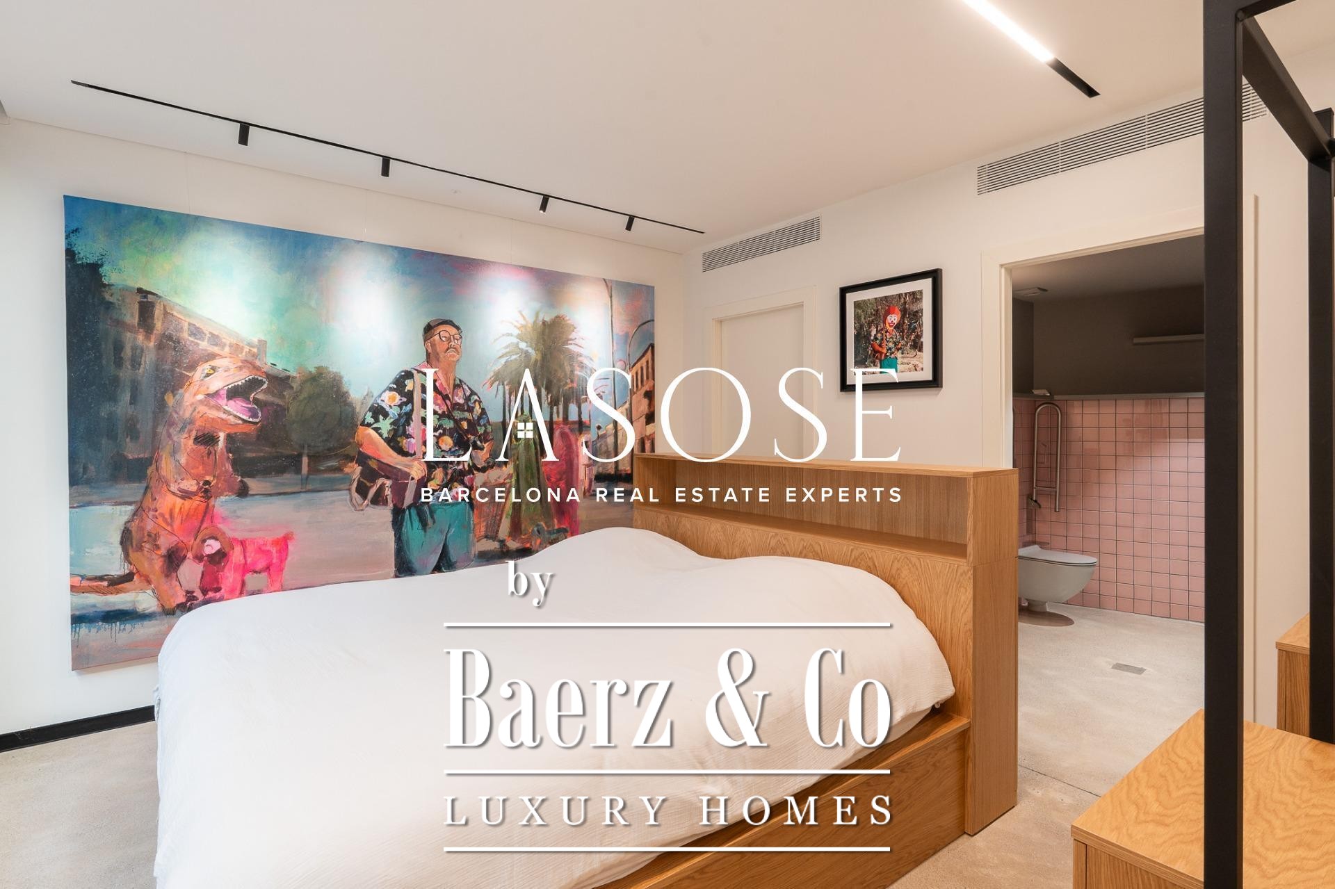 Apartment Barcelona biedt een unieke ruimtelijke beleving midden in de stad. Direct bij binnenkomst ontvouwt zich een gevoel van rust en ruimtelijkheid, versterkt door zorgvuldig vormgegeven binnenpatio’s die het middagzonlicht diep de woonruimte binnenbrengen. Het appartement beslaat 105 m² en beschikt over drie slaapkamers en twee badkamers. Gepolijste betonnen vloeren en inbraakwerend glas creëren een verfijnde en veilige sfeer. De open indeling is het resultaat van de transformatie en samenvoeging van vier afzonderlijke units tot één woonomgeving, volledig ingericht met zorgvuldig geselecteerde designmeubels en hoogwaardige apparatuur.