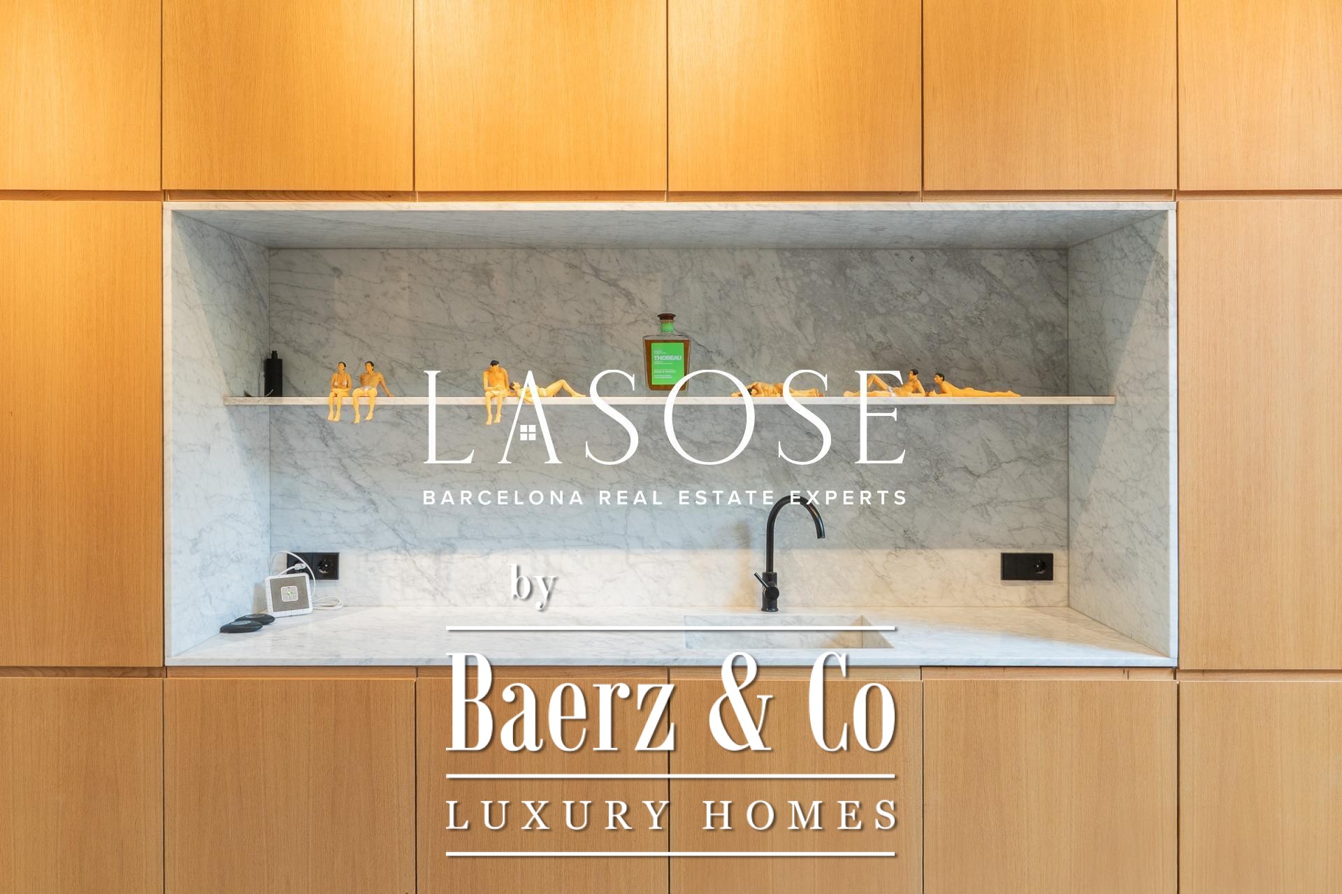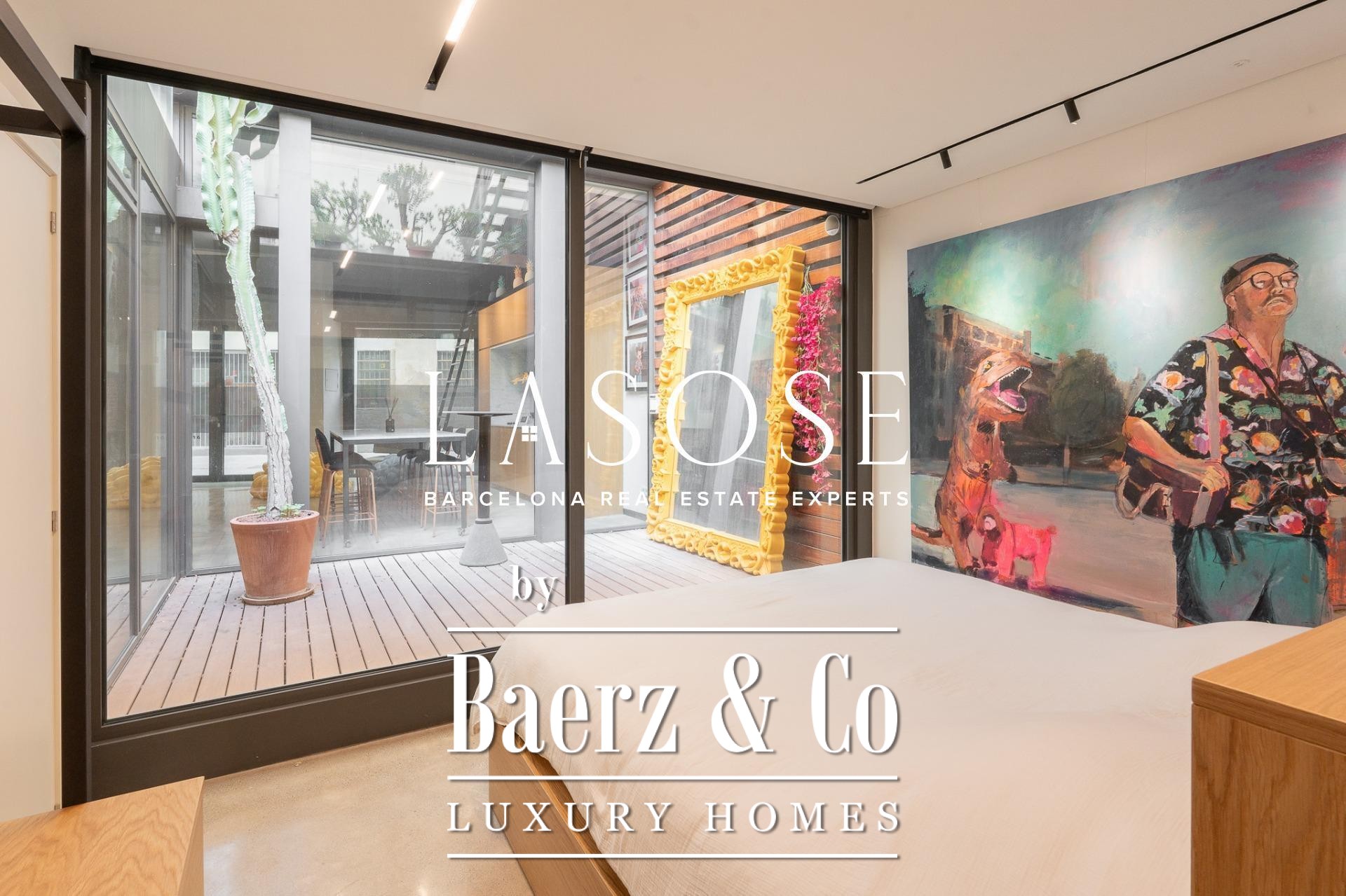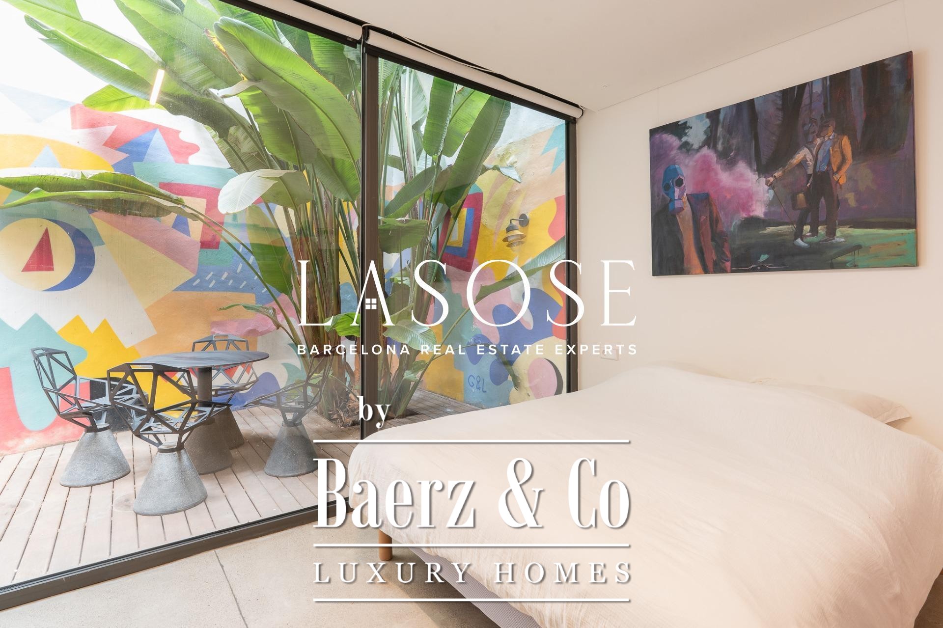 Apartment Barcelona biedt een unieke ruimtelijke beleving midden in de stad. Direct bij binnenkomst ontvouwt zich een gevoel van rust en ruimtelijkheid, versterkt door zorgvuldig vormgegeven binnenpatio’s die het middagzonlicht diep de woonruimte binnenbrengen. Het appartement beslaat 105 m² en beschikt over drie slaapkamers en twee badkamers. Gepolijste betonnen vloeren en inbraakwerend glas creëren een verfijnde en veilige sfeer. De open indeling is het resultaat van de transformatie en samenvoeging van vier afzonderlijke units tot één woonomgeving, volledig ingericht met zorgvuldig geselecteerde designmeubels en hoogwaardige apparatuur.