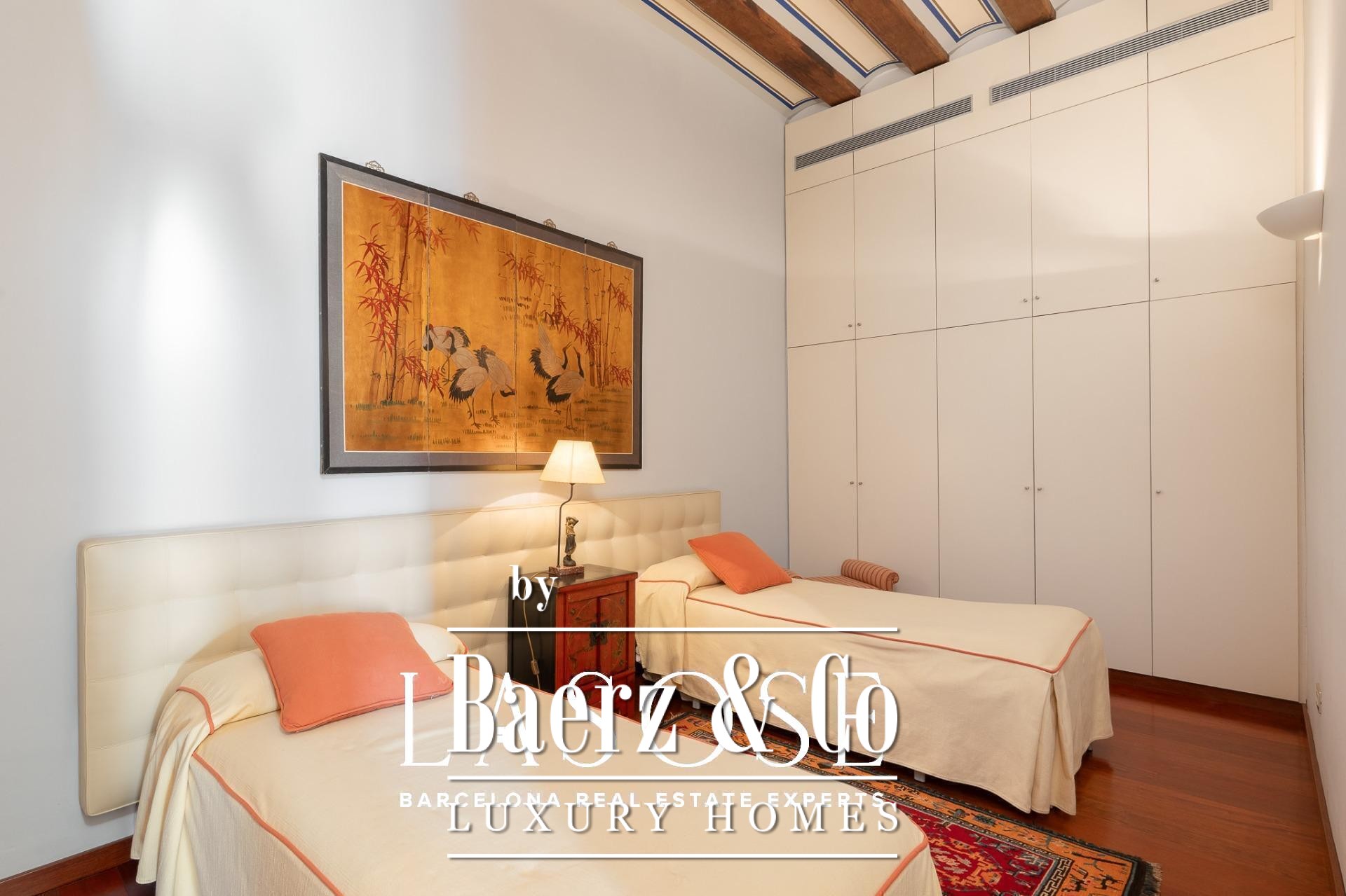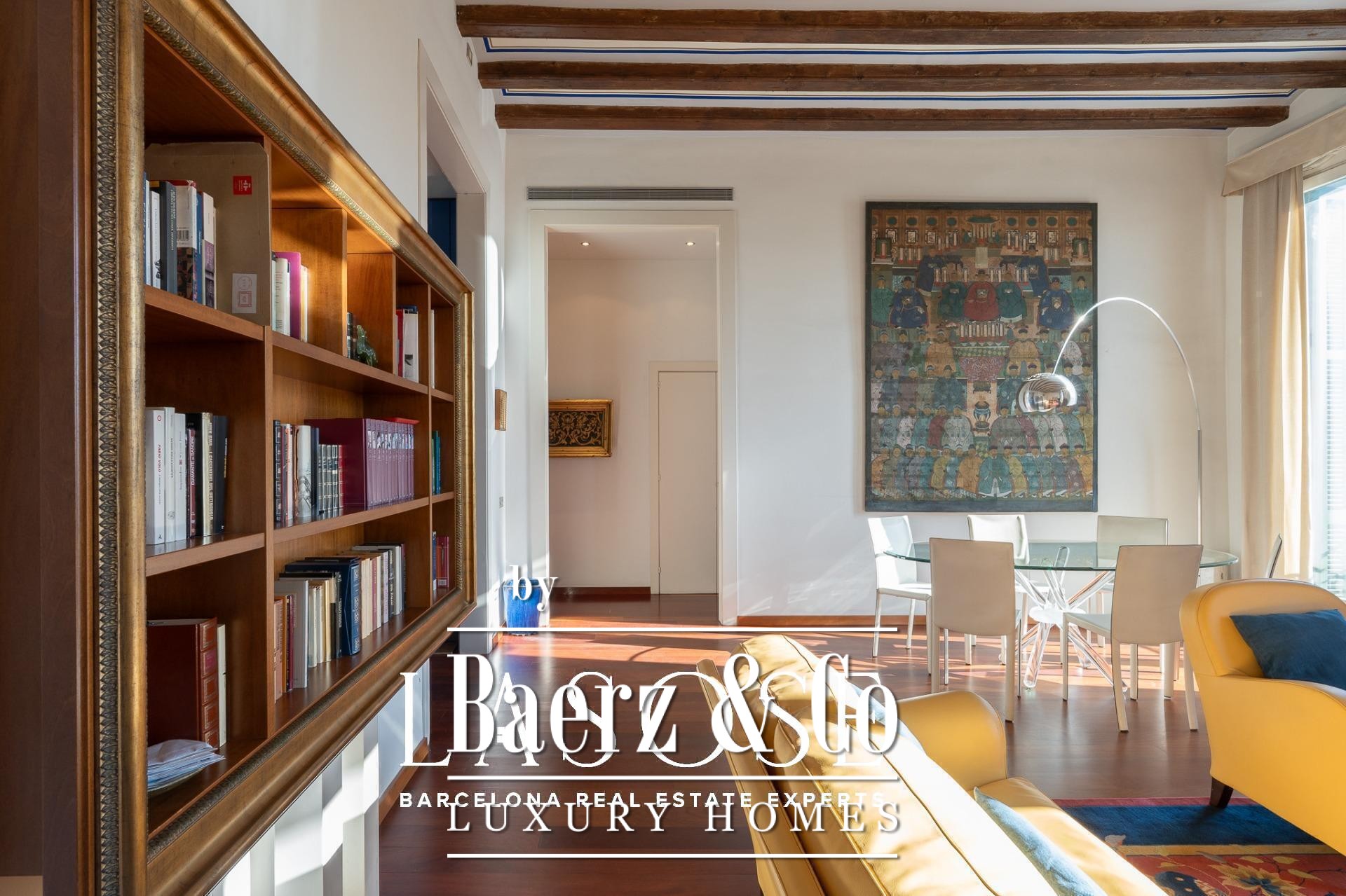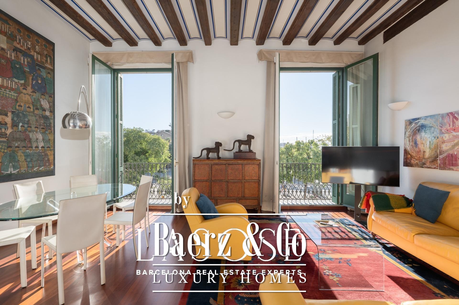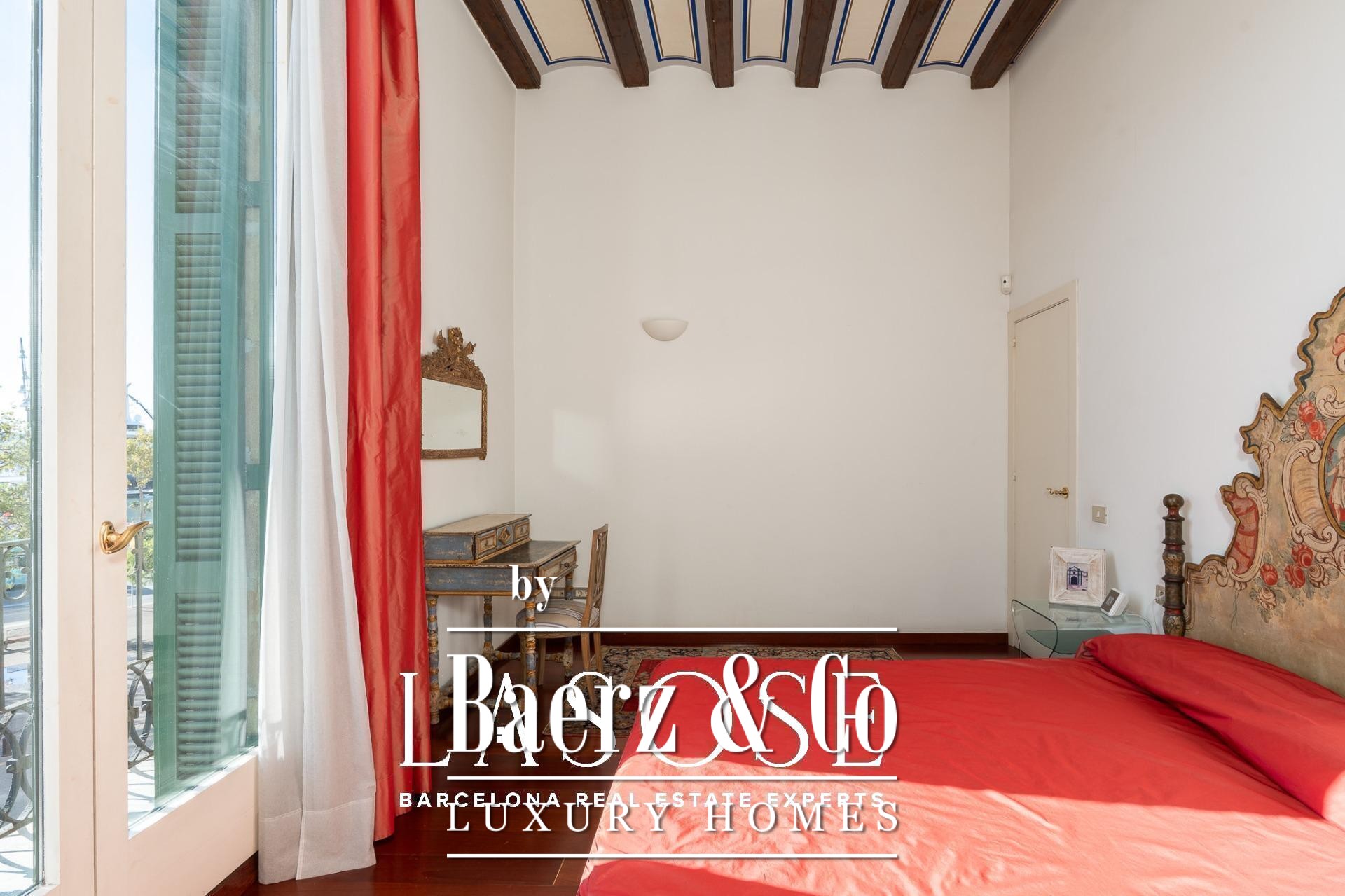 Apartment Barcelona bevindt zich in een historisch pand met uitzicht op de jachthaven van de stad. Deze woning van 122 m² beslaat een voorname locatie aan de Carrer Llauder en biedt een uitzonderlijke combinatie van karakteristiek erfgoed en hedendaags wonen. Binnen ontvouwt zich een ruimte met plafonds van 3,8 meter hoog, zichtbare houten balken en Catalaanse gewelven, verrijkt met met de hand beschilderde details. Smeedijzeren balkons omlijsten het open zeezicht en het groen van Las Ramblas de Mar, waardoor iedere kamer baadt in mediterraan licht.