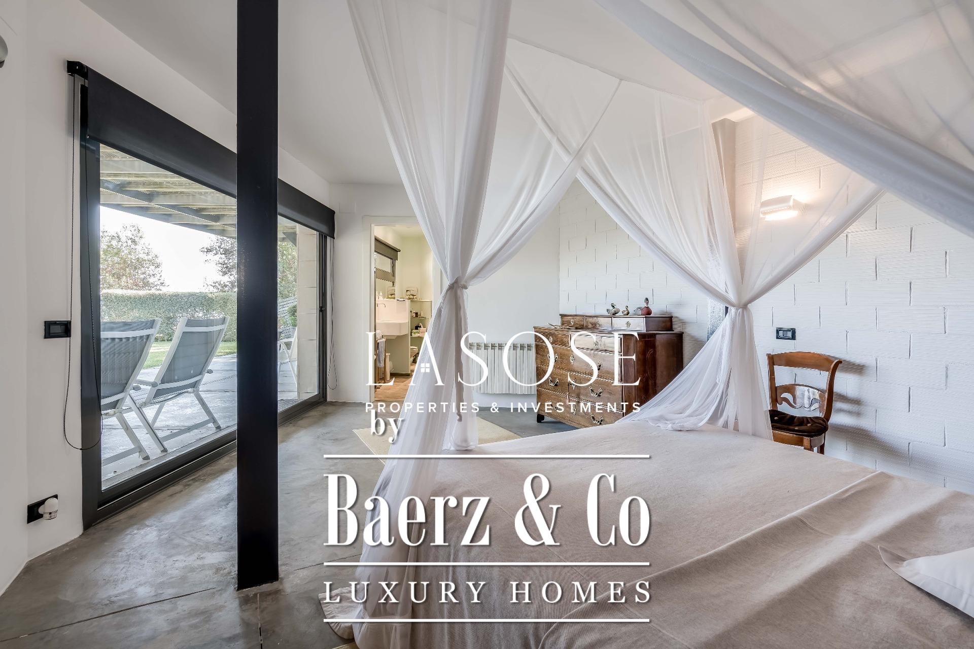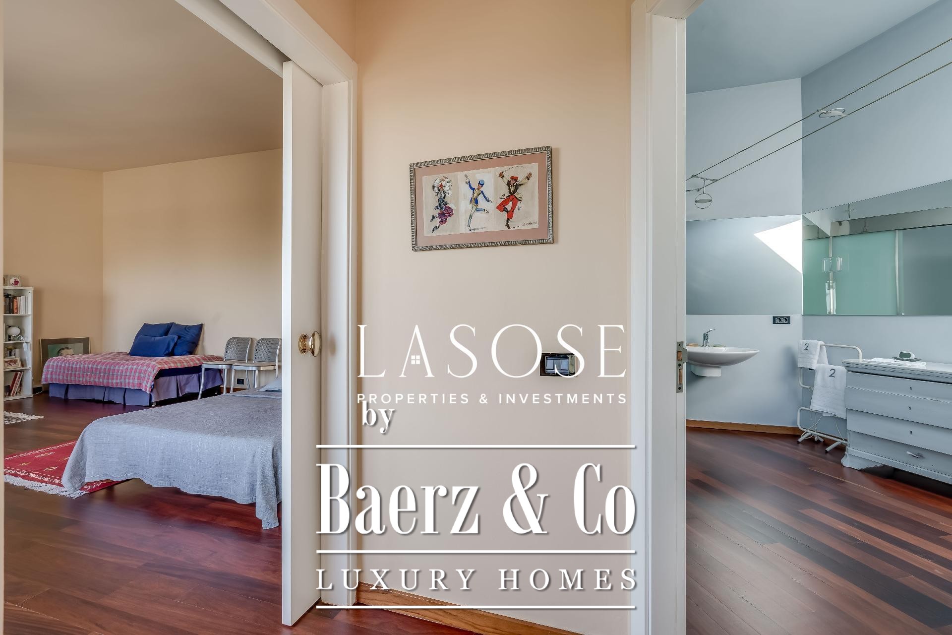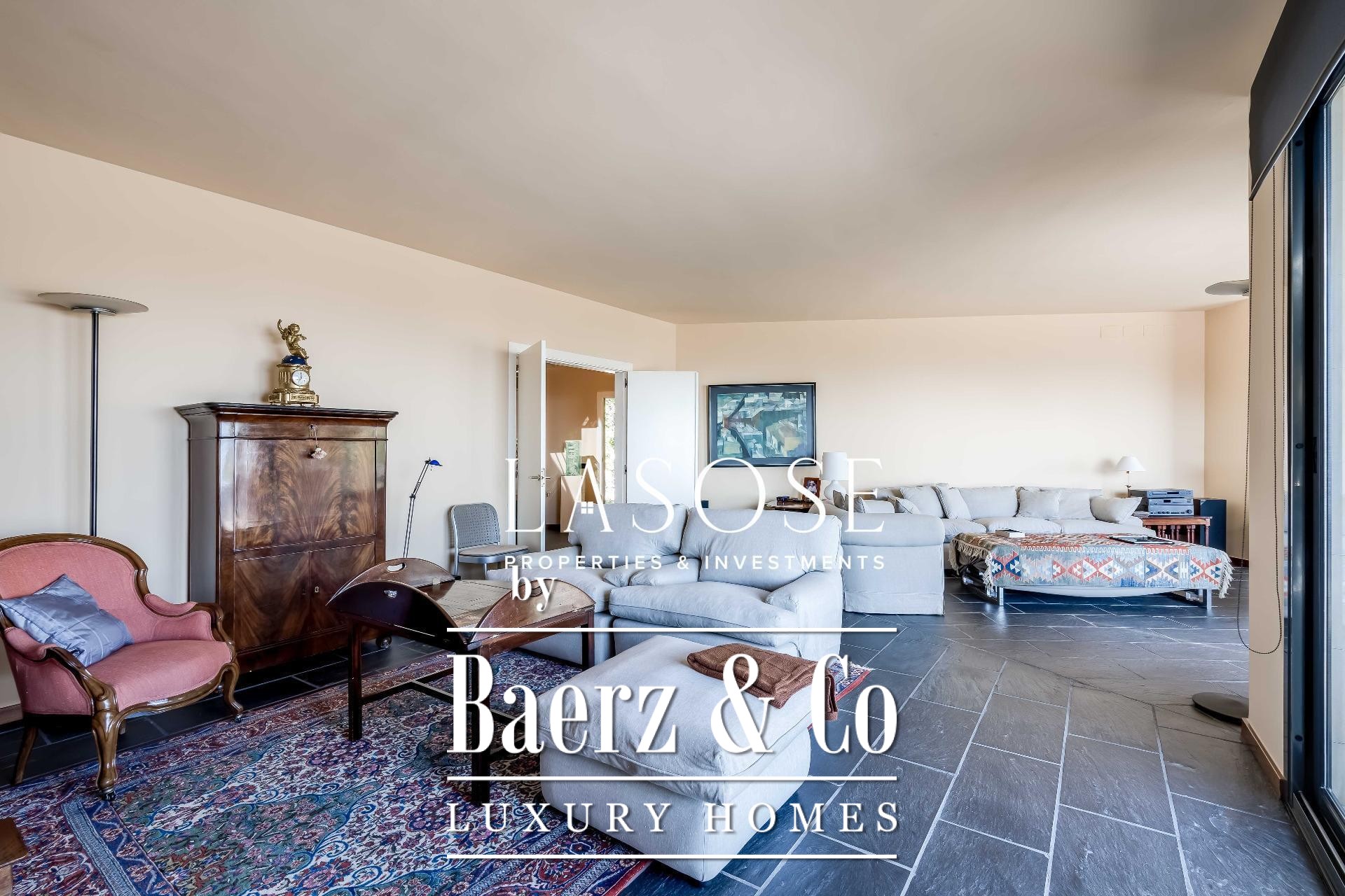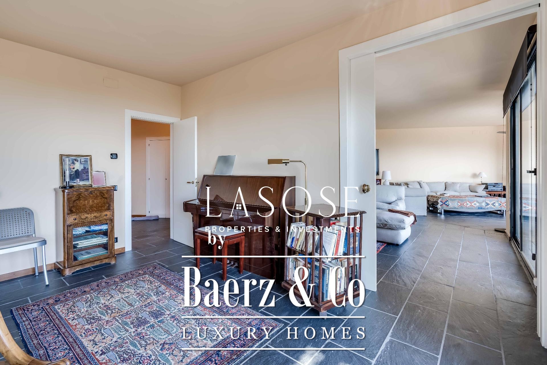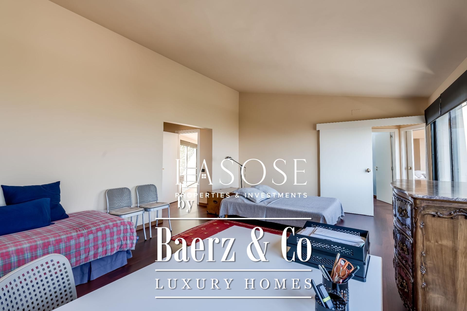 Op de verdieping bevinden zich twee ruime slaapkamers, een royale dressing en een complete badkamer. Grote ramen zorgen voor veel daglicht en het parket met vloerverwarming draagt bij aan het comfort. Op de benedenverdieping is een zelfstandig zomerappartement van 115 m² met dressing, badkamer en toegang tot de tuin. Buiten zijn een privézwembad en aangelegde tuin, alles gelegen in een discrete woonomgeving.