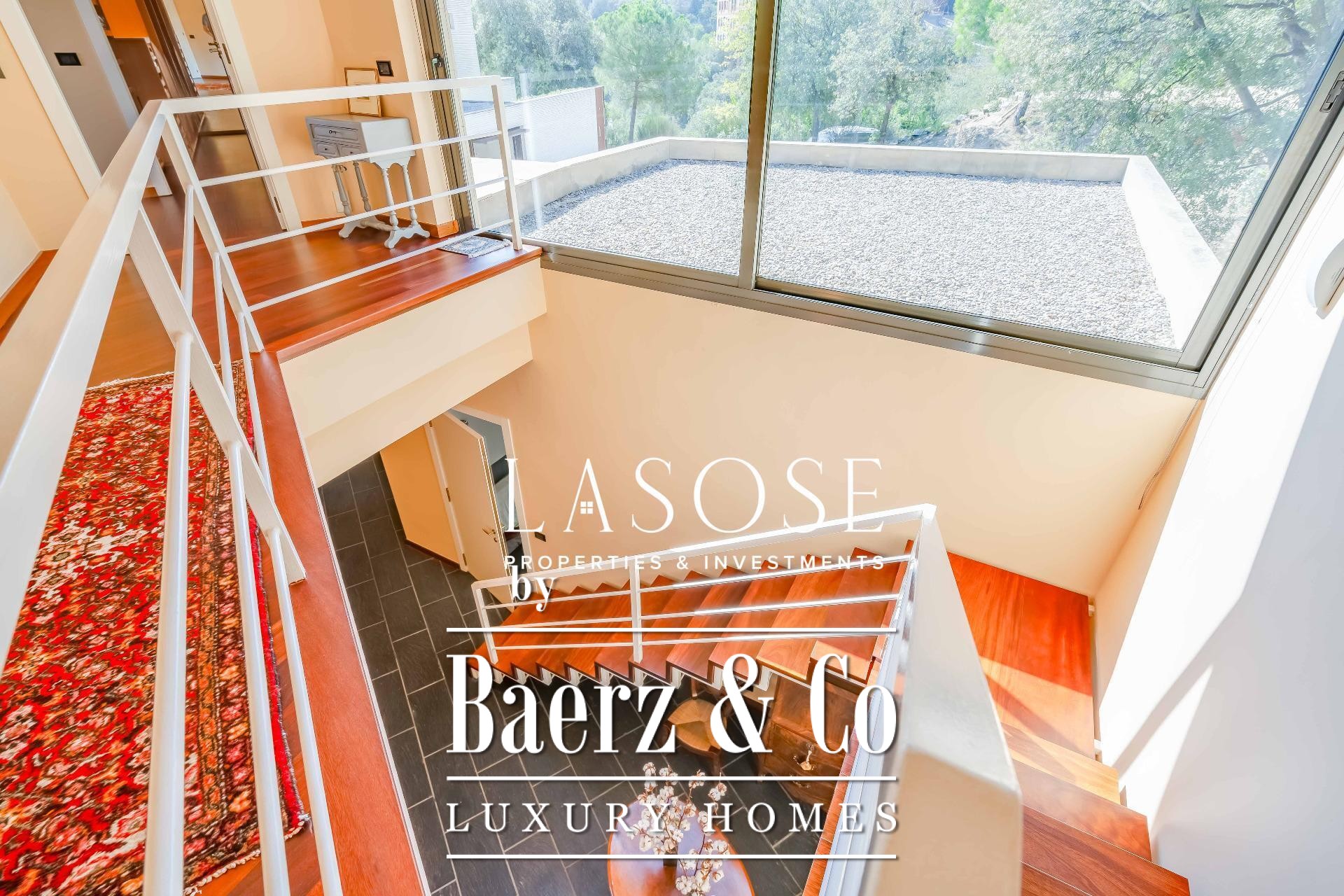 Deze eigentijdse woning in Barcelona biedt panoramisch uitzicht over de stad vanaf haar verhoogde ligging in Vallvidrera, een van de meest exclusieve woonwijken van het hogere Barcelona. Op loopafstand van het centrum en Sarriá via de kabelspoorbaan, ligt dit huis van 439 m² op een perceel van 778 m², met een harmonieuze balans tussen privacy, licht en toegankelijkheid.