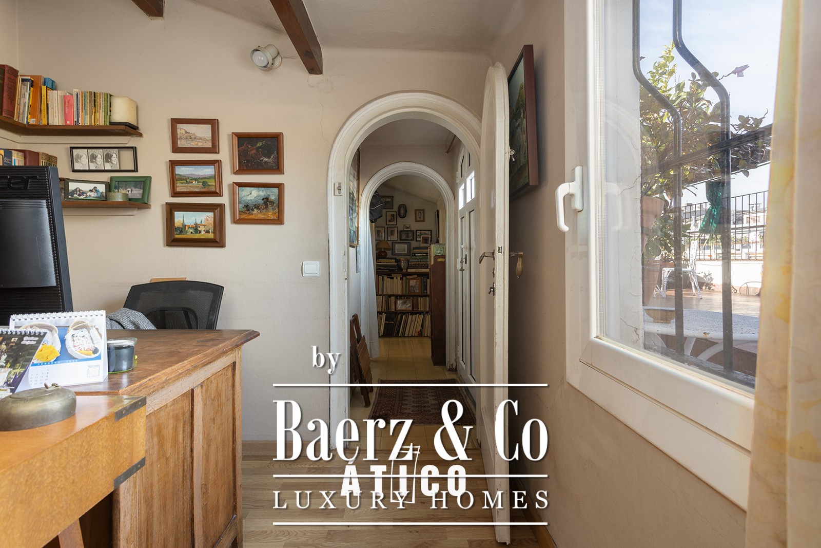 Een discrete trap leidt naar de bovenverdieping, waar een tweede tweepersoonsslaapkamer via een studeerruimte uitkomt op een ruim terras van 44 m². Dit privé-uitkijkpunt biedt open zicht op Tibidabo, perfect voor bijeenkomsten bij zonsondergang of contemplatieve middagen. De bovenste verdieping herbergt tevens nog een tweepersoonsslaapkamer, een gastentoilet en een flexibele opbergruimte. Eén parkeerplaats is inbegrepen, met mogelijkheid tot aankoop van twee extra plaatsen.