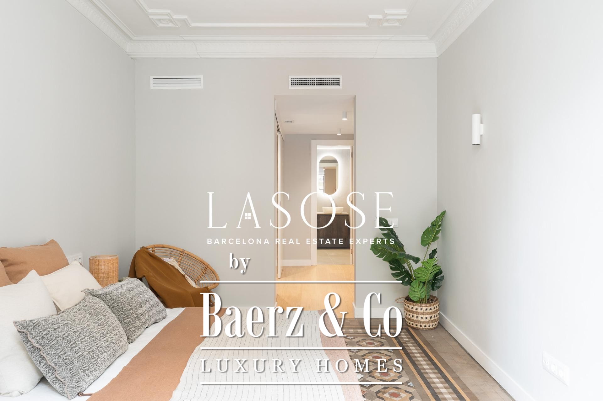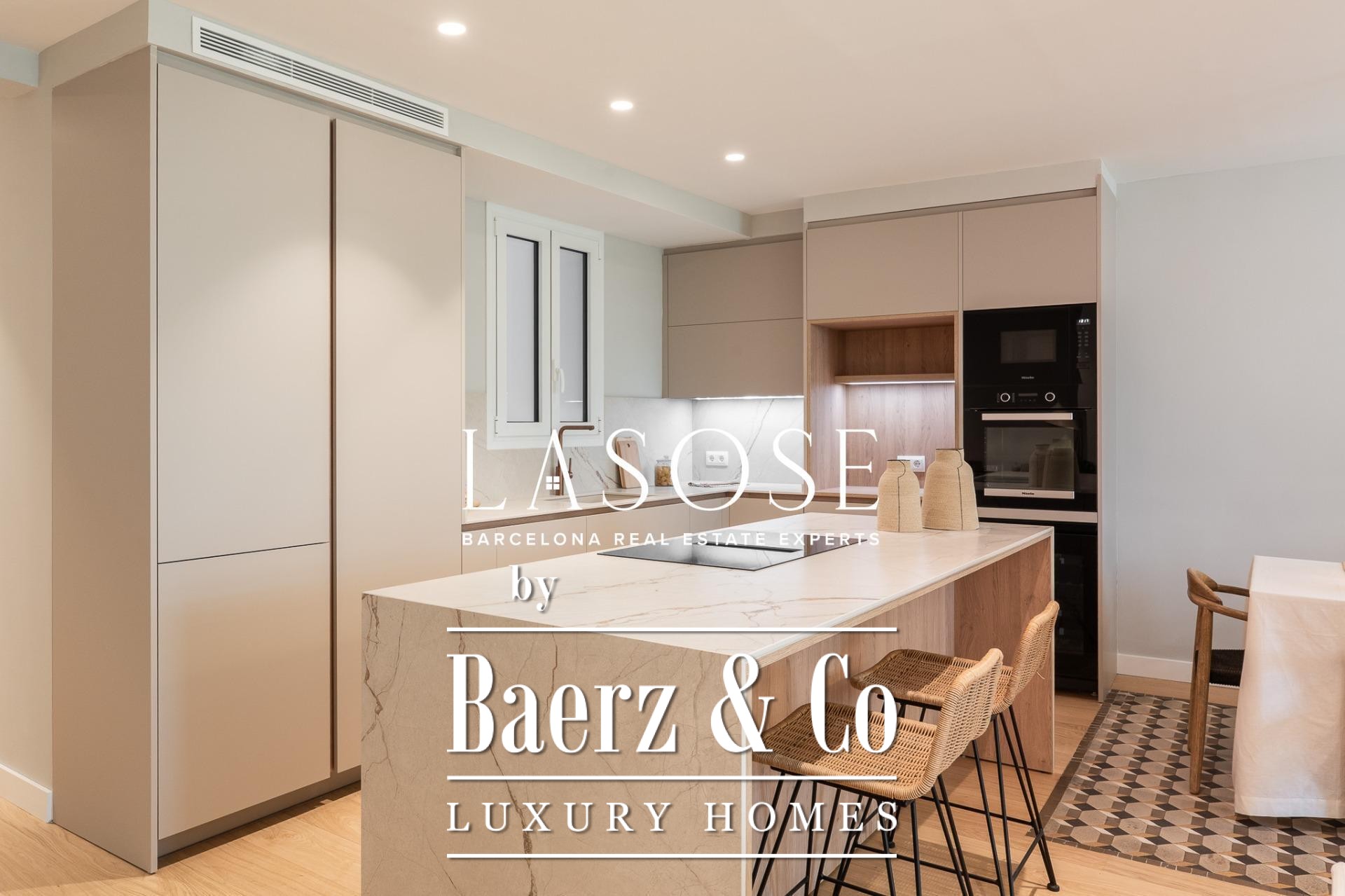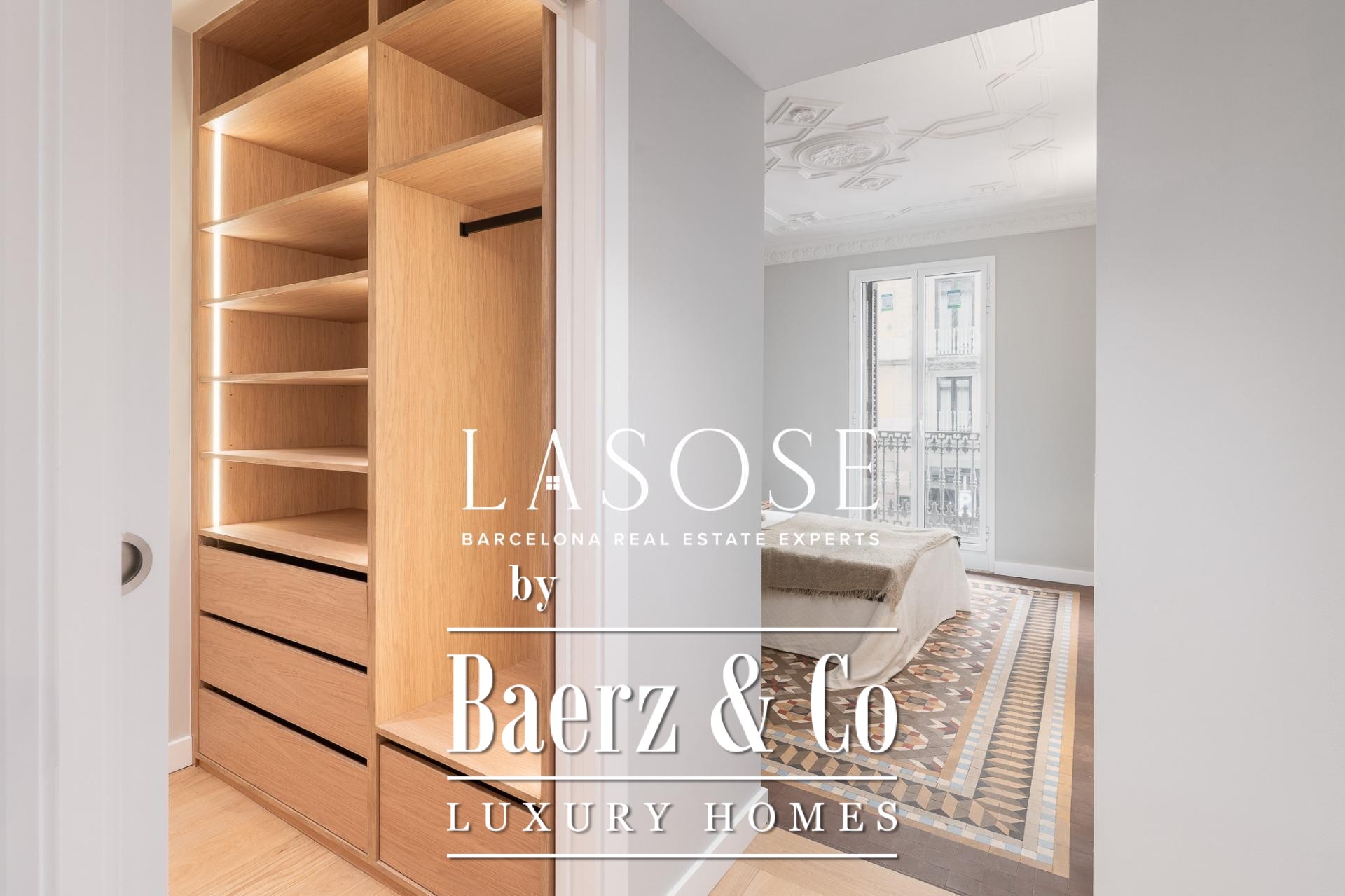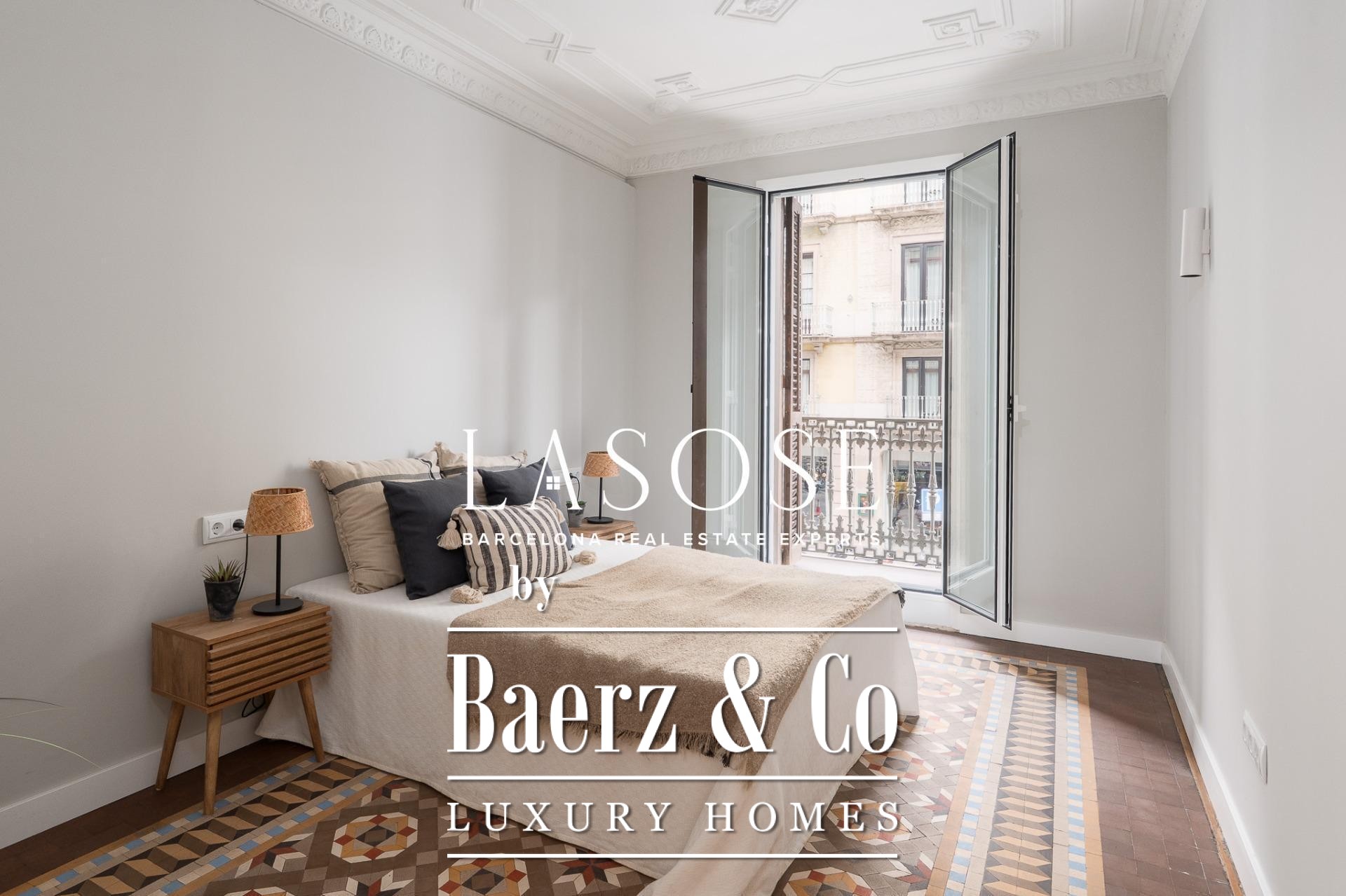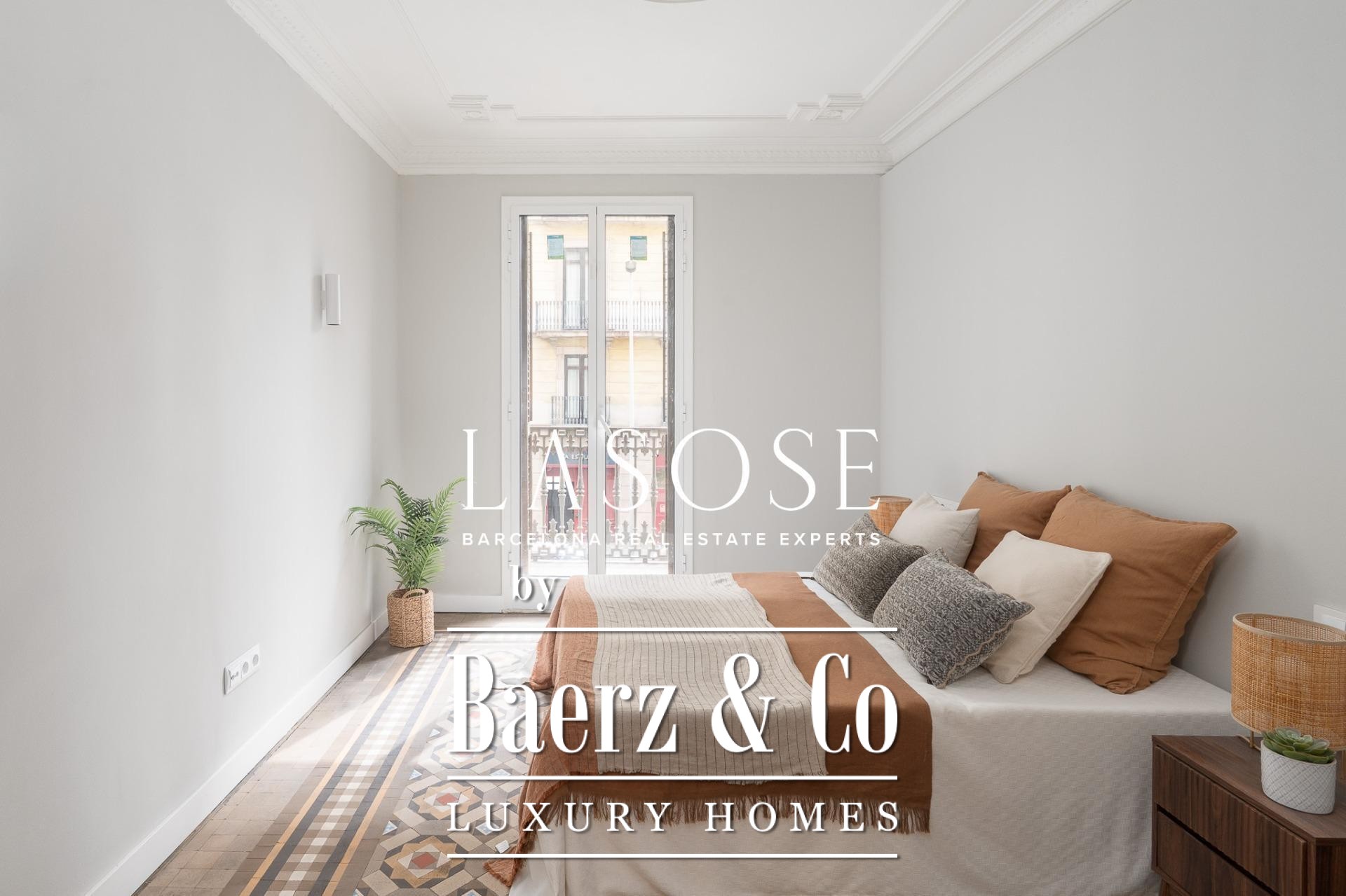 Het appartement Barcelona bevindt zich op het kruispunt van Plaça Catalunya en Dreta de l'Eixample, op een markante locatie aan de Bergara-straat. Deze residentie van 162 m² combineert de architectuur uit het begin van de twintigste eeuw met modern comfort. Natuurlijk licht stroomt door de hoge, voorzien van cassetteplafonds, terwijl de gerestaureerde hydraulische Nolla-mozaïekvloeren, originele houtdetails en verfijnde sierlijsten het erfgoed en karakter onderstrepen.