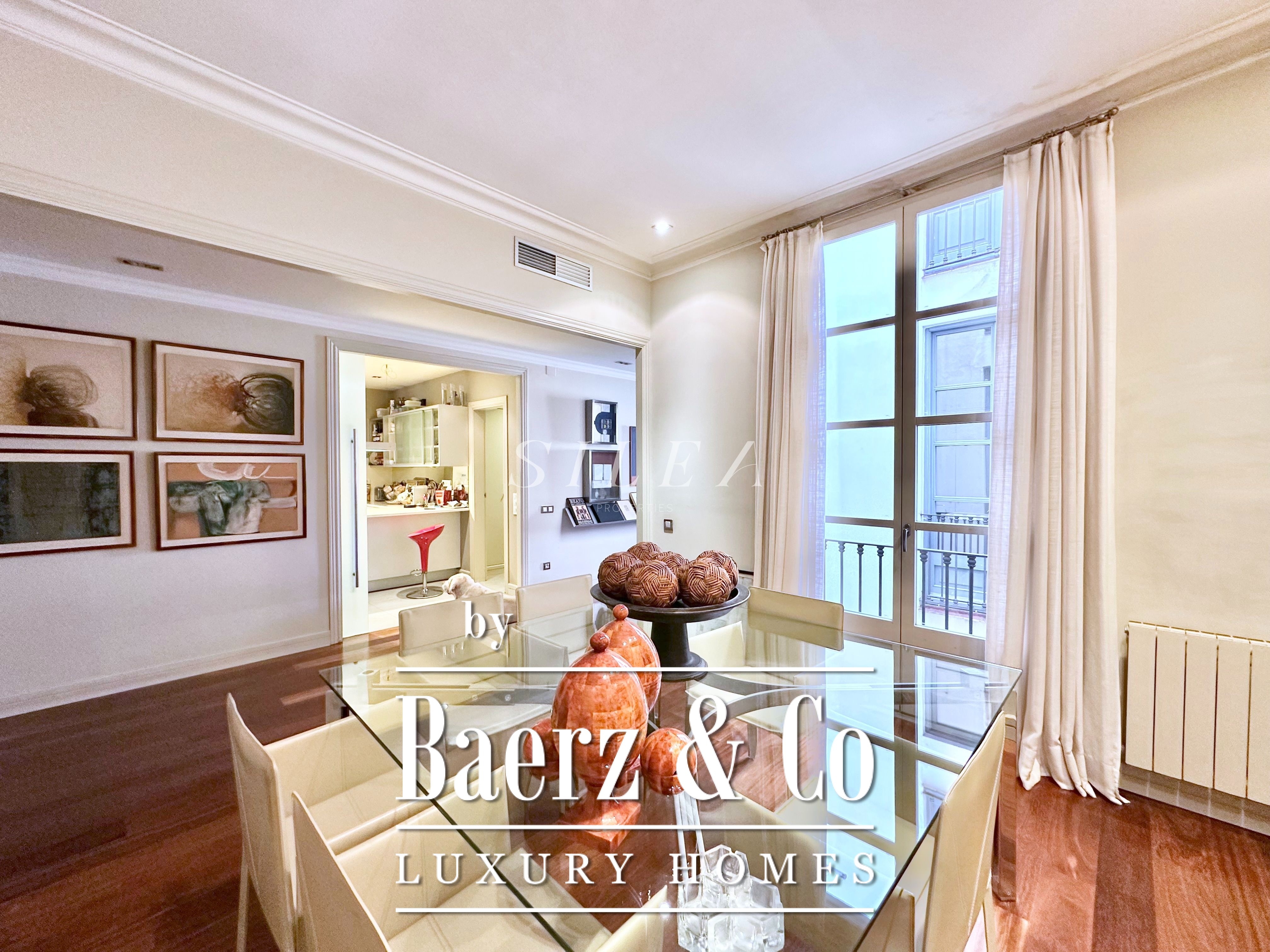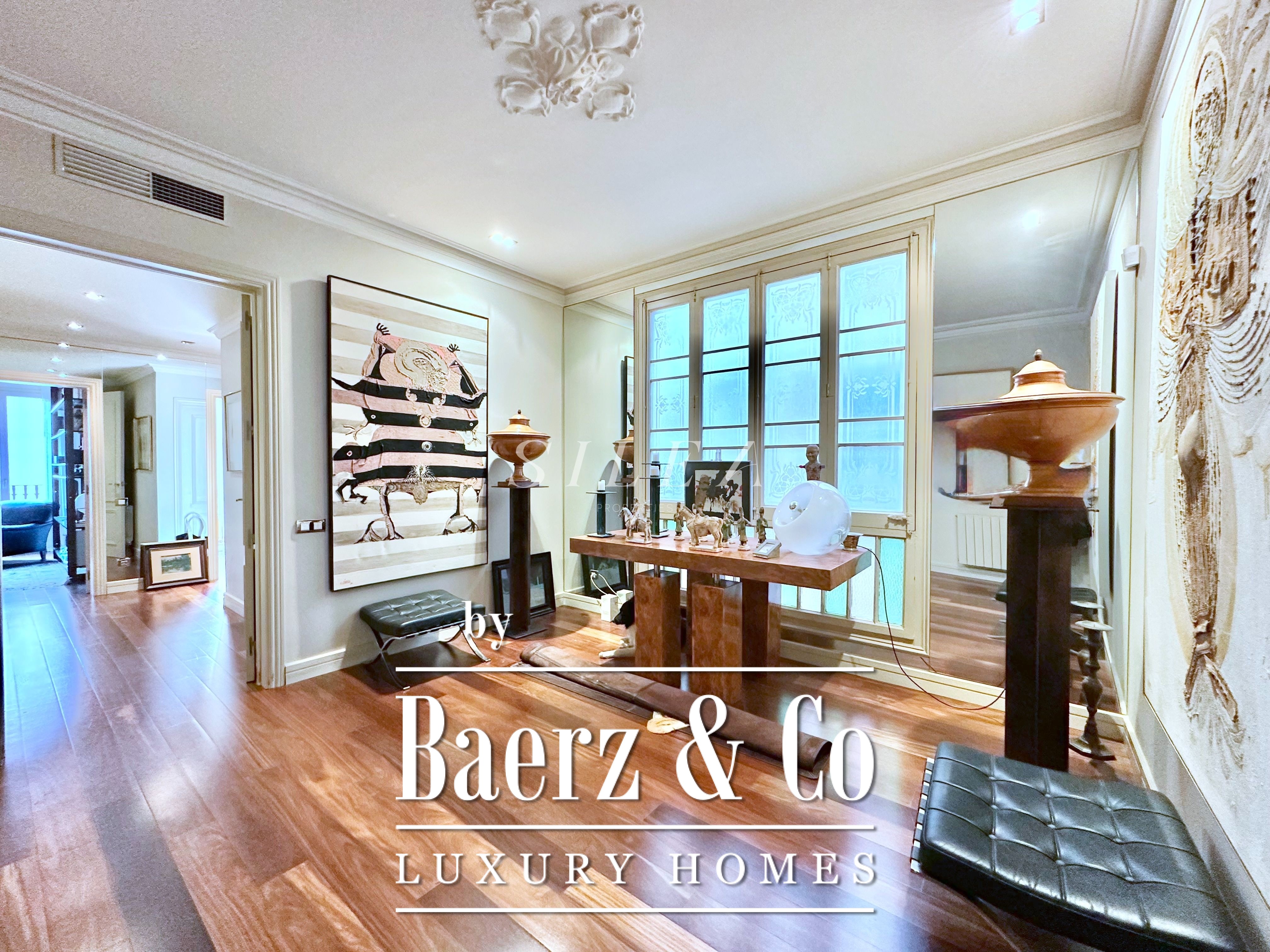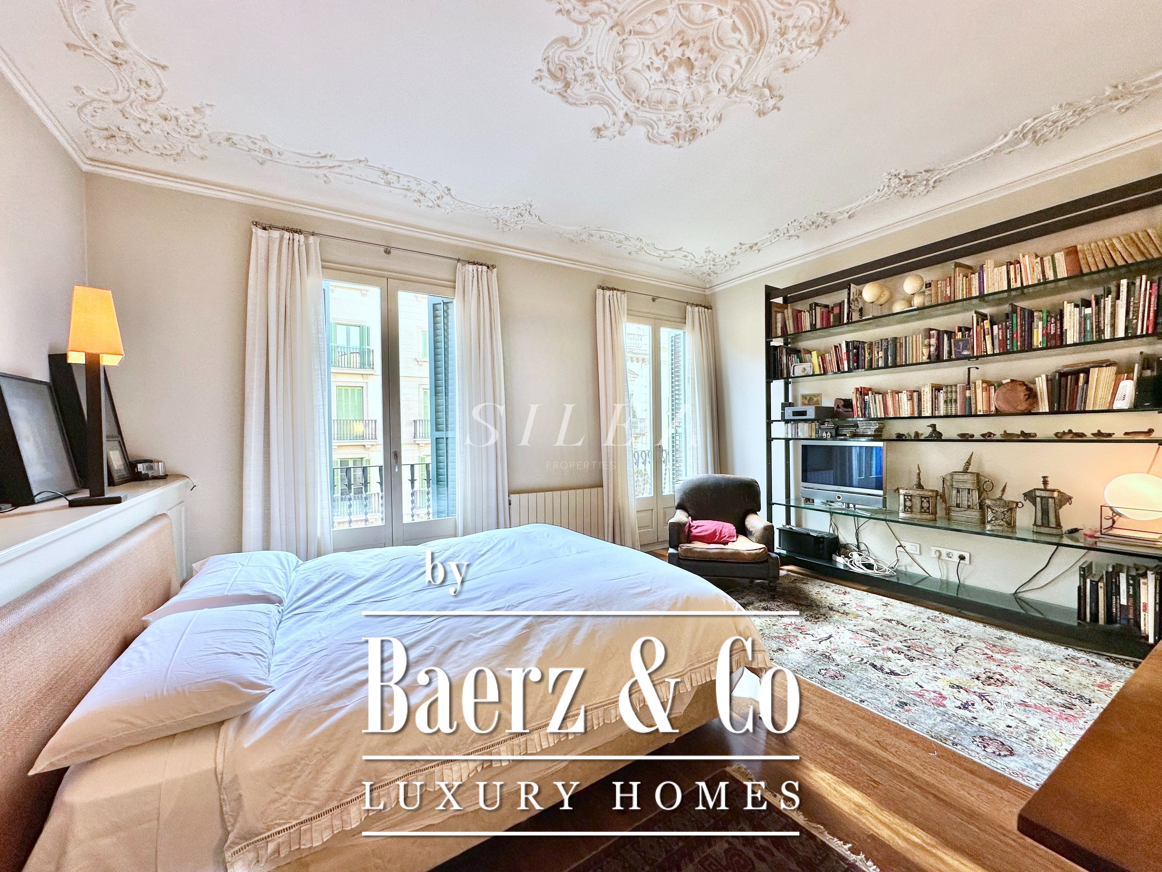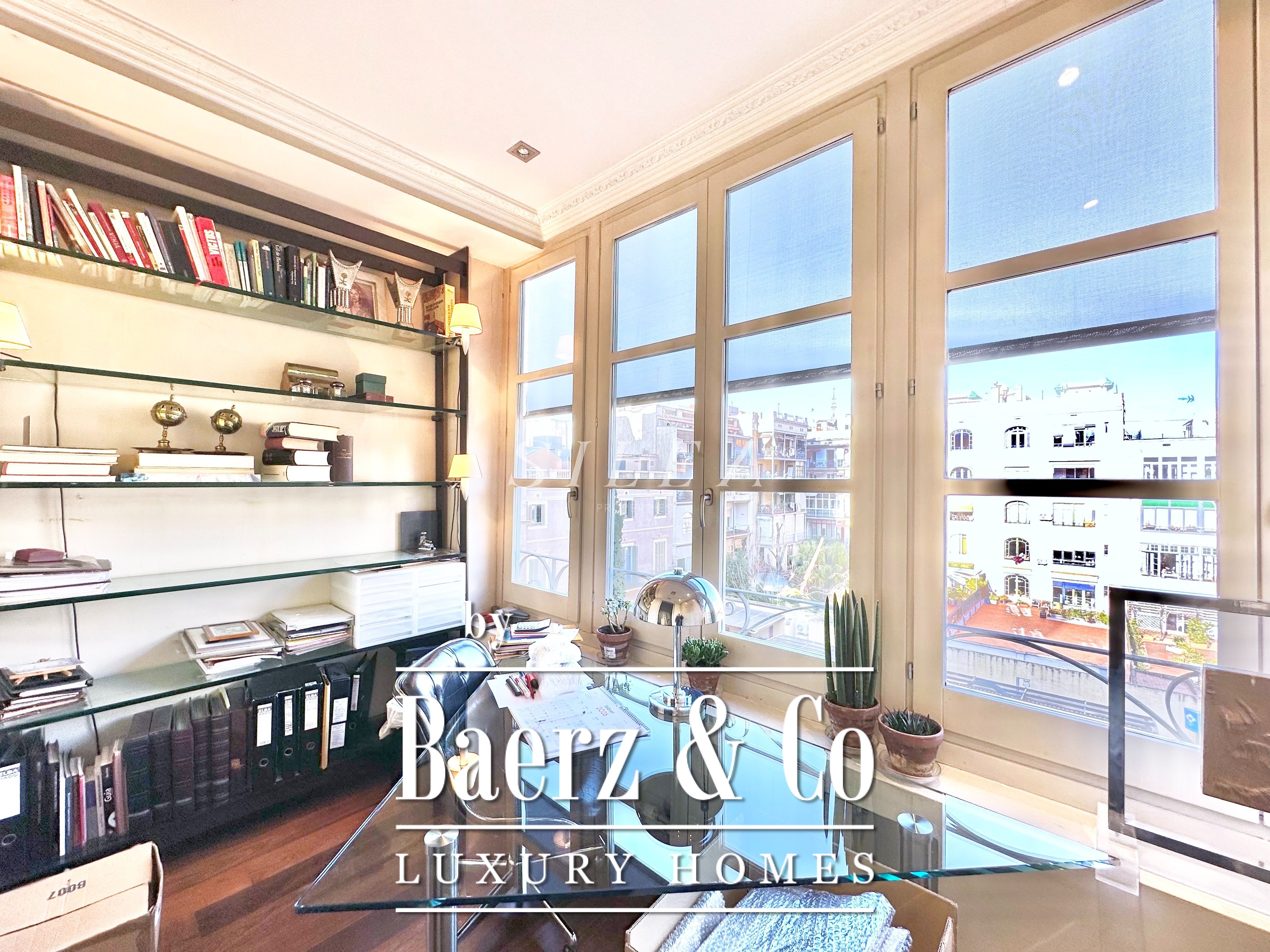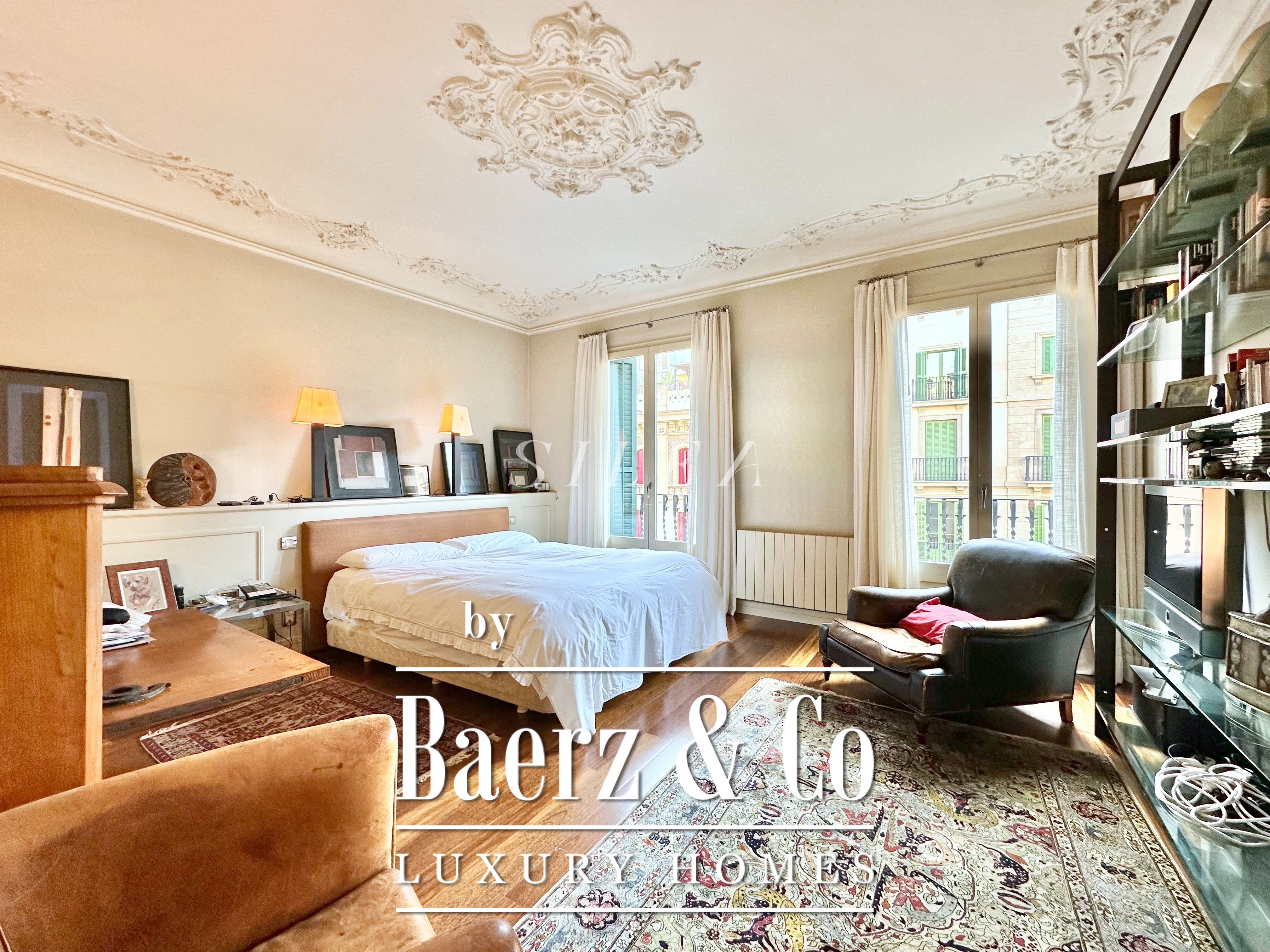 Met een totaaloppervlak van 258 m² en 228 m² aan bruikbare woonruimte, maakt het appartement indruk door de ruime opzet en prettige indeling. Hoge plafonds en grote ramen laten overvloedig daglicht binnen, terwijl originele parketvloeren en elegante verhoudingen zorgen voor een ingetogen gevoel van grandeur en rust. Twee royale woonkamers bieden ruimte voor stijlvol entertainen of juist voor een rustige terugtrekking, waarvan één met een Frans balkon dat uitzicht biedt op de statige gevels van het Eixample.