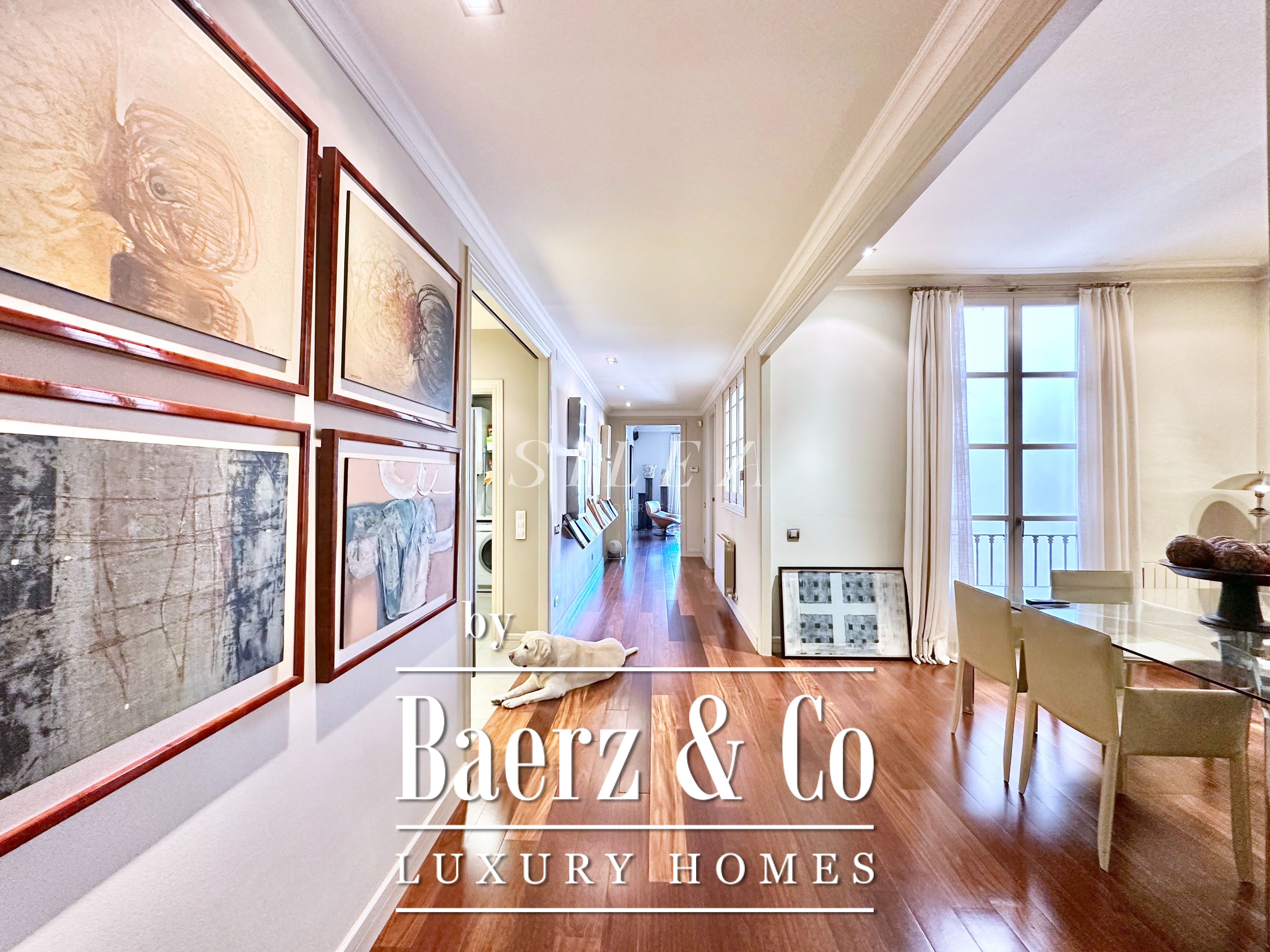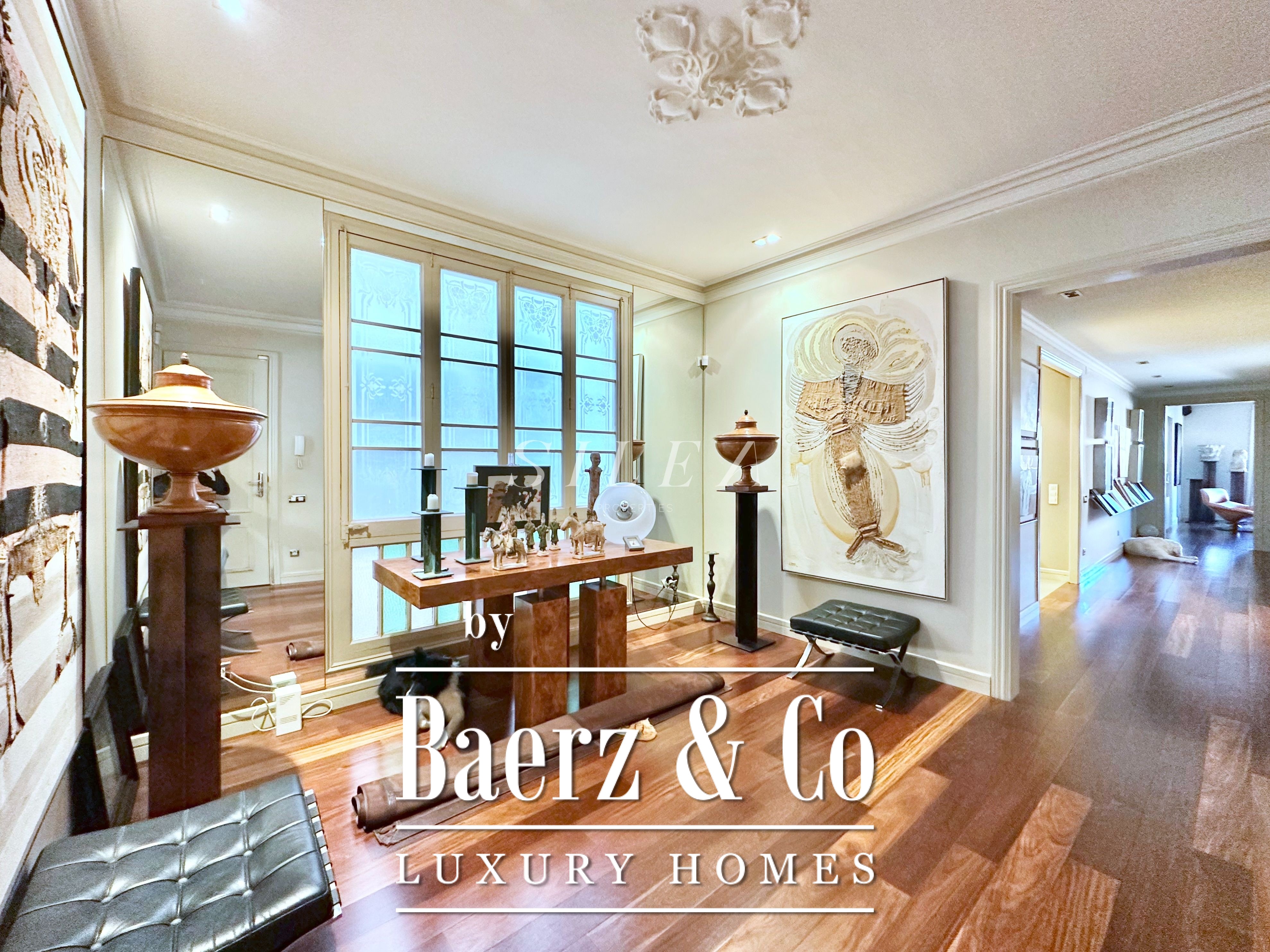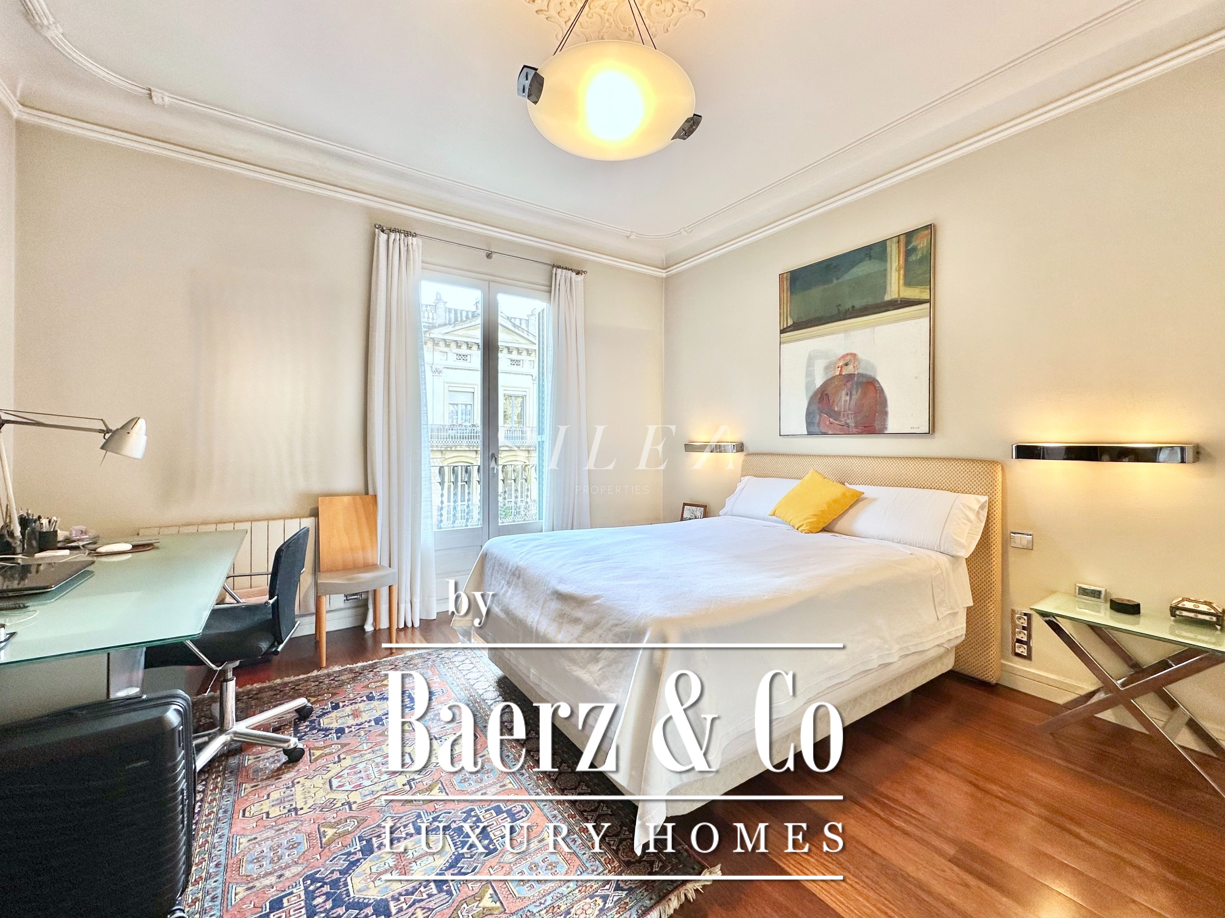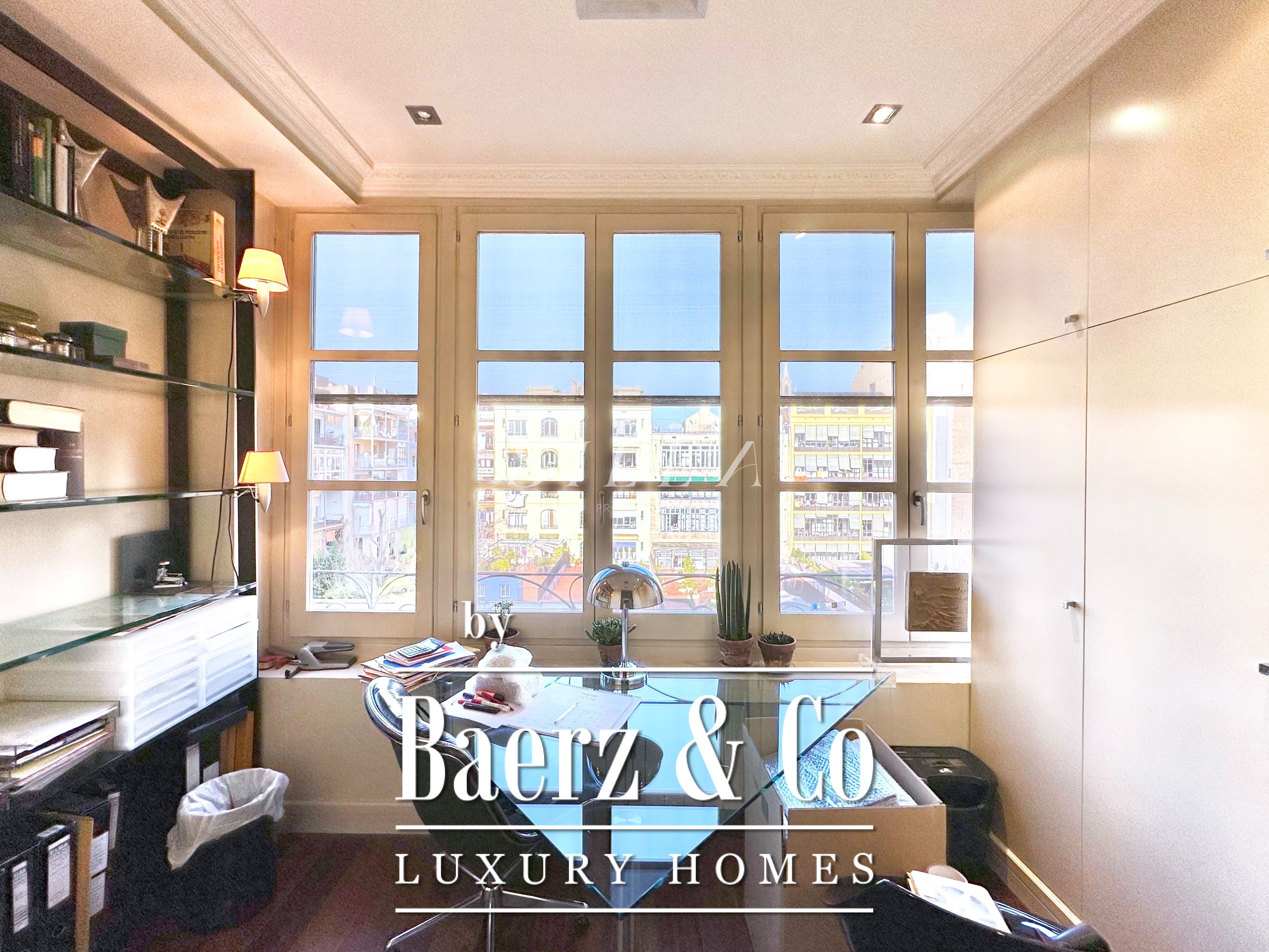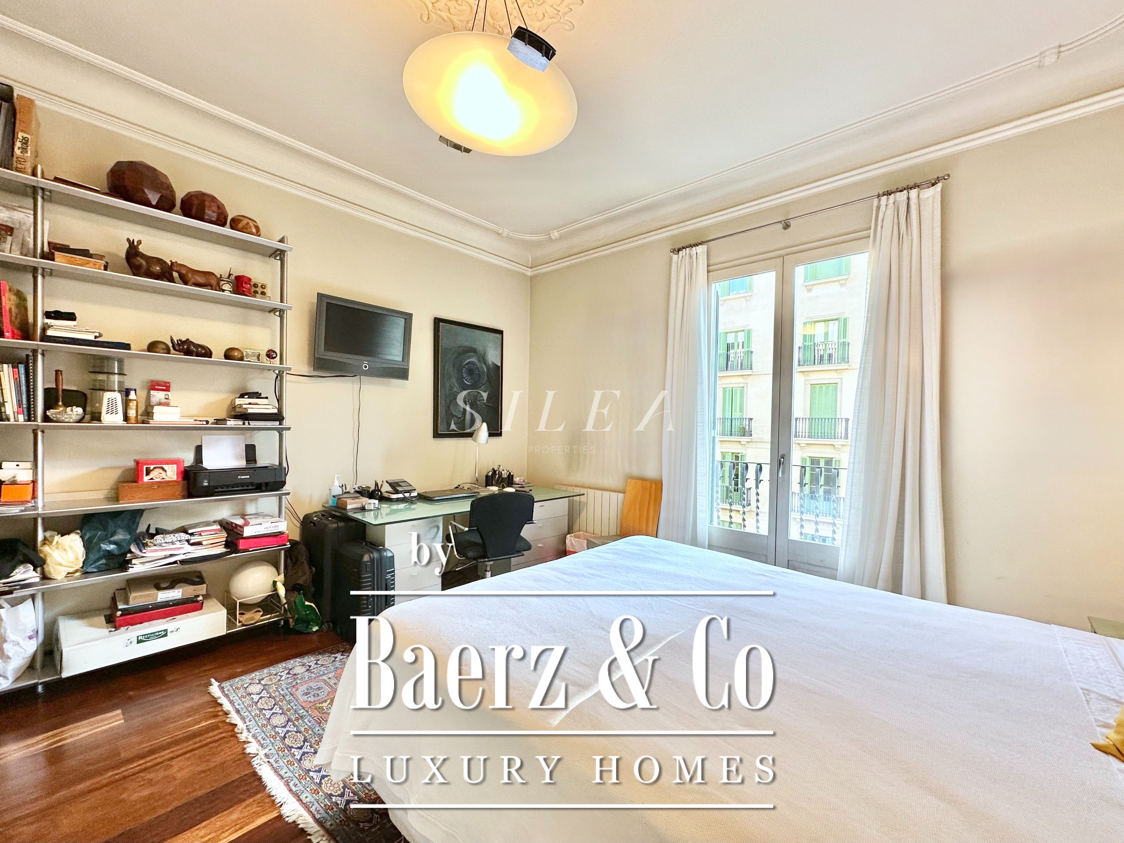 Met een totaaloppervlak van 258 m² en 228 m² aan bruikbare woonruimte, maakt het appartement indruk door de ruime opzet en prettige indeling. Hoge plafonds en grote ramen laten overvloedig daglicht binnen, terwijl originele parketvloeren en elegante verhoudingen zorgen voor een ingetogen gevoel van grandeur en rust. Twee royale woonkamers bieden ruimte voor stijlvol entertainen of juist voor een rustige terugtrekking, waarvan één met een Frans balkon dat uitzicht biedt op de statige gevels van het Eixample.