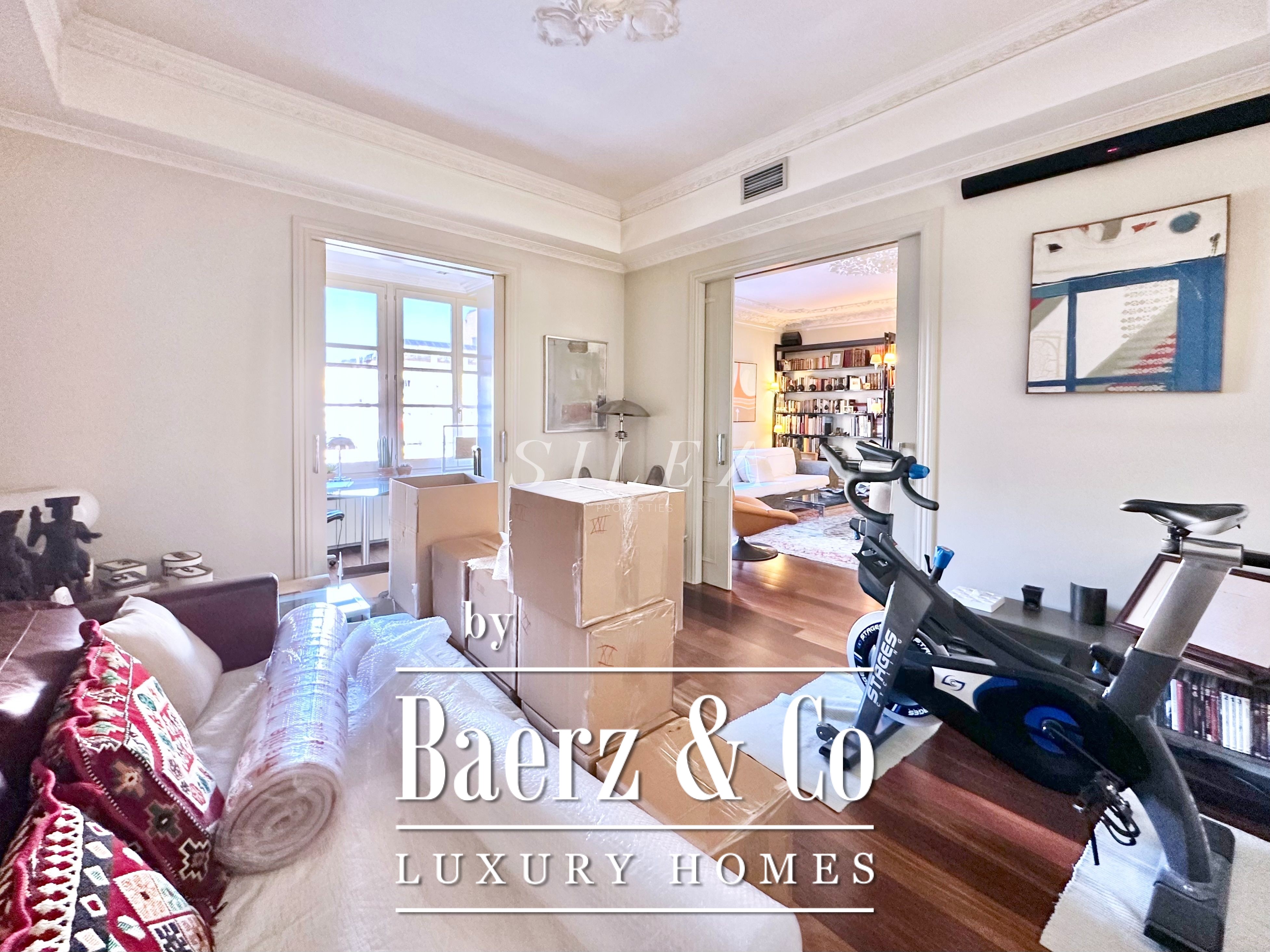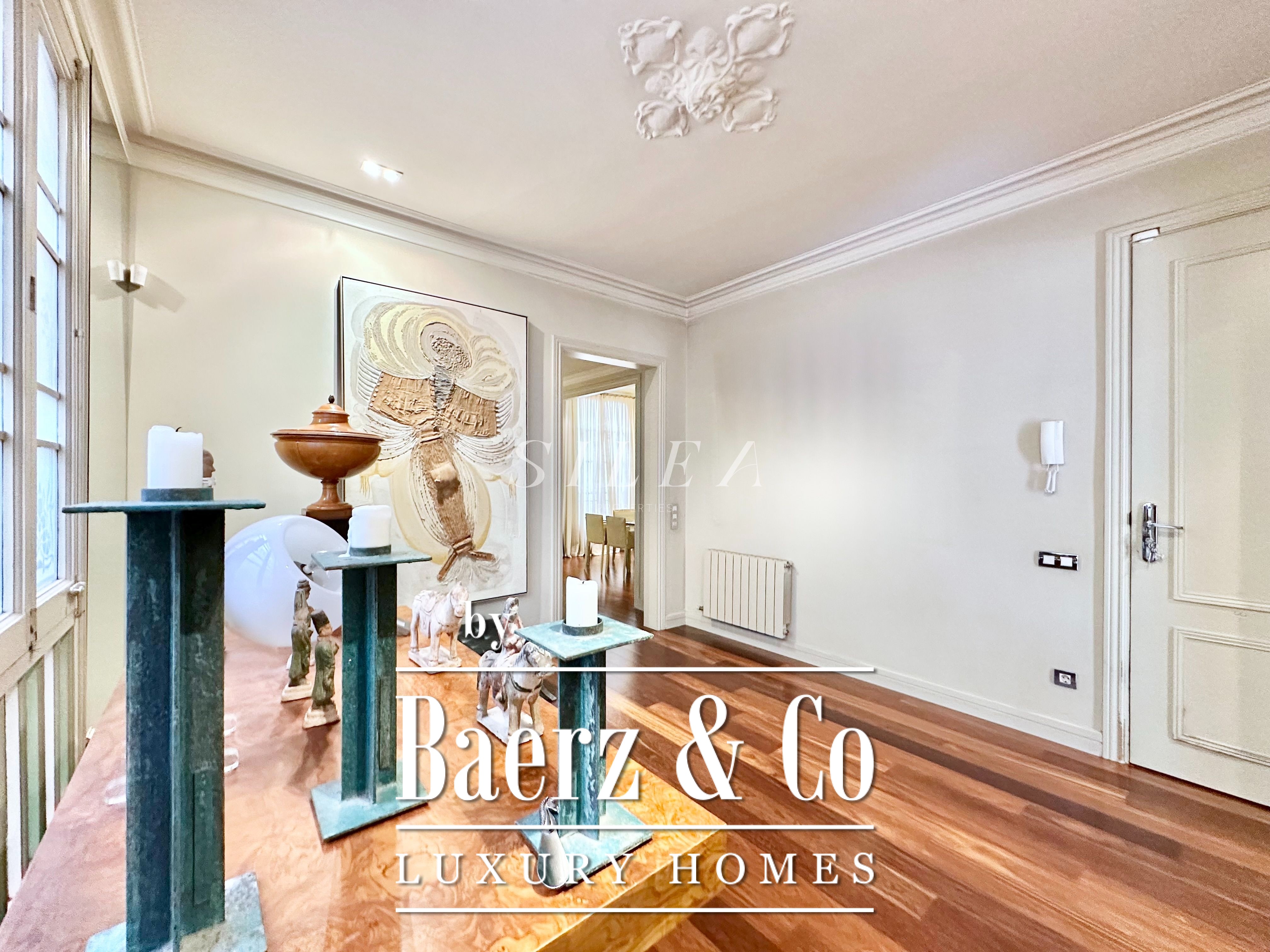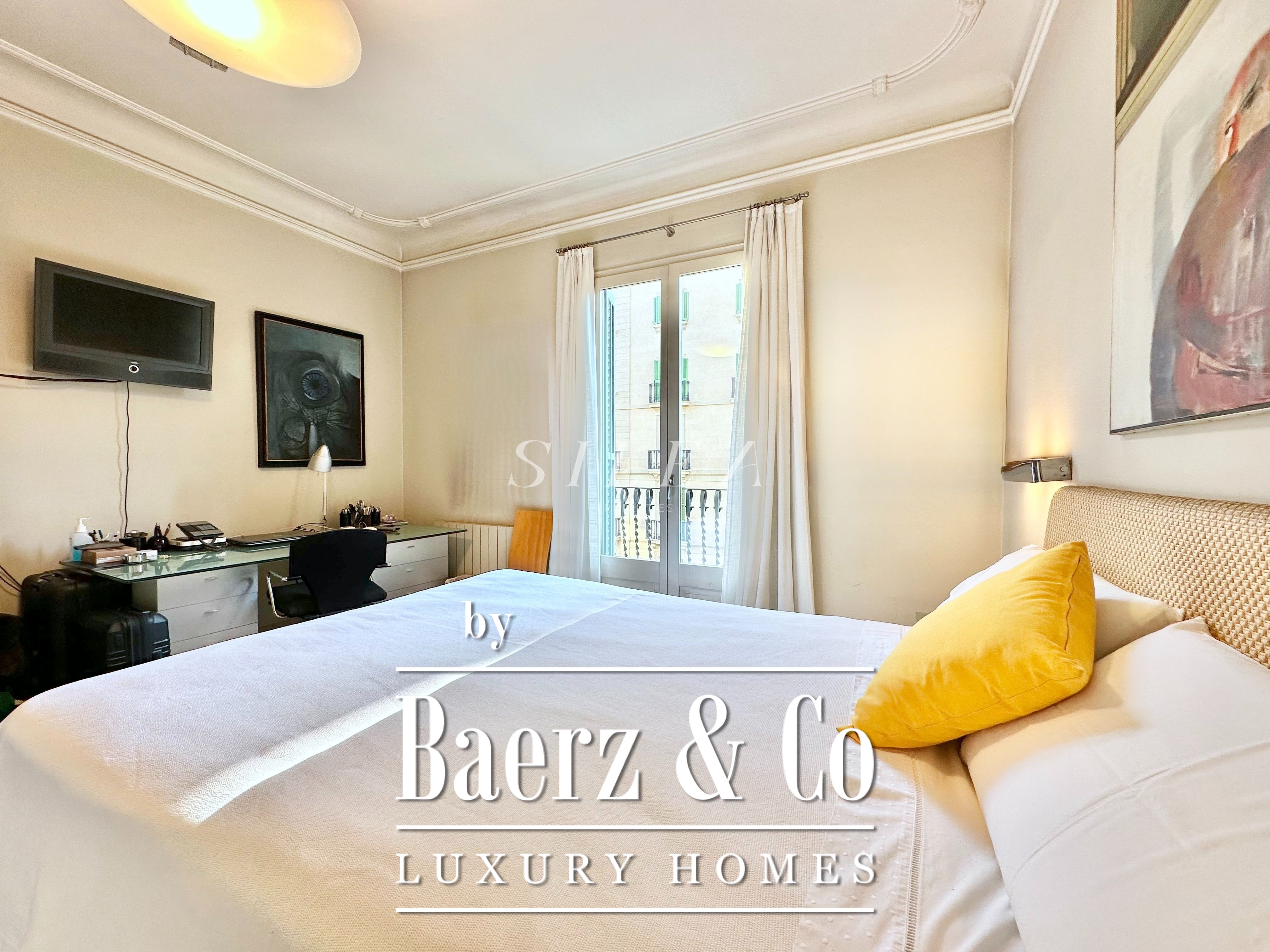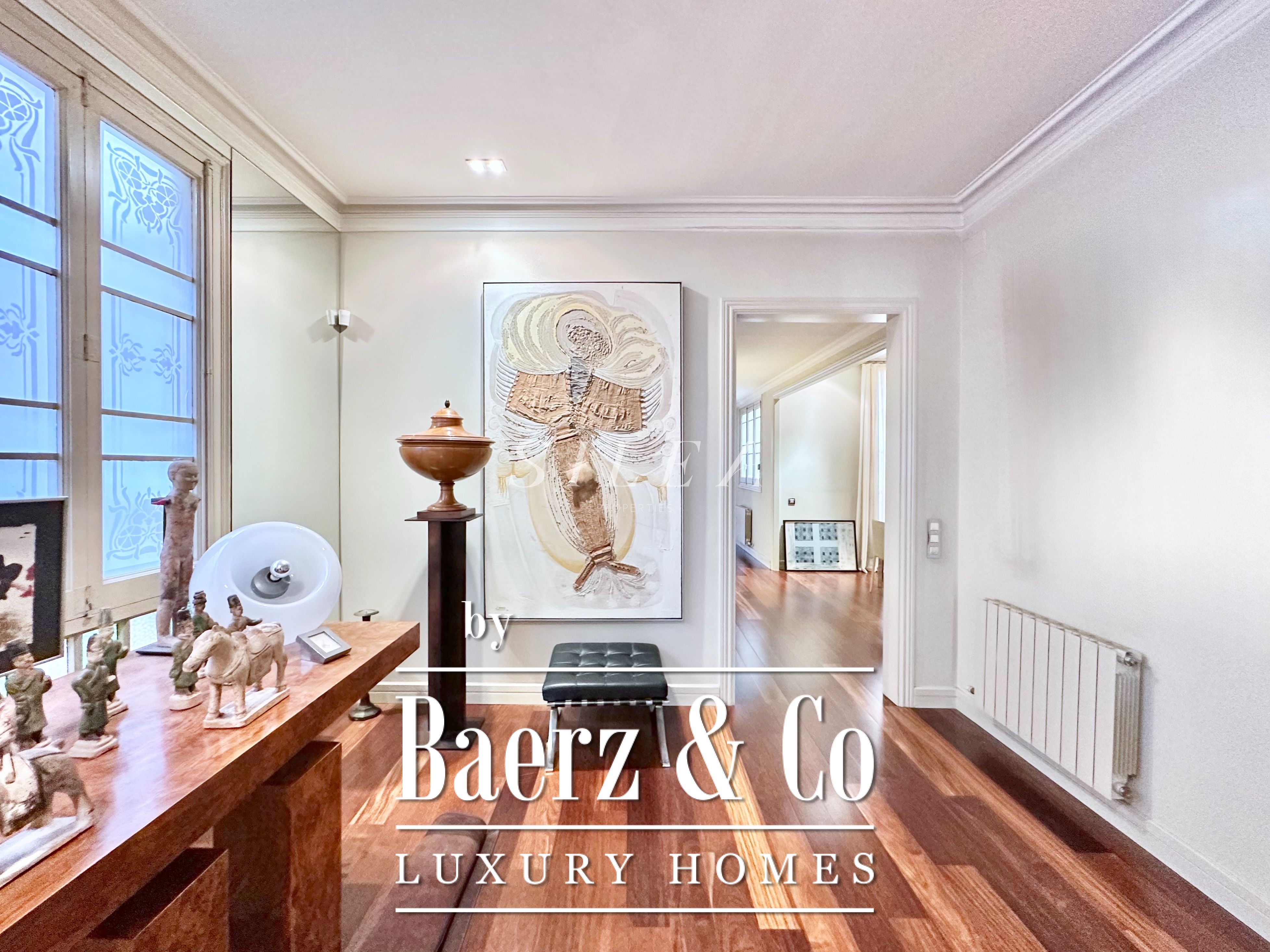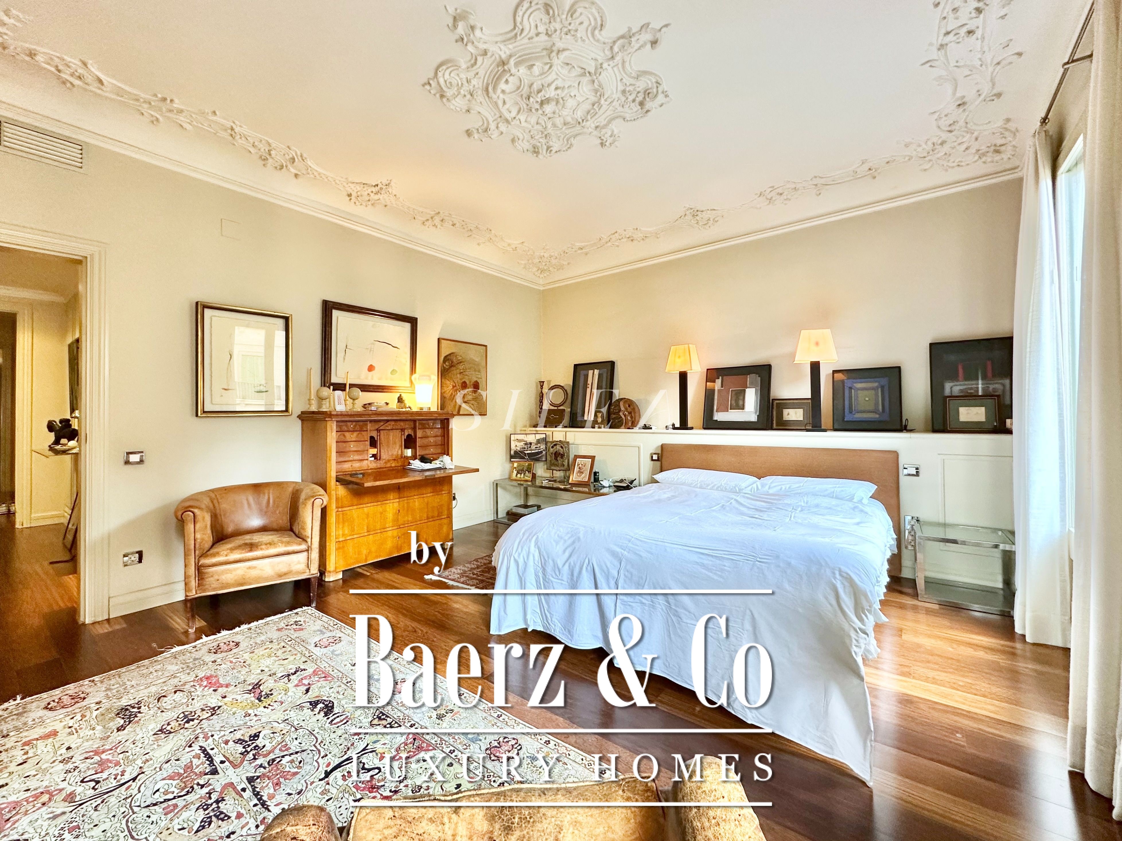 Met een totaaloppervlak van 258 m² en 228 m² aan bruikbare woonruimte, maakt het appartement indruk door de ruime opzet en prettige indeling. Hoge plafonds en grote ramen laten overvloedig daglicht binnen, terwijl originele parketvloeren en elegante verhoudingen zorgen voor een ingetogen gevoel van grandeur en rust. Twee royale woonkamers bieden ruimte voor stijlvol entertainen of juist voor een rustige terugtrekking, waarvan één met een Frans balkon dat uitzicht biedt op de statige gevels van het Eixample.