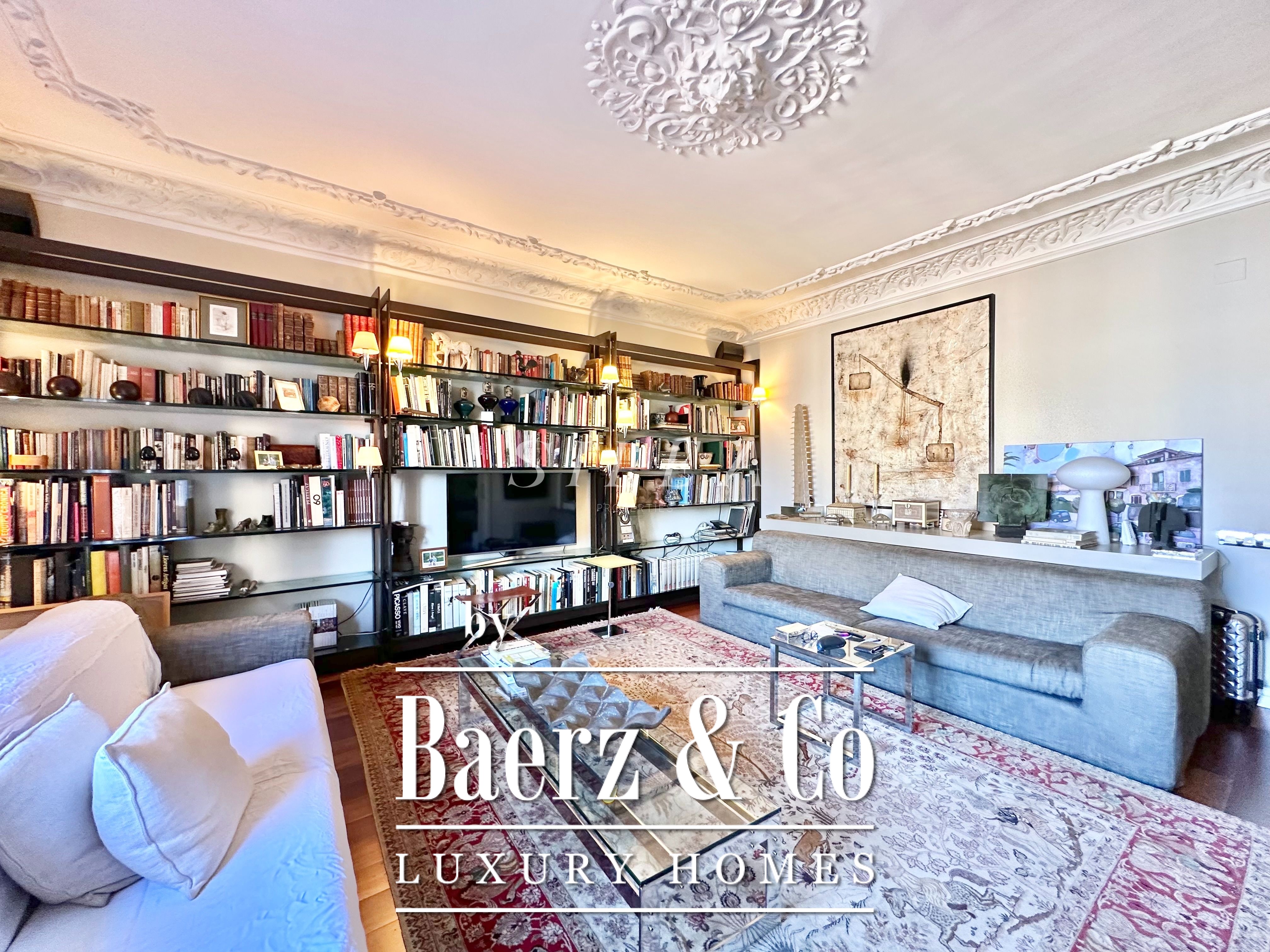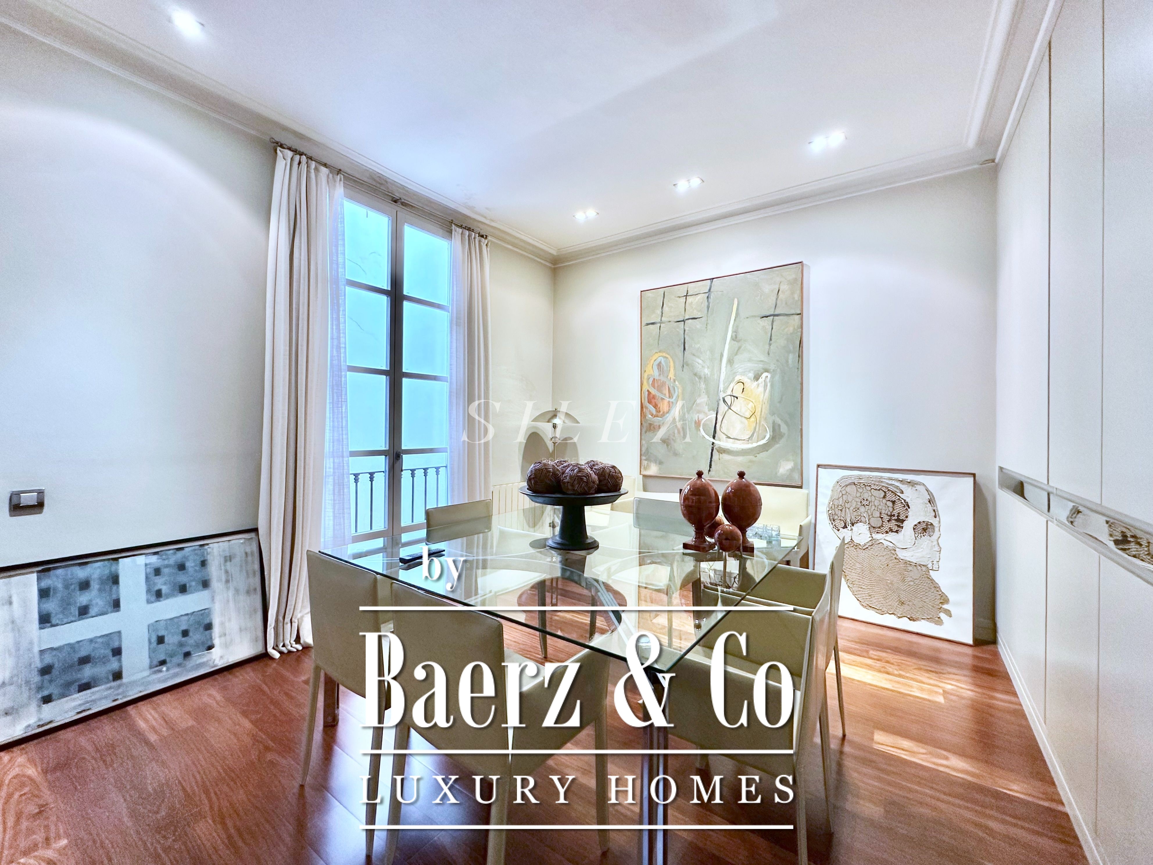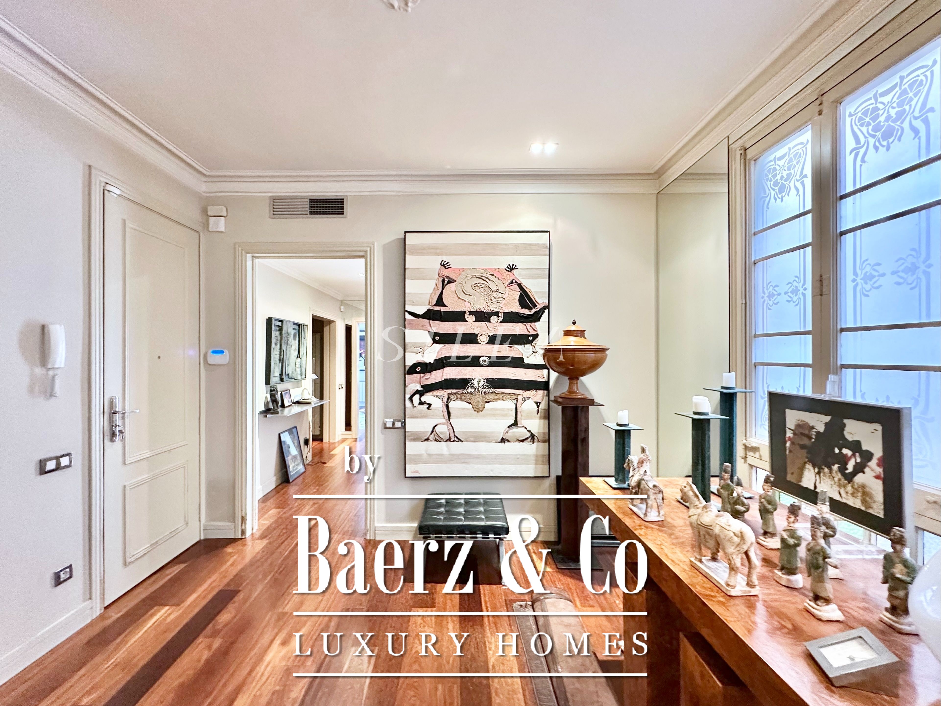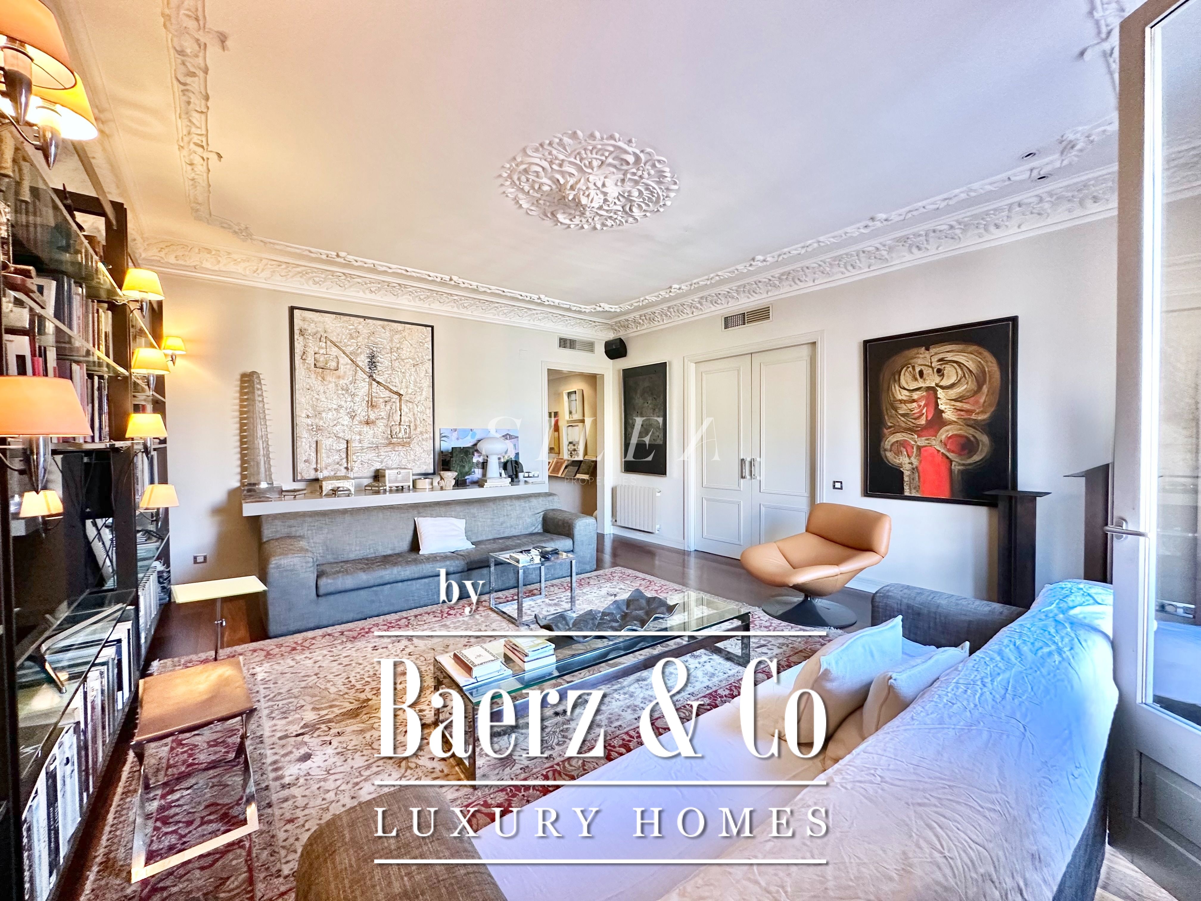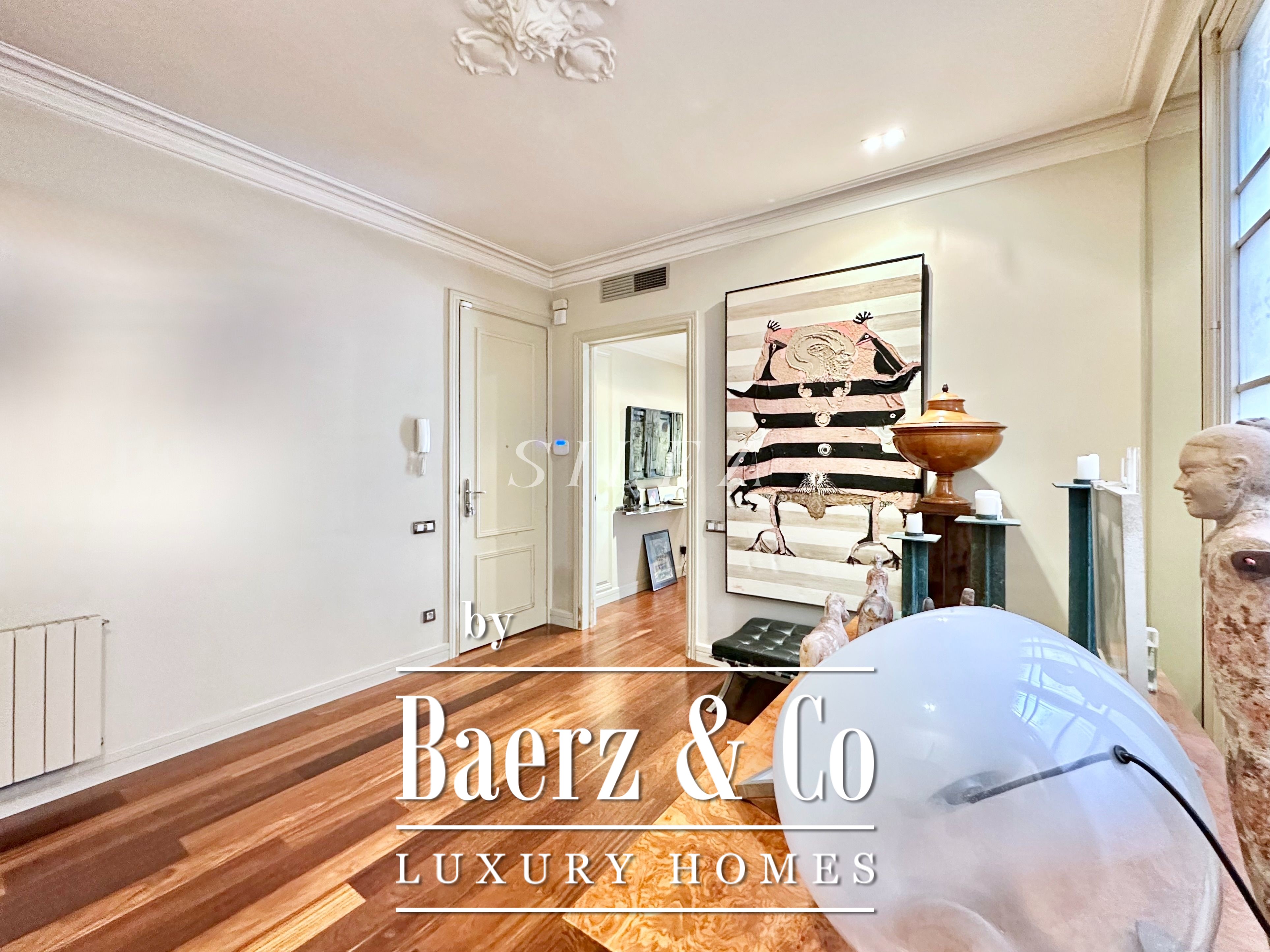 Met een totaaloppervlak van 258 m² en 228 m² aan bruikbare woonruimte, maakt het appartement indruk door de ruime opzet en prettige indeling. Hoge plafonds en grote ramen laten overvloedig daglicht binnen, terwijl originele parketvloeren en elegante verhoudingen zorgen voor een ingetogen gevoel van grandeur en rust. Twee royale woonkamers bieden ruimte voor stijlvol entertainen of juist voor een rustige terugtrekking, waarvan één met een Frans balkon dat uitzicht biedt op de statige gevels van het Eixample.