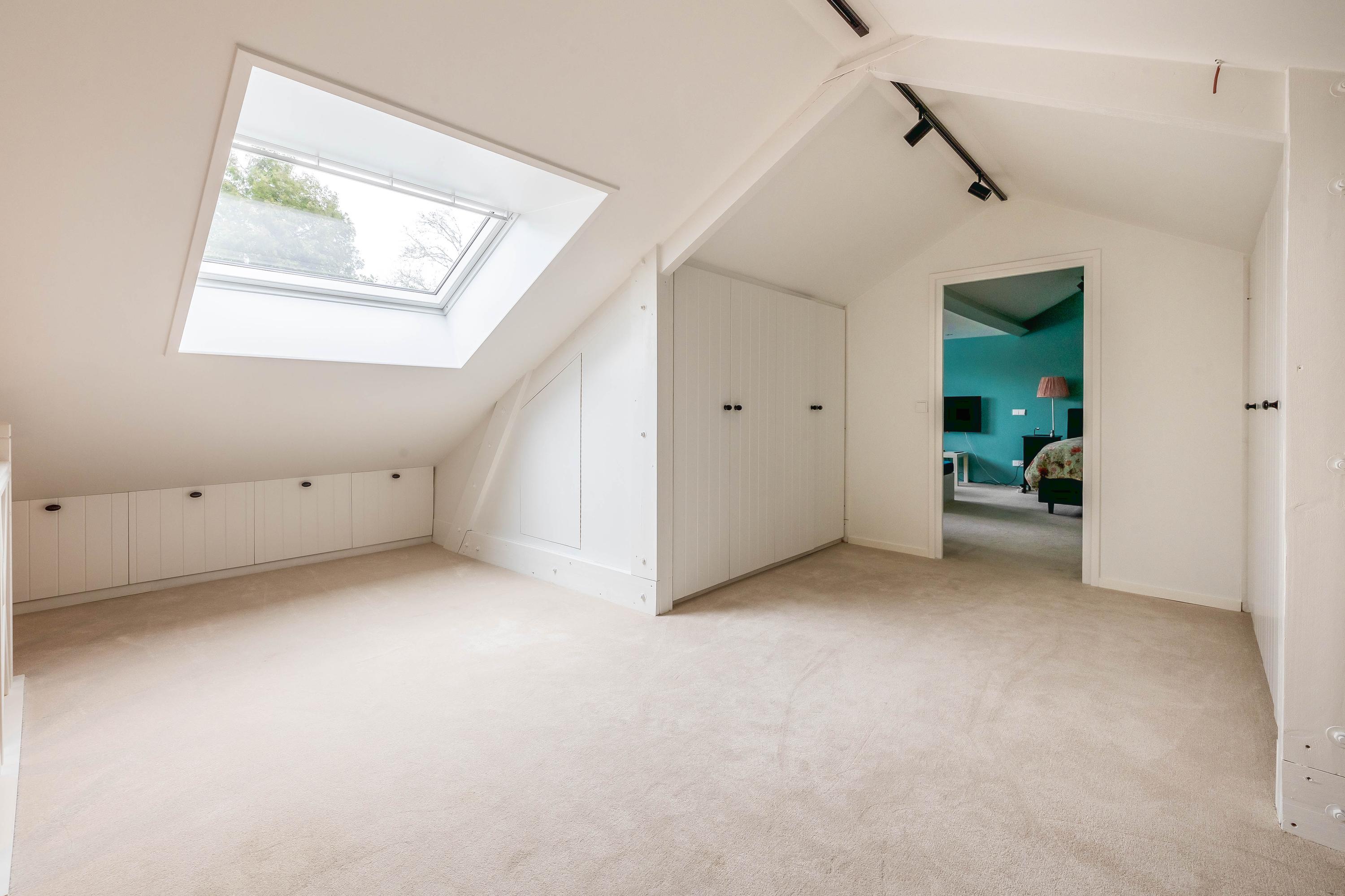 De nieuwe, vaste trap biedt toegang tot de 1ste verdieping. Deze unieke en zeer ruime 1ste verdieping heeft een royale overloop met een Velux dakraam met screen, diverse bergruimte en een aansluiting voor water waardoor er de mogelijkheid is om een badkamer te creëren evenals een tweede slaapkamer.