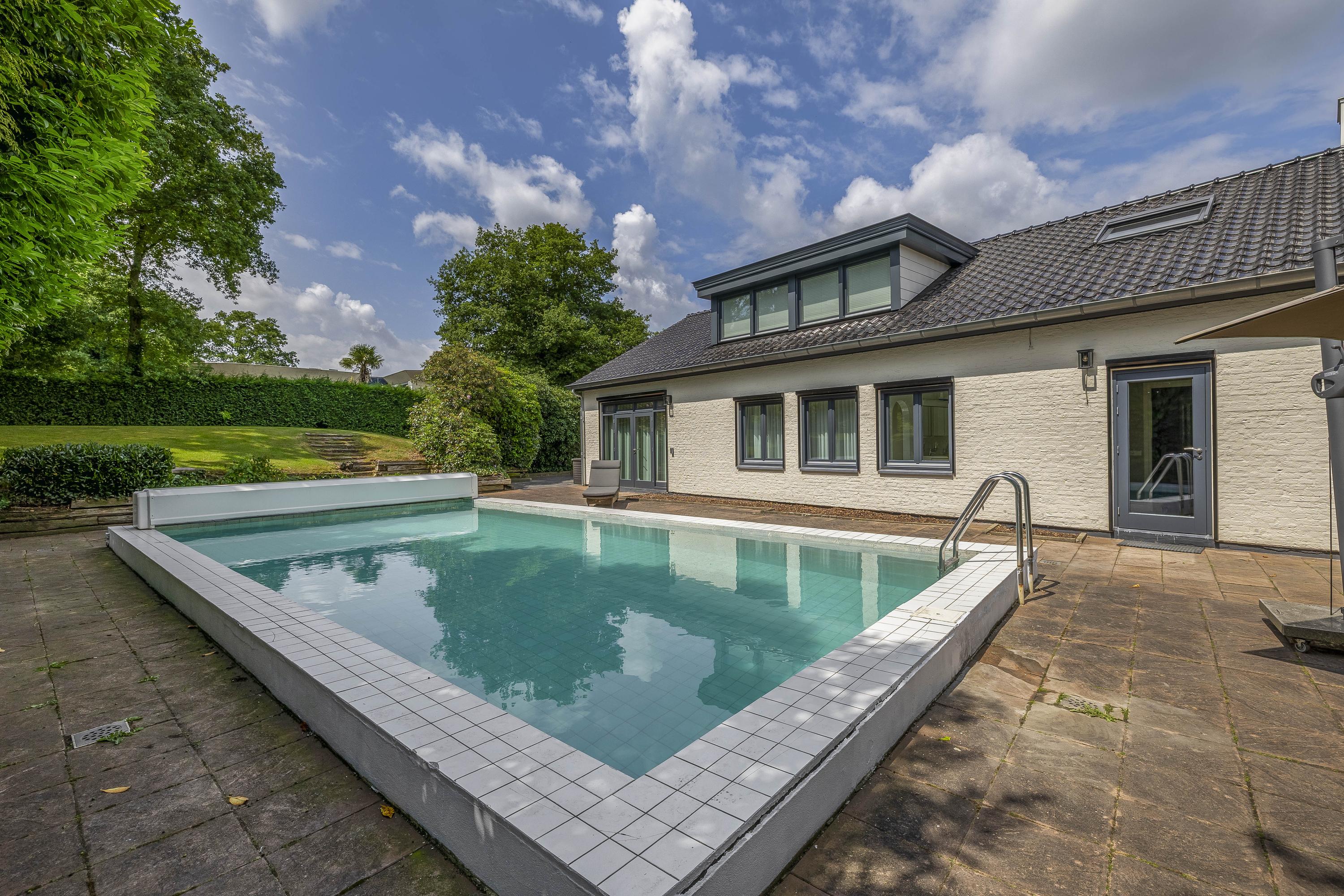 De tuin loopt volledig rondom de woning. Aan de linkerzijde biedt een terras een mooi uitzicht op de Maas. De tuin is zeer groen aangelegd. Het zwembad is circa. 10x5m. Op de eigen oprit is plek voor meerdere auto's.