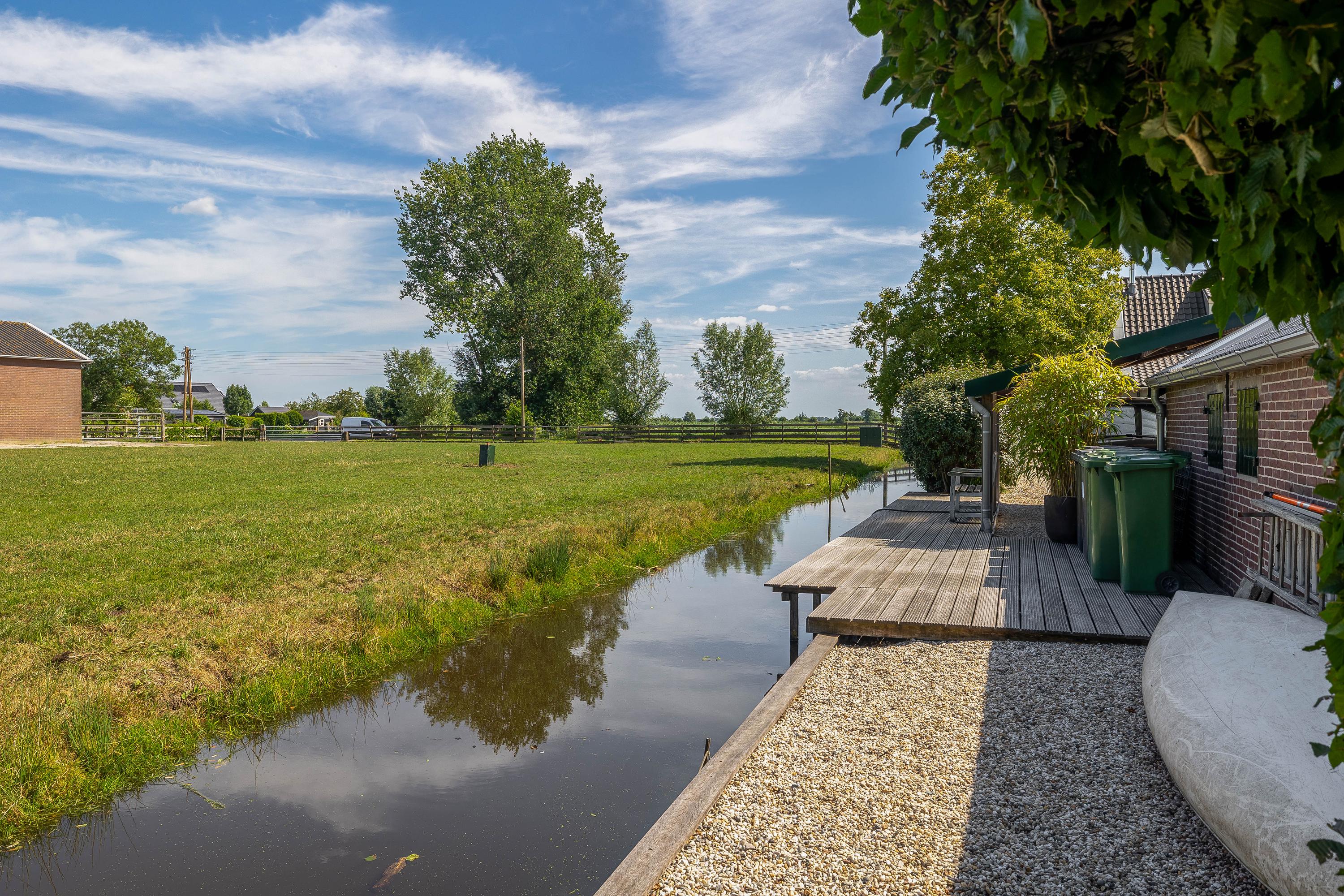 Buiten is het een oase van rust. De tuin rondom is strak, groen en verzorgd aangelegd, met verschillende zitplekken, grote gazons, bomen, borders, moestuin en sfeervolle hoekjes. Dankzij de ligging van het perceel heb je geen directe buren, veel privacy en prachtige uitzichten over water en weiland. Het weiland aan de oostzijde mag niet meer bebouwd worden, waardoor je ook in de toekomst verzekerd bent van vrij uitzicht.