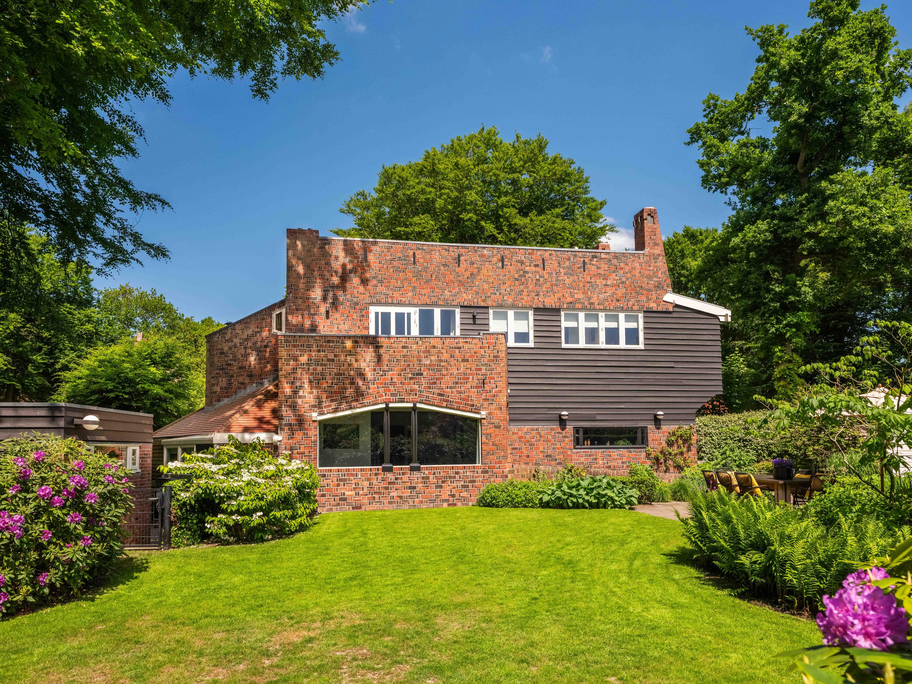 De villa en het bijhuisje zijn beiden ontworpen door architect J.F. Staal rond 1917 en voorzien van prachtig complex metselwerk, rode bakstenen, zwart gepotdekselde delen. Binnen vallen gelijk diverse ornamenten, vormen, kleur- en materiaalgebruik op met o.a. Belgisch hardsteen, hout en prachtig glas-in-lood.
