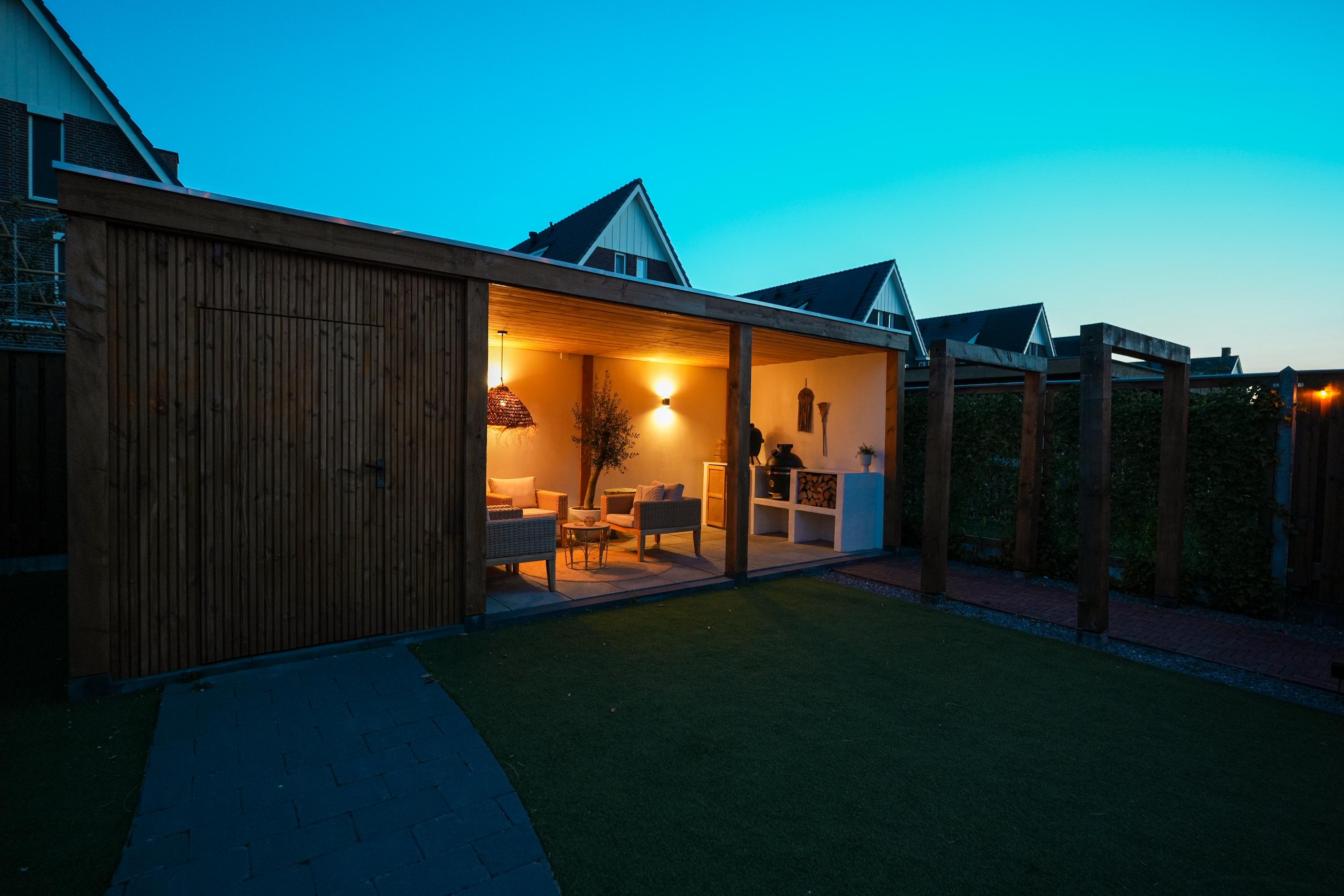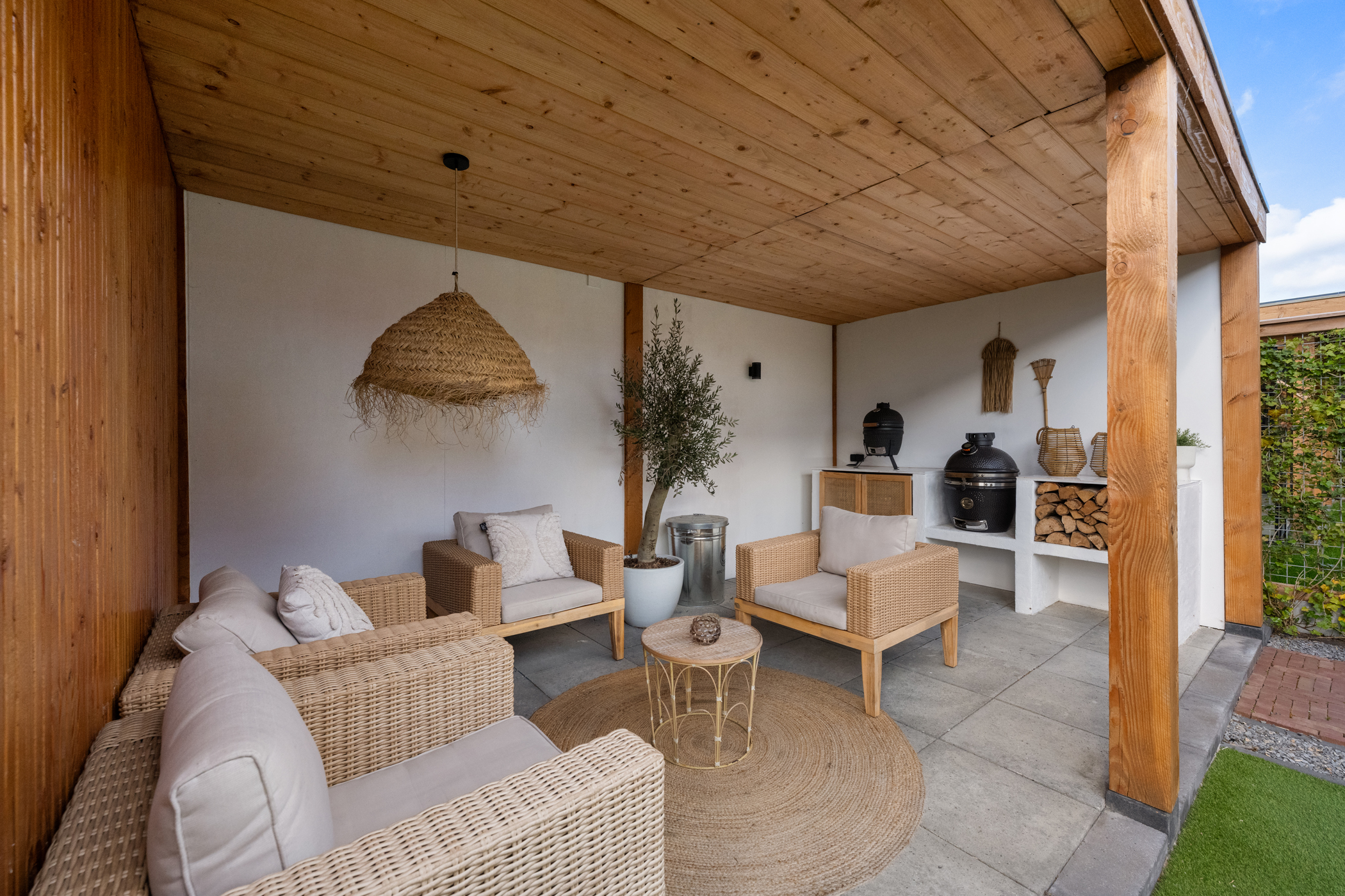 Achterin bevindt zich een sfeervolle overkapping met berging: de ideale plek om tot in de late uurtjes buiten te vertoeven. Hier ervaar je het echte buitenleven, het hele jaar door.