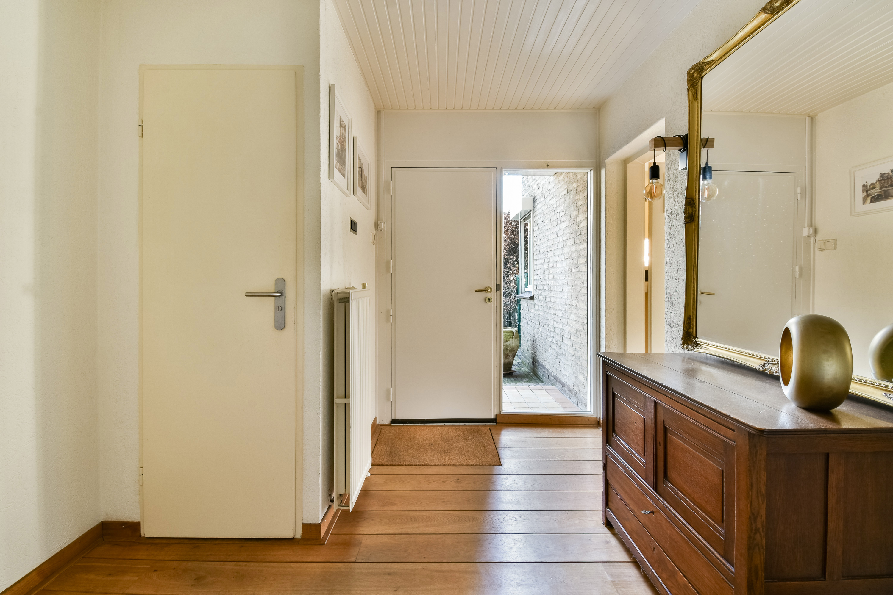 Ruime entree met meterkast, toilet en toegang tot de woonkamer.
