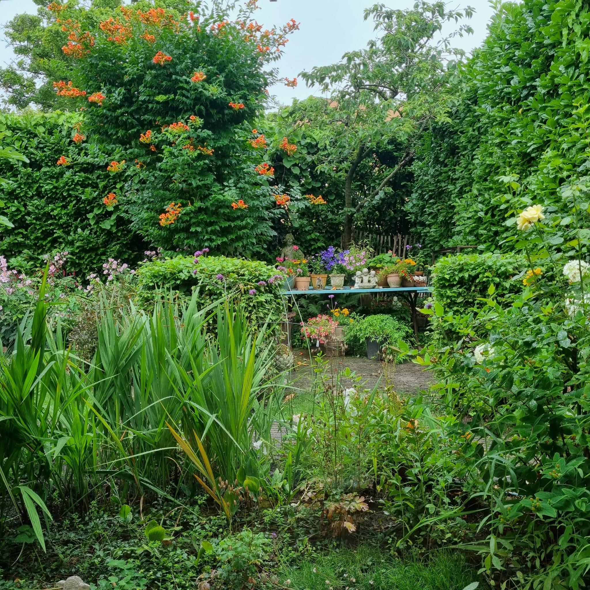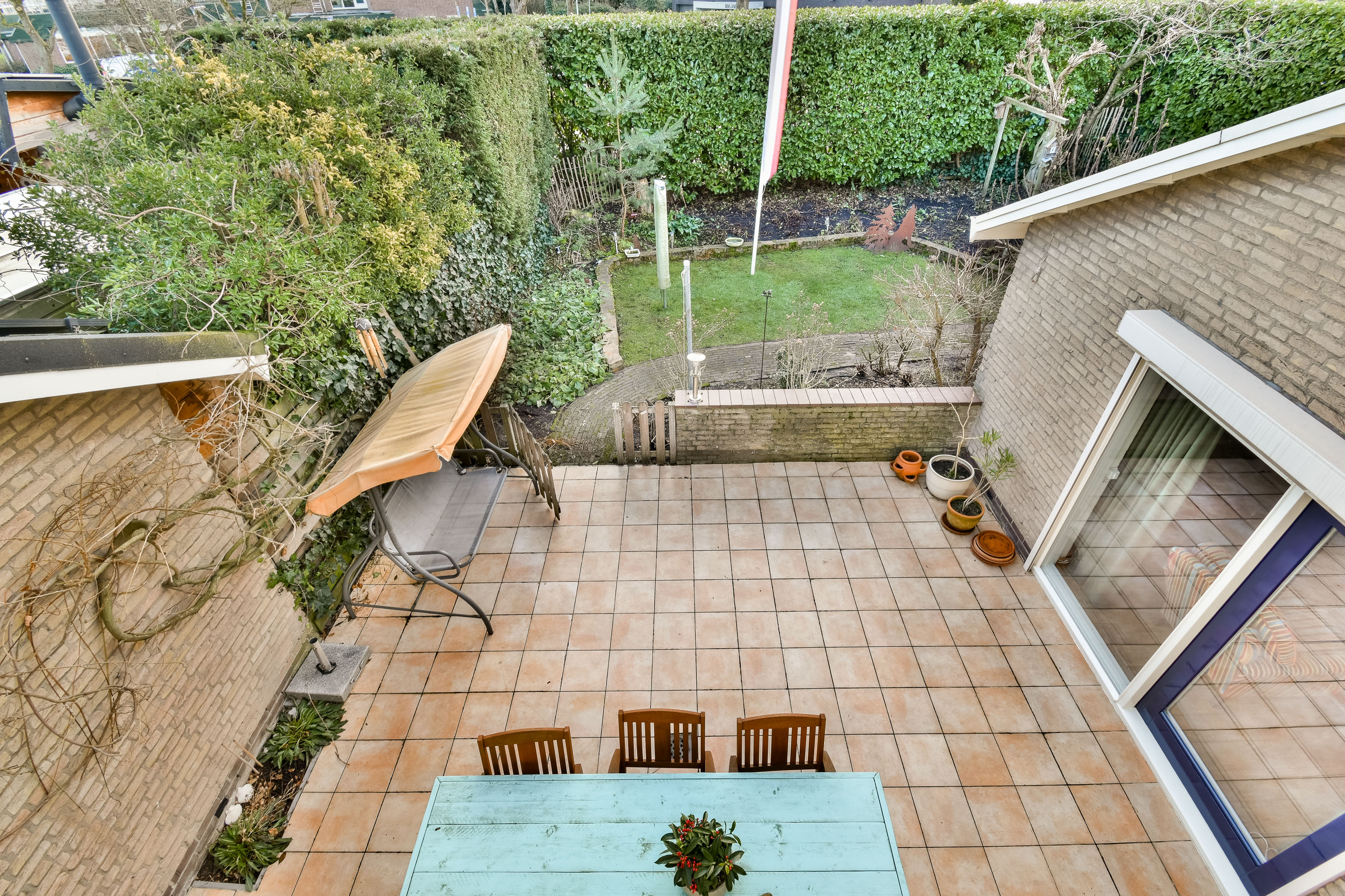 Het huis heeft aan 3 zijden een fraai aangelegde tuin, deels gelegen op het zuidwesten, waardoor je optimaal kunt genieten van de zon. De tuin beschikt over een buitenzwembad, meerdere terrassen en diverse beplanting die zorgen voor een prettige en groene leefomgeving. Het zwembadwater wordt gereinigd middels een zandfilter en verwarmd door middel van een solar mat verwarming.
