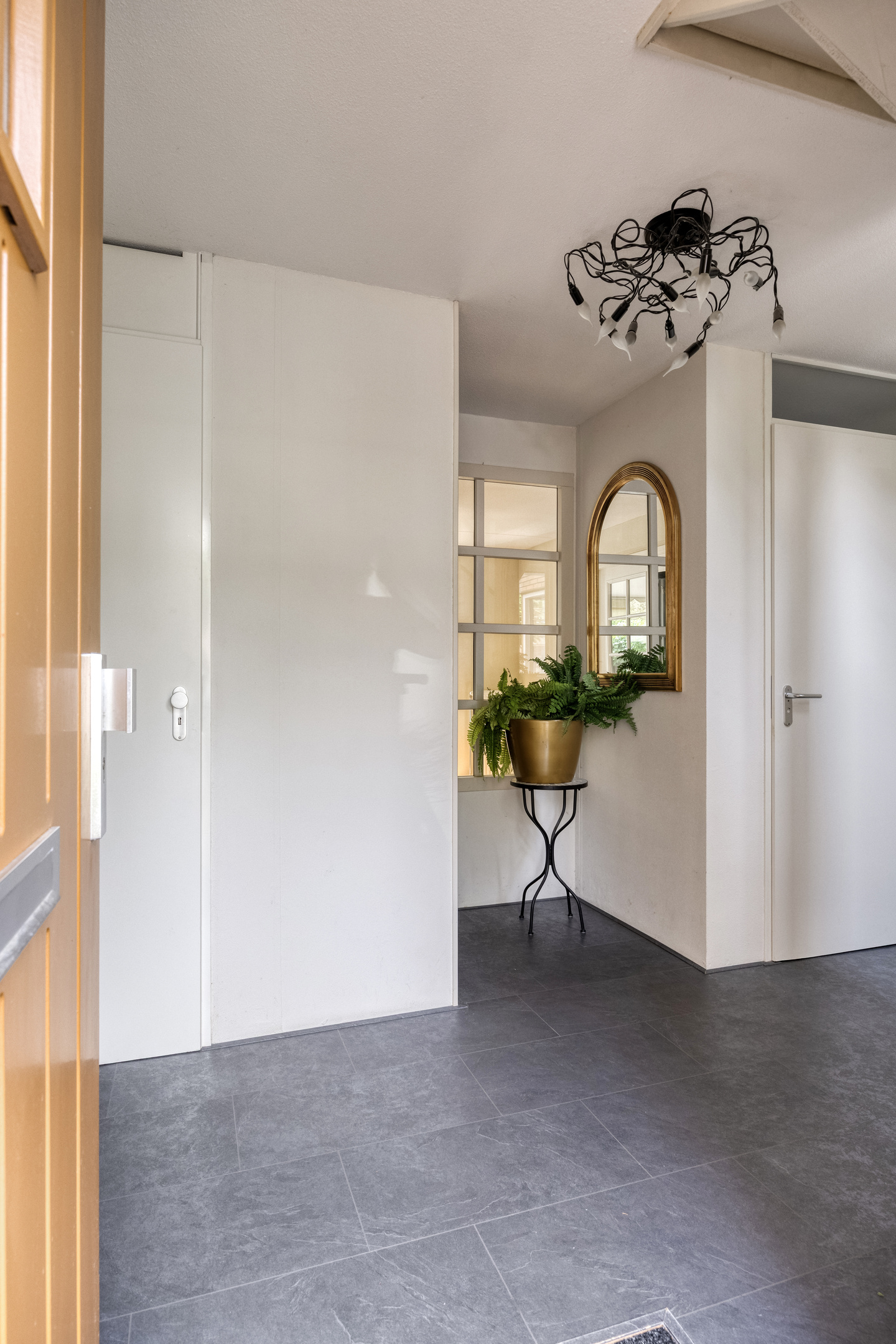 Ruime entree/hal met meterkast, garderobe en een trapkast, toilet,
