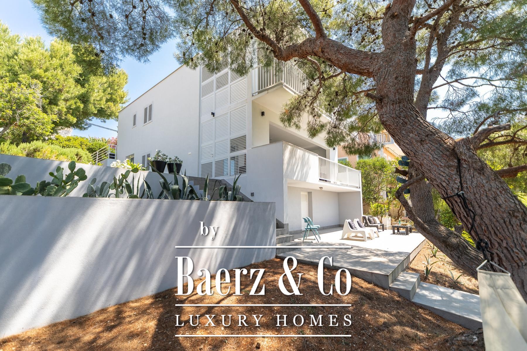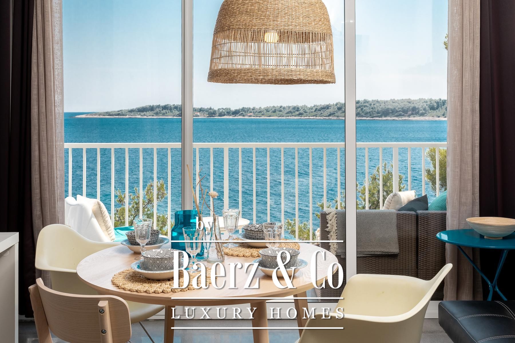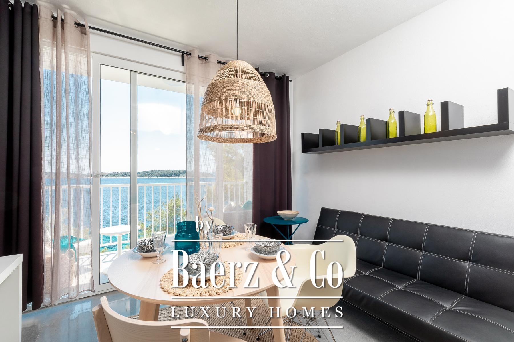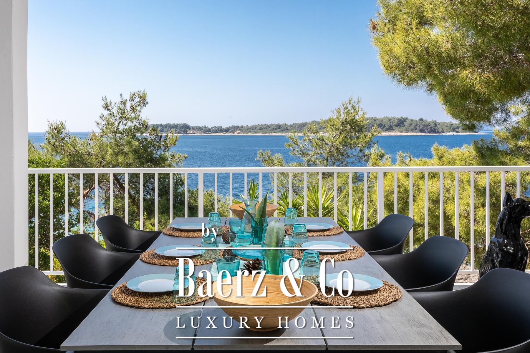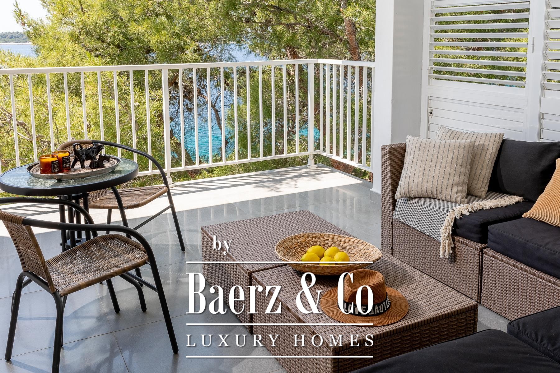 room with a kitchen, dining room, living room and bathroom. The apartment has panoramic sliding doors leading to a terrace with a sea view. This apartment is connected to the lower floor by an internal staircase that has a door so that the lock can be isolated. The second apartment is a studio apartment that has a kitchen connected to the living room and a bathroom. It also has panoramic sliding doors leading to a loggia with a panoramic sea view.Around the villa there is a landscaped yard and gardens and parking for several cars, and in the basement there is an additional storage room in front of which there is a landscaped terrace.The sea, where there is a natural pebble beach on the rocky coast, can be reached by a landscaped path and the entire area around the house is in the natural shade of pine trees.The villa is fully furnished, has a carefully designed interior dominated by light colors and turquoise tones, terraces with a fantastic view that also provide privacy, the beach is just a few steps away and much more that makes this property an unusual opportunity on the island of Korčula.We remain at your disposal for any additional information.