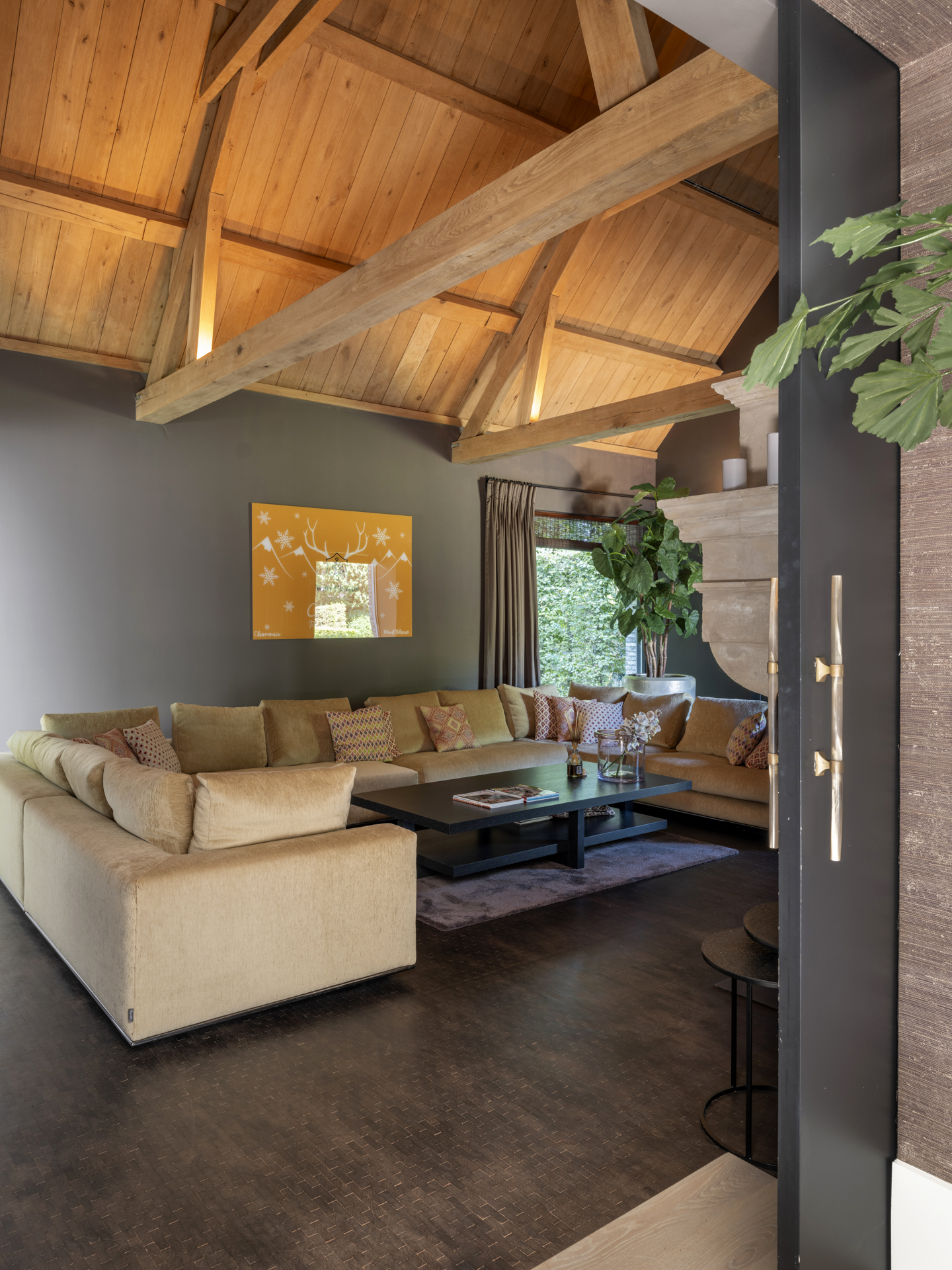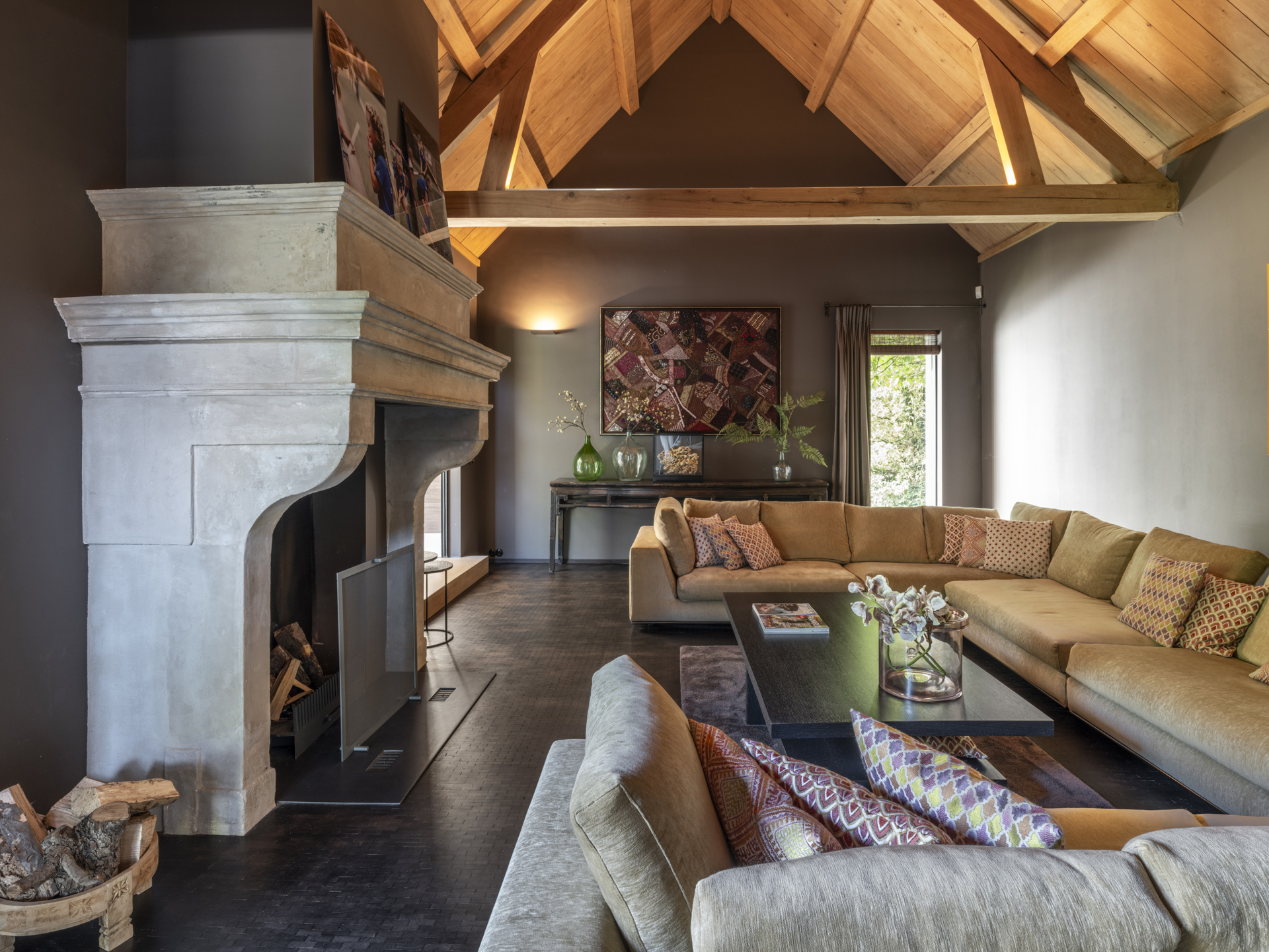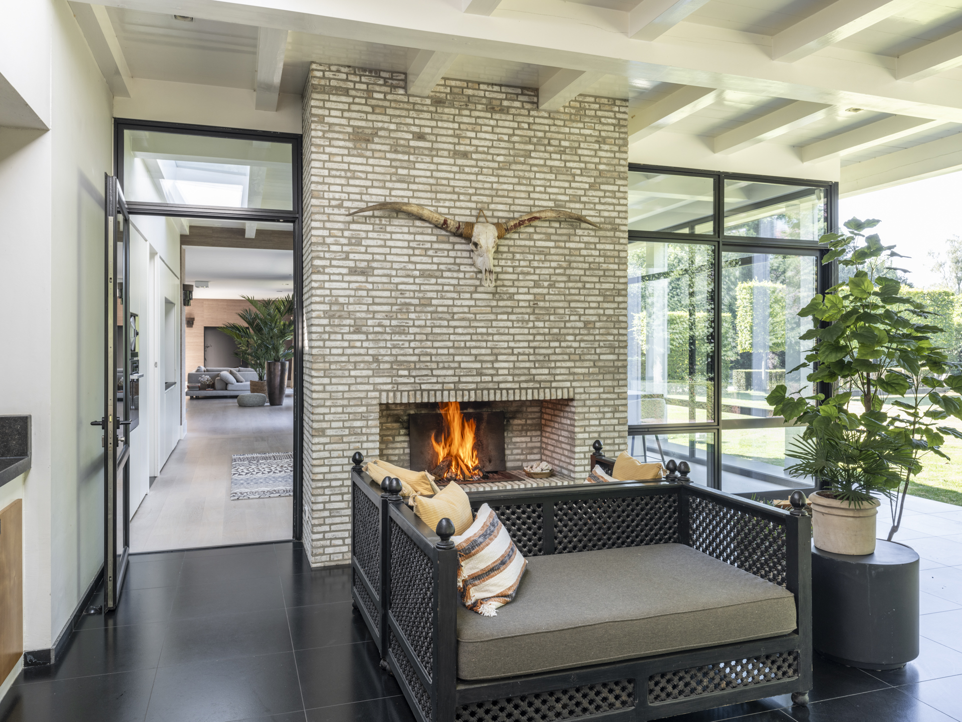 De linkervleugel is een plek om te werken en ontspannen, met een sfeervolle werkkamer aan de achterzijde van het huis. De hiervoor gelegen behaaglijk aandoende haardkamer verbindt de woonkamer en de werkkamer met elkaar.