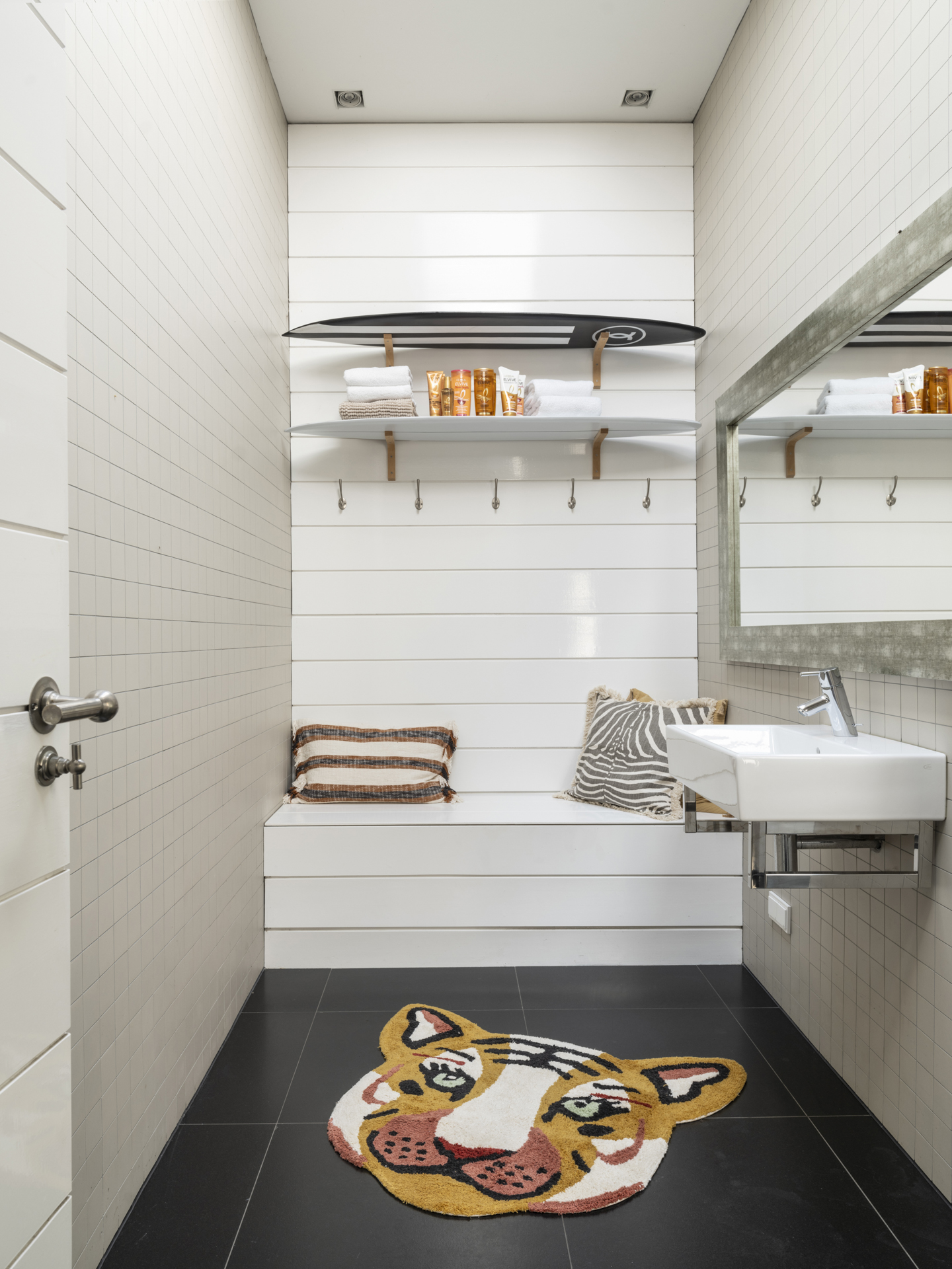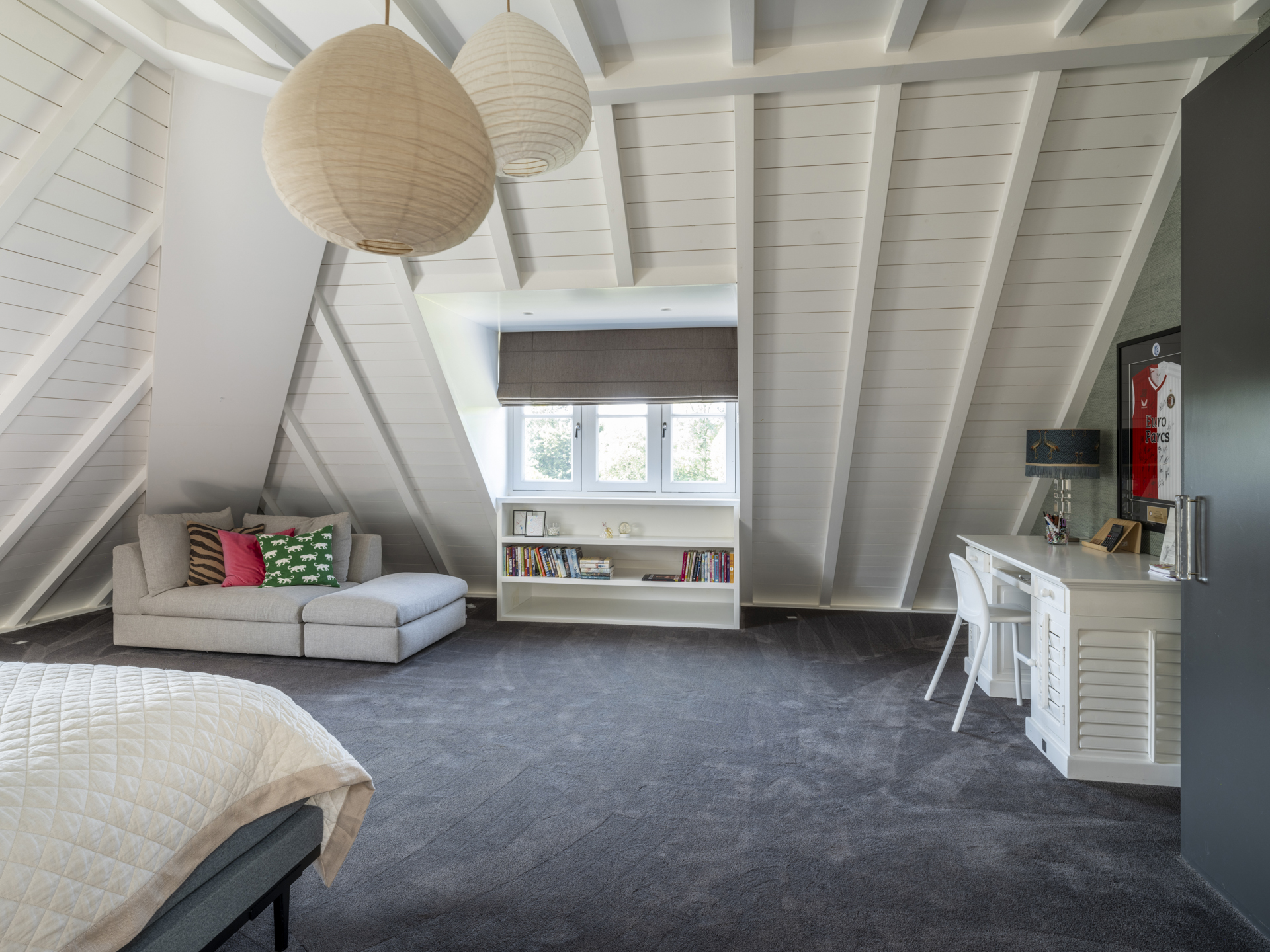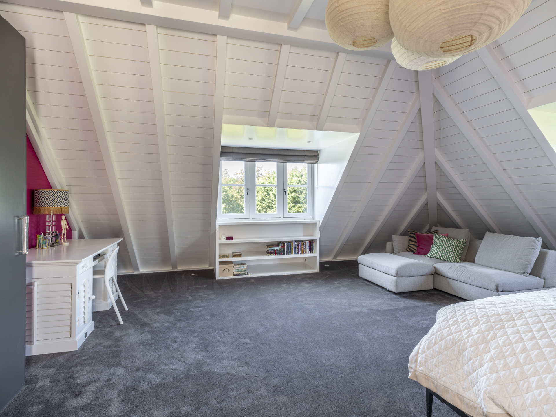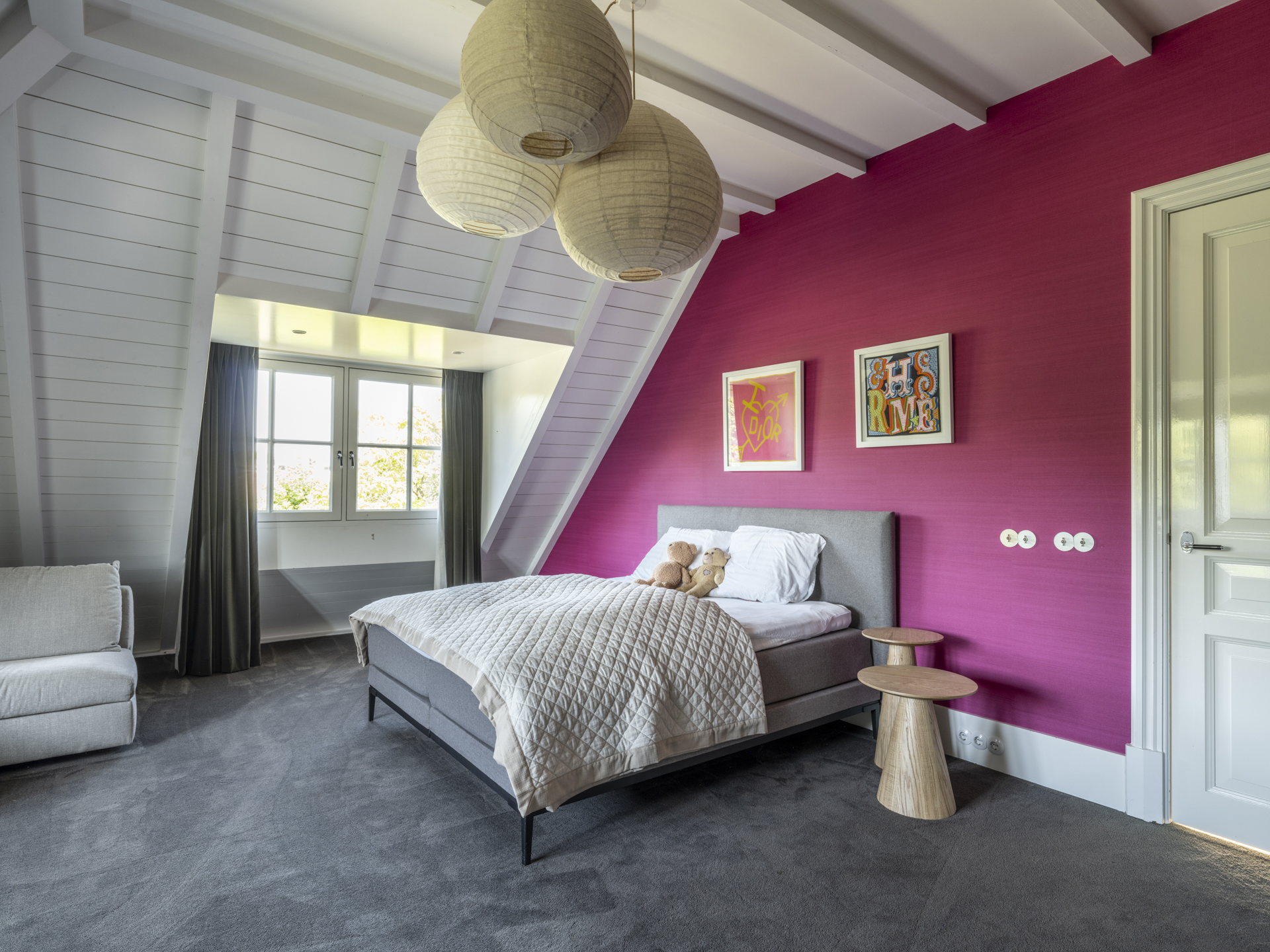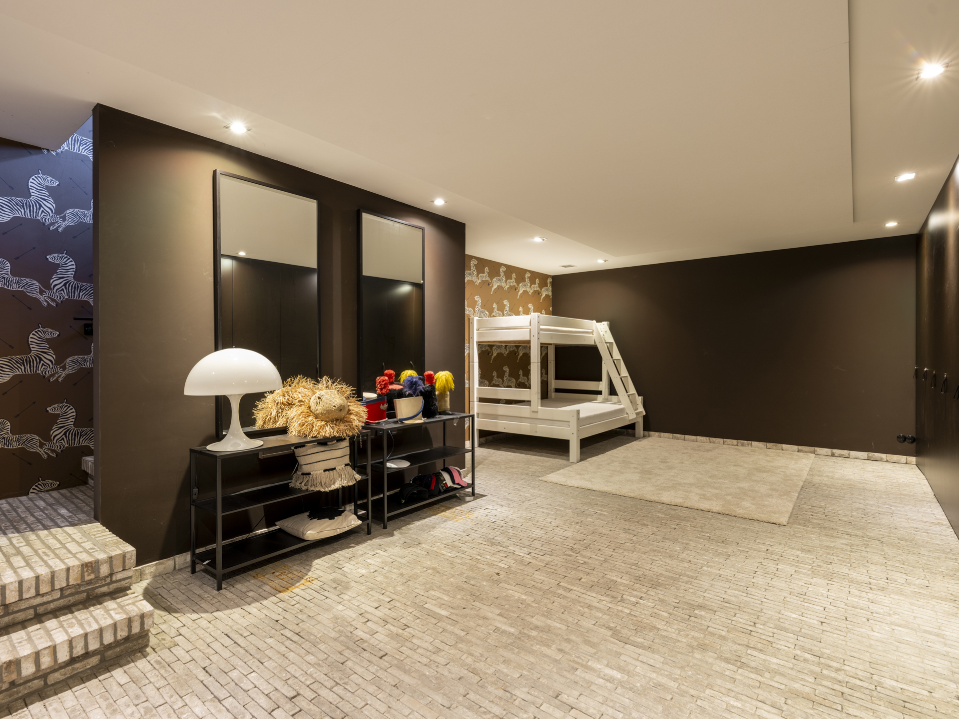 De andere zijde van de verdieping is voor de kinderen; de twee slaapkamers hebben beschikking over hun eigen, eveneens met prachtige materialen afgewerkte badkamer. De slaapkamers zijn aan de voor- en achterzijde gesitueerd.