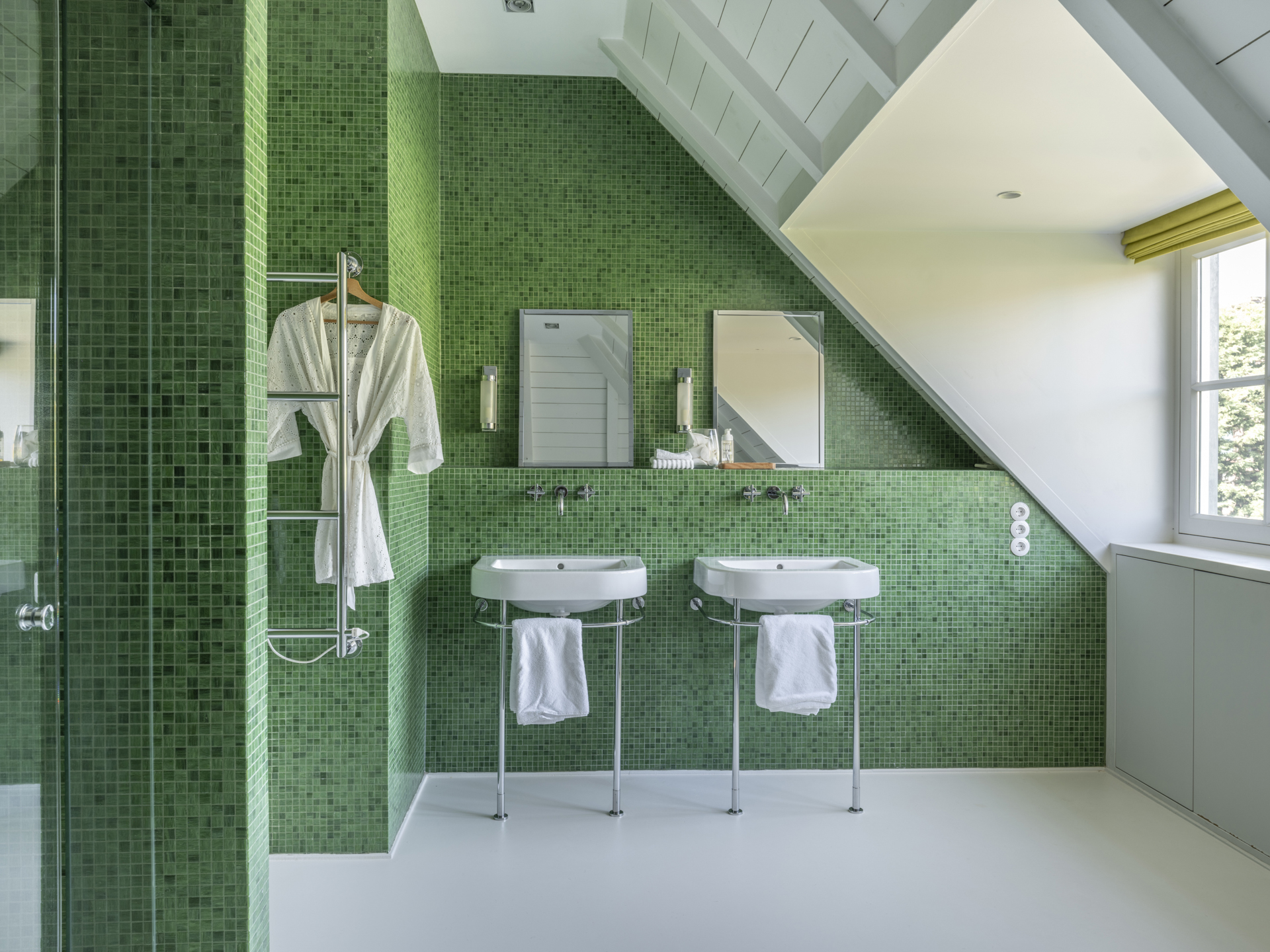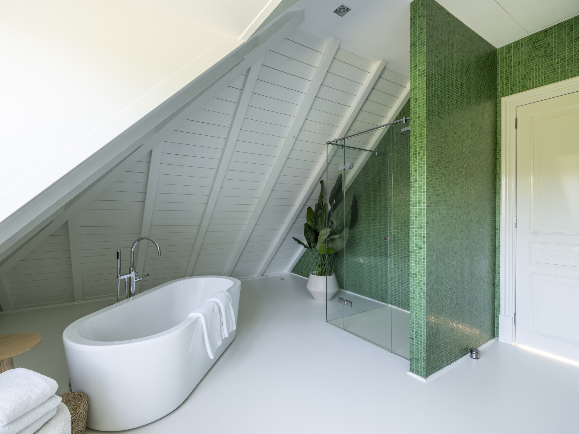 Deze gezellige ‘zolderverdieping’ telt twee riante slaapkamers, aan de achterzijde gesitueerd, én een aparte, stijlvolle badkamer. Daarnaast is er nog een logeerkamer met eigen badkamer aanwezig op deze verdieping.