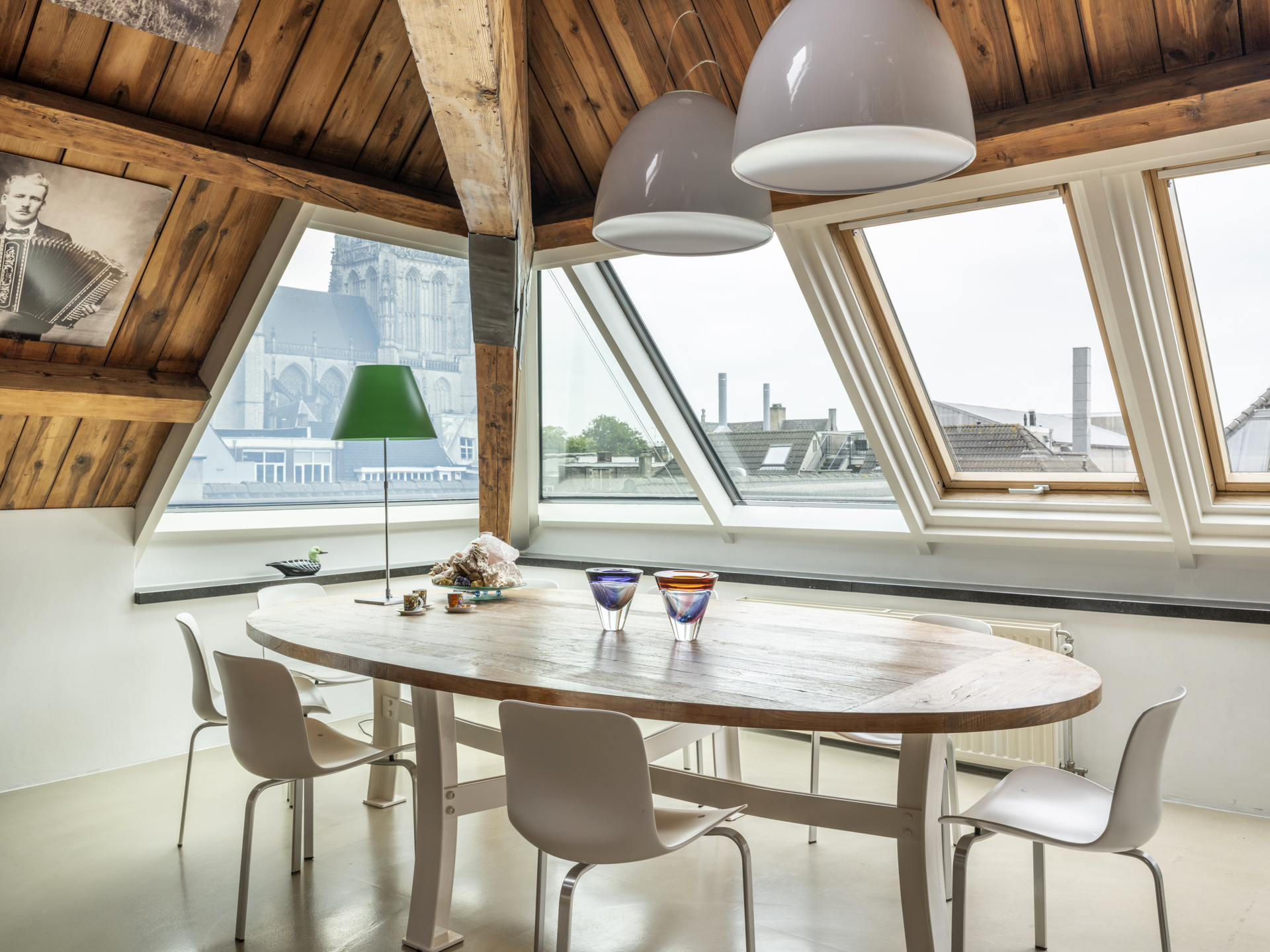 • Het appartement beschikt over een unieke en monumentale kapconstructie met maximale hoogte van ca. 6 meter;