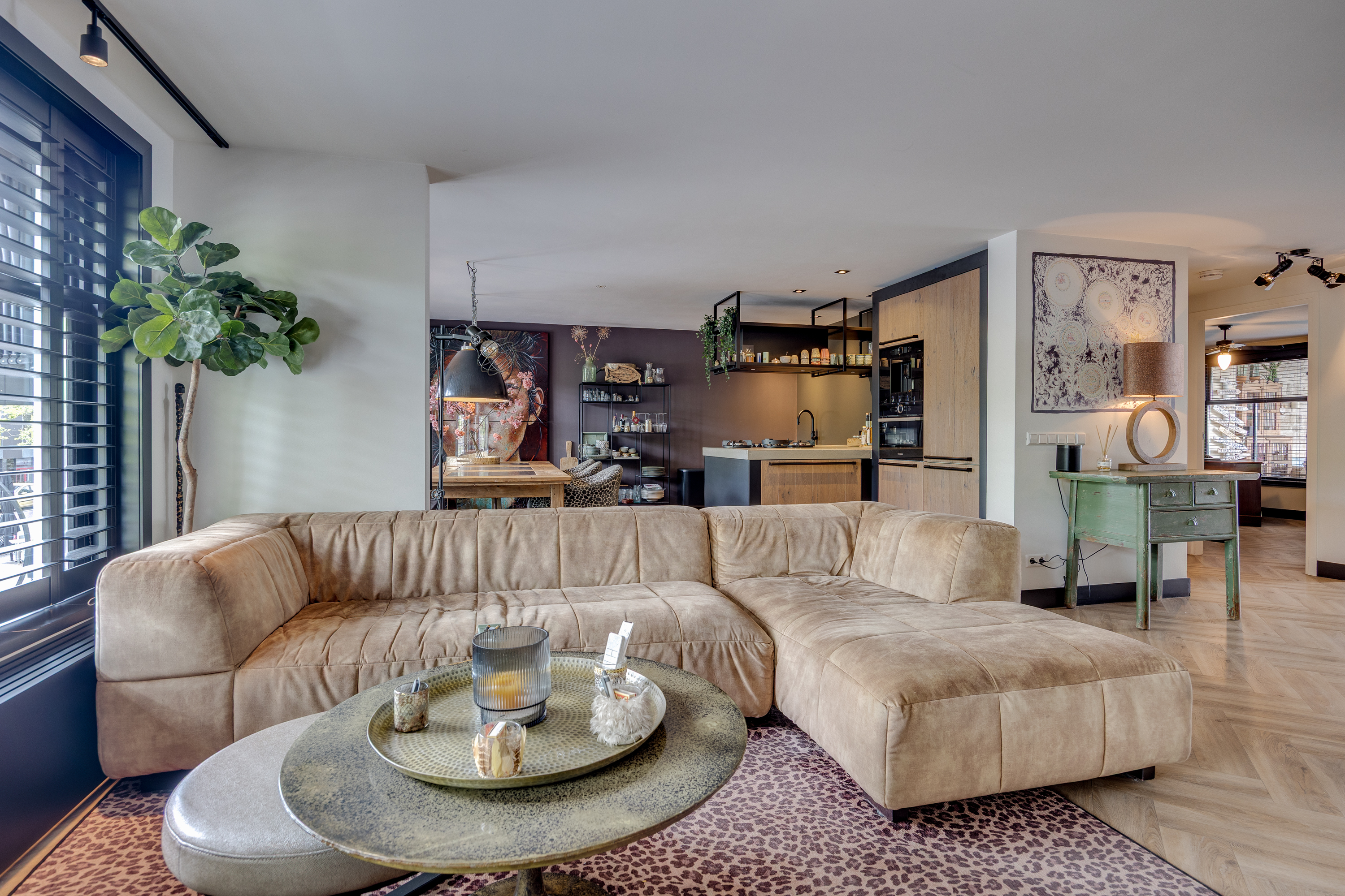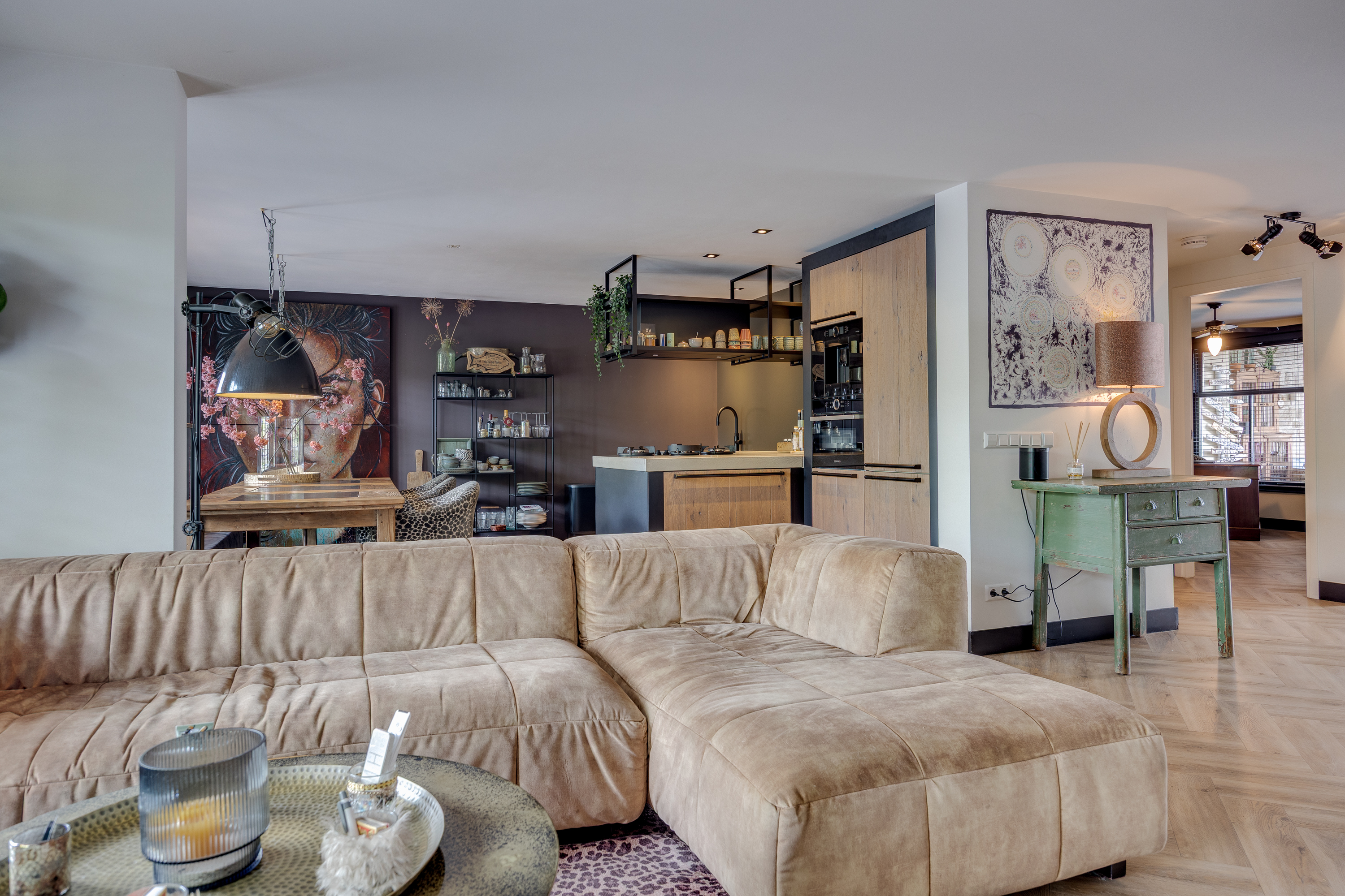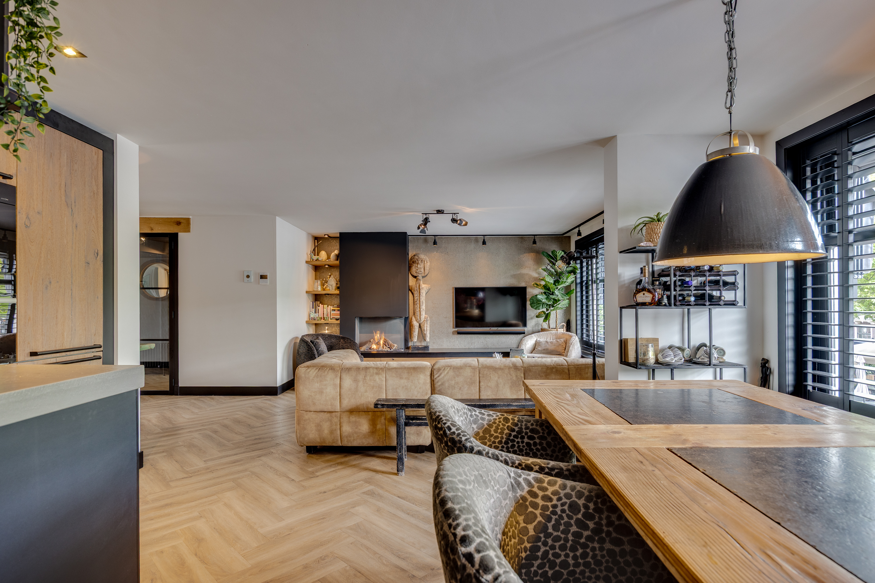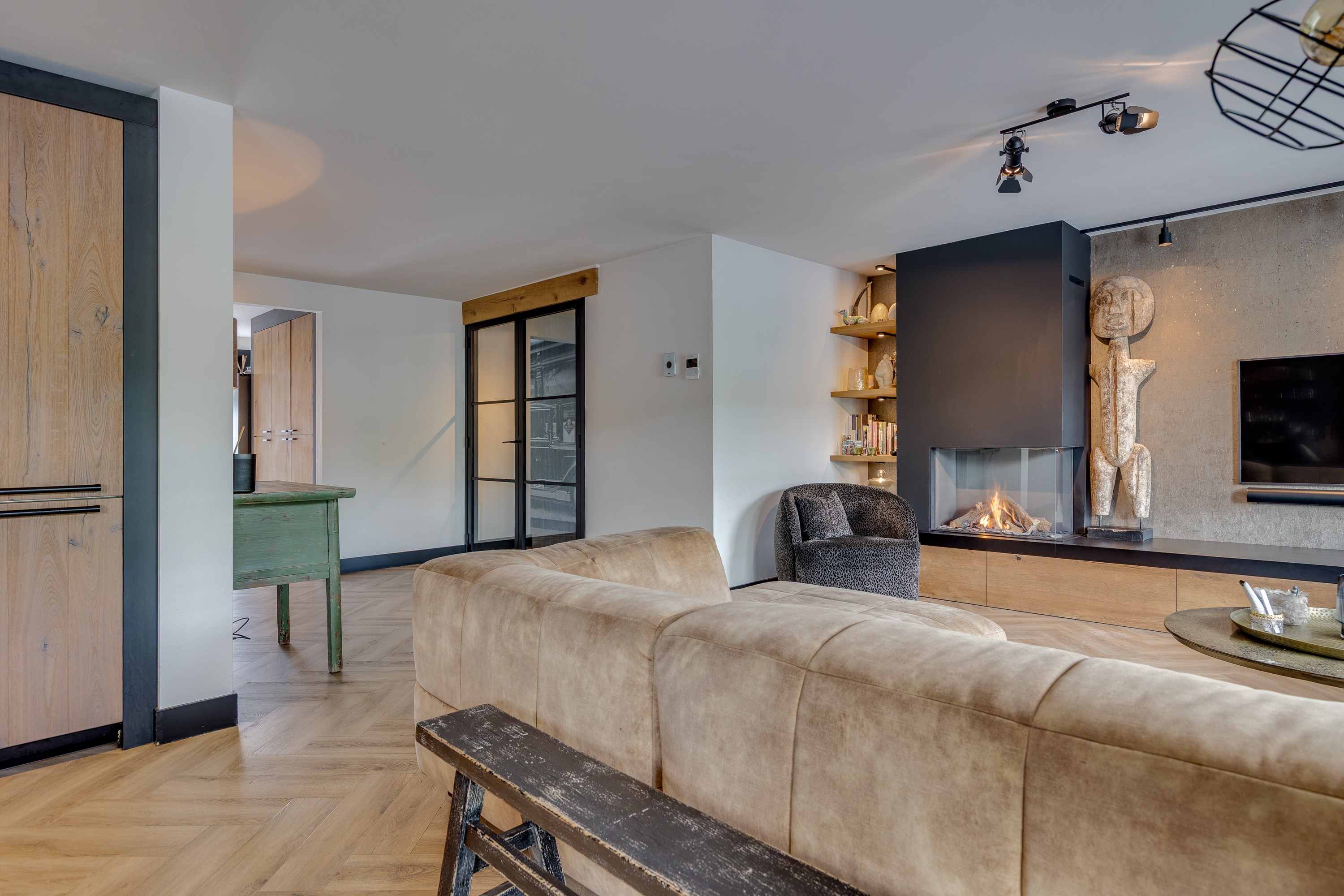 De open woonkeuken (KBK Kerker, 2020) is een droom voor iedere kookliefhebber: uitgevoerd met hoogwaardige inbouwapparatuur, waaronder Pitt Cooking, een combi-oven, combi-magnetron, ingebouwde koffiemachine, Quooker Combi Flex (7 liter), dubbele koelkast en een luxe zelfreinigende plasma-afzuigkap van Wave. Aan de ruime eettafel geniet je hier van lange diners in stijl.