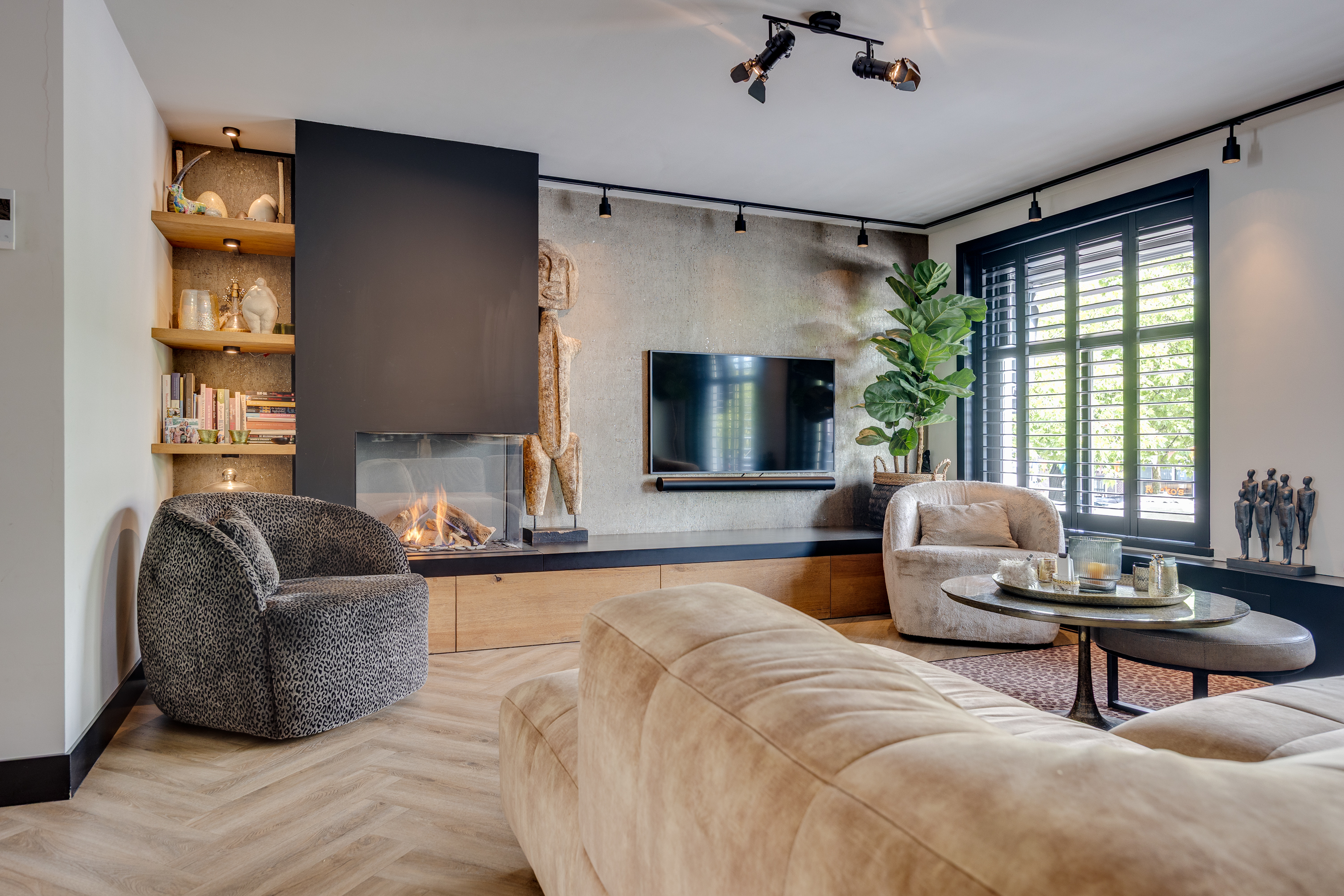 De ruimtelijke woonkamer aan de voorzijde is een ware blikvanger, met grote raampartijen die zorgen voor een overvloed aan natuurlijk licht en een prachtig uitzicht bieden op de levendige Kerkbrink. Wat direct opvalt, is de stijlvolle PVC-vloer die is doorgelegd over de gehele woonverdieping. Deze vloer combineert een warme, rustgevende uitstraling met praktische eigenschappen als duurzaamheid en onderhoudsgemak. Hij vormt de perfecte basis voor elk interieur. De moderne gashaard creëert een gezellige ambiance, ideaal voor sfeervolle avonden. Daarnaast zorgt de aanwezige airconditioning ervoor dat het binnenklimaat het hele jaar door aangenaam blijft. Alles aan deze woonlaag ademt comfort, stijl en luxe.
