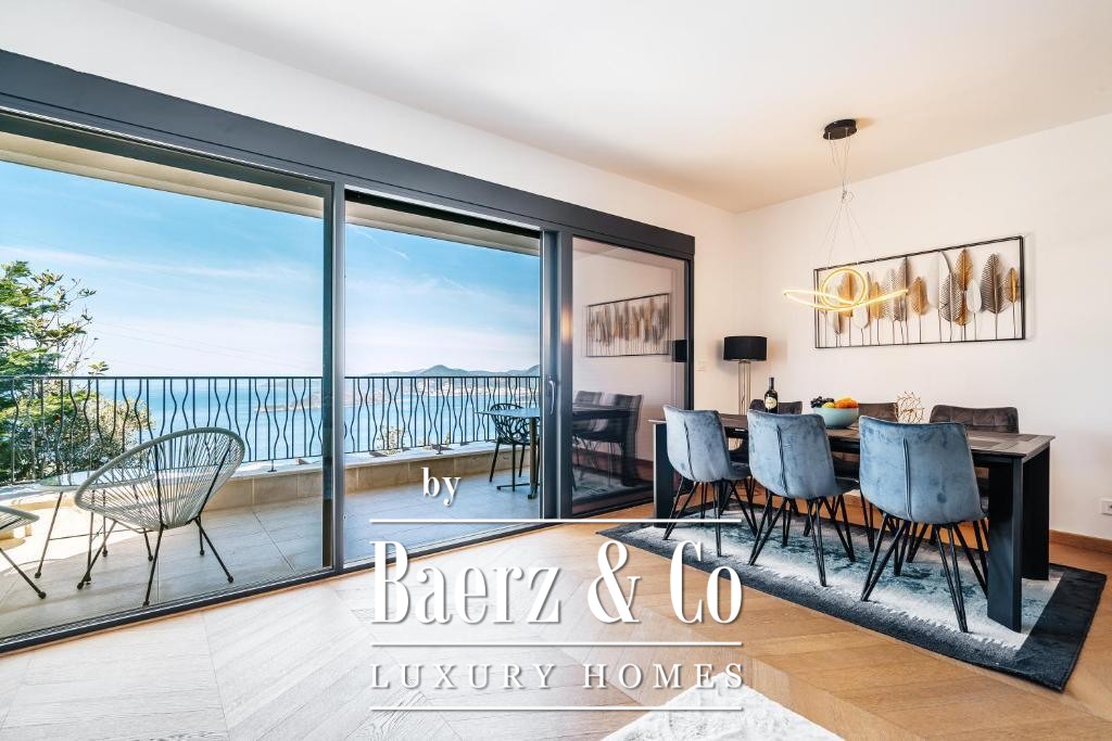 De doordachte indeling omvat een hal, woonkamer met open keuken en eetgedeelte, drie slaapkamers, twee badkamers en een terras gericht op panoramisch zee- en bergzicht. Elke ruimte is volledig gemeubileerd en direct instapklaar. Bewoners van het complex hebben toegang tot een gedeeld zwembad en een eigen restaurant, wat het gevoel van gemeenschap en comfort versterkt.