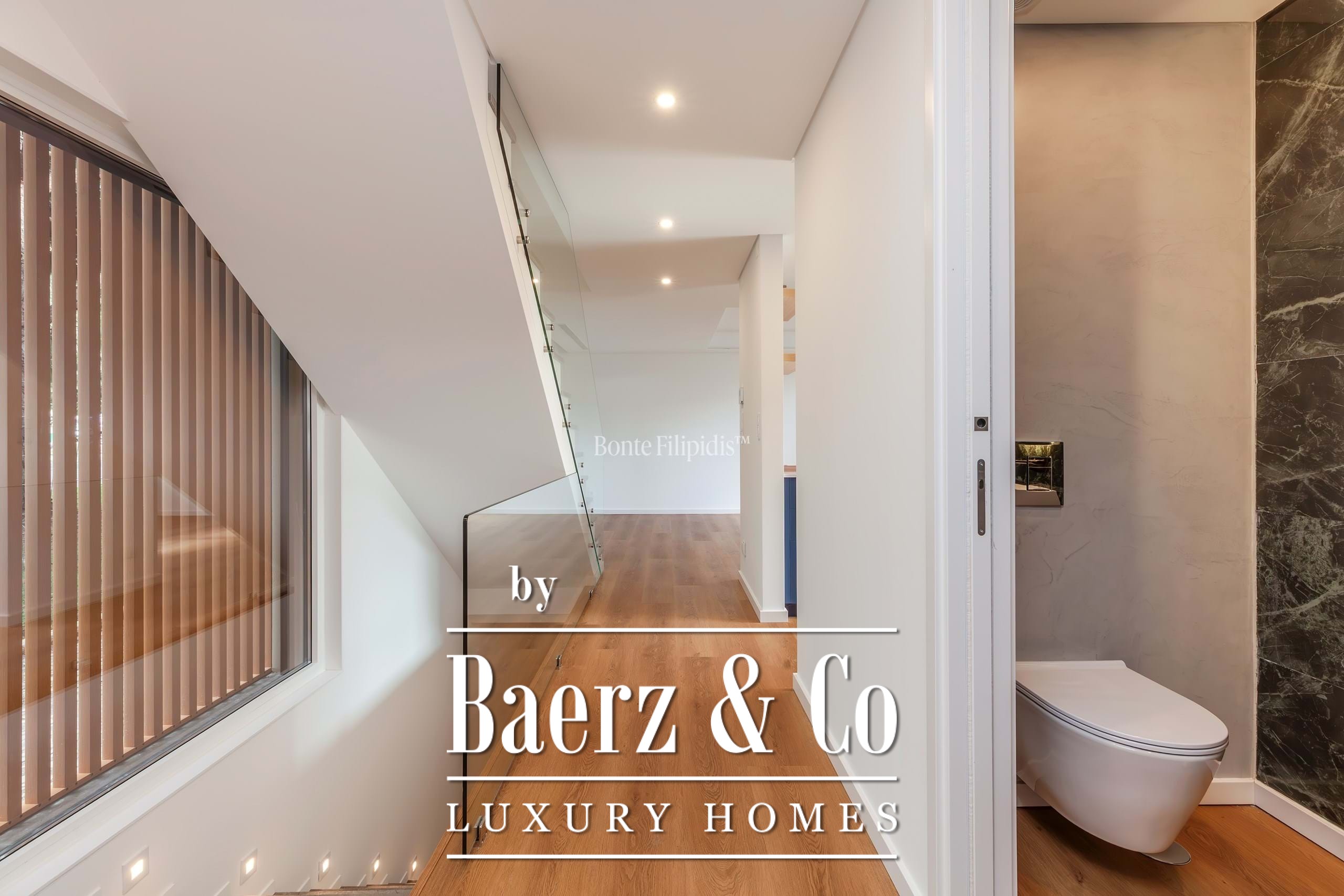 Deze townhouse in Carcavelos e Parede is geïnspireerd op hedendaagse architectuur en biedt een ingetogen luxueuze woonomgeving, verdeeld over 217 m² en drie doordachte verdiepingen. De open keuken, uitgerust met hoogwaardige apparatuur, sluit naadloos aan op de woonkamer en trekt volop daglicht naar binnen, waardoor het interieur in verbinding staat met buitenruimtes en het aangelegde terras. Een extra suite op de begane grond biedt flexibiliteit en privacy, geschikt voor gasten of als multifunctionele leefruimte.