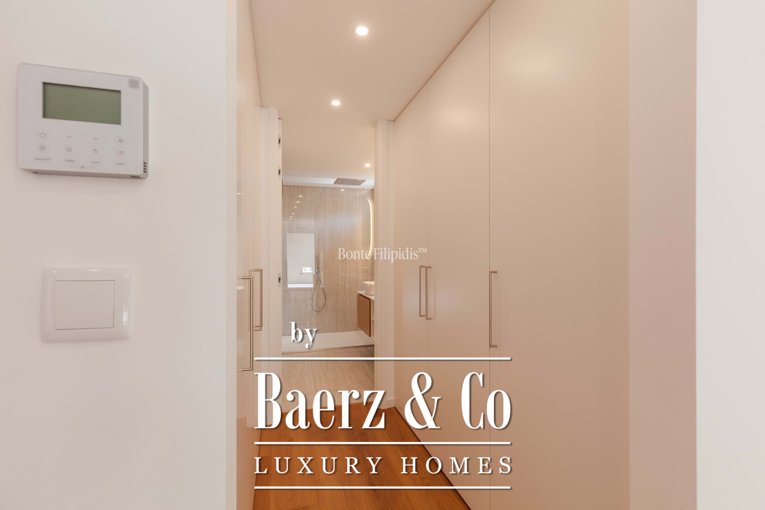 Op de eerste verdieping beschikt de hoofdsuite over een inloopkast; twee extra slaapkamers en een gedeelde badkamer ondersteunen het gezinsleven. De multifunctionele ruimte op de bovenverdieping, met eigen complete badkamer en toegang tot een ruim terras, vormt de ideale plek voor zonsondergangen, ontspanning en reflectie onder de kusthemel. Elke badkamer is voorzien van elektrische vloerverwarming en duurzaamheid is geïntegreerd met zonnepanelen en een voorbereide voorziening voor het opladen van elektrische voertuigen.